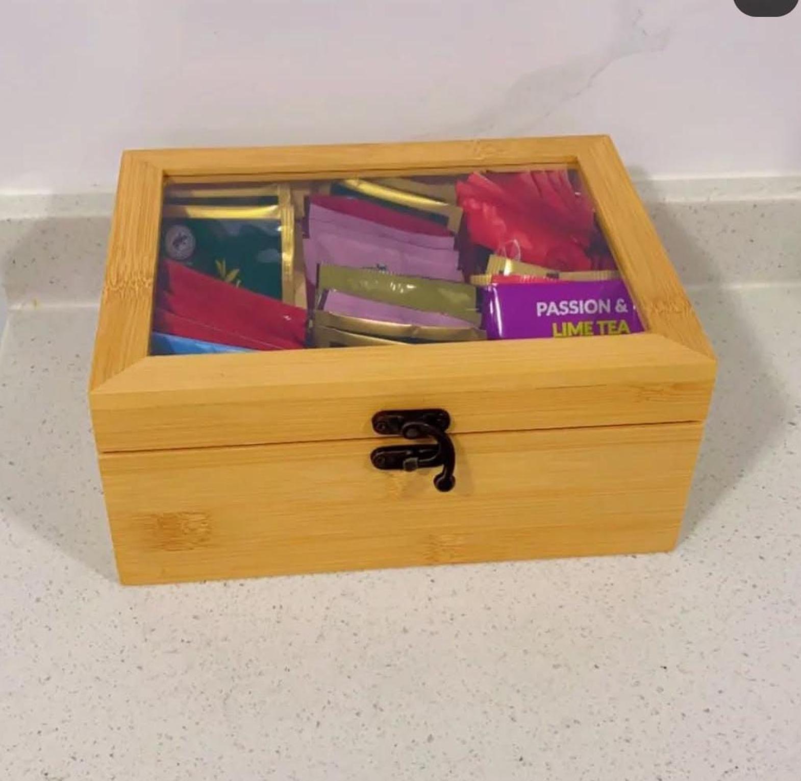 Bring order to your tea collection with our Eco-Friendly Bamboo Tea Bag Organizer, designed to store and display your tea bags in an organized, eco-conscious manner. Made from sustainably sourced bamboo, this sleek organizer not only adds a natural touch to your kitchen but also helps reduce plastic waste. With separate compartments for different tea flavors, it allows you to easily find your favorite brew while keeping your space tidy. The sturdy bamboo construction ensures long-lasting use, and its compact design fits perfectly in kitchen drawers or on countertops, combining functionality with an elegant, environmentally friendly aesthetic.