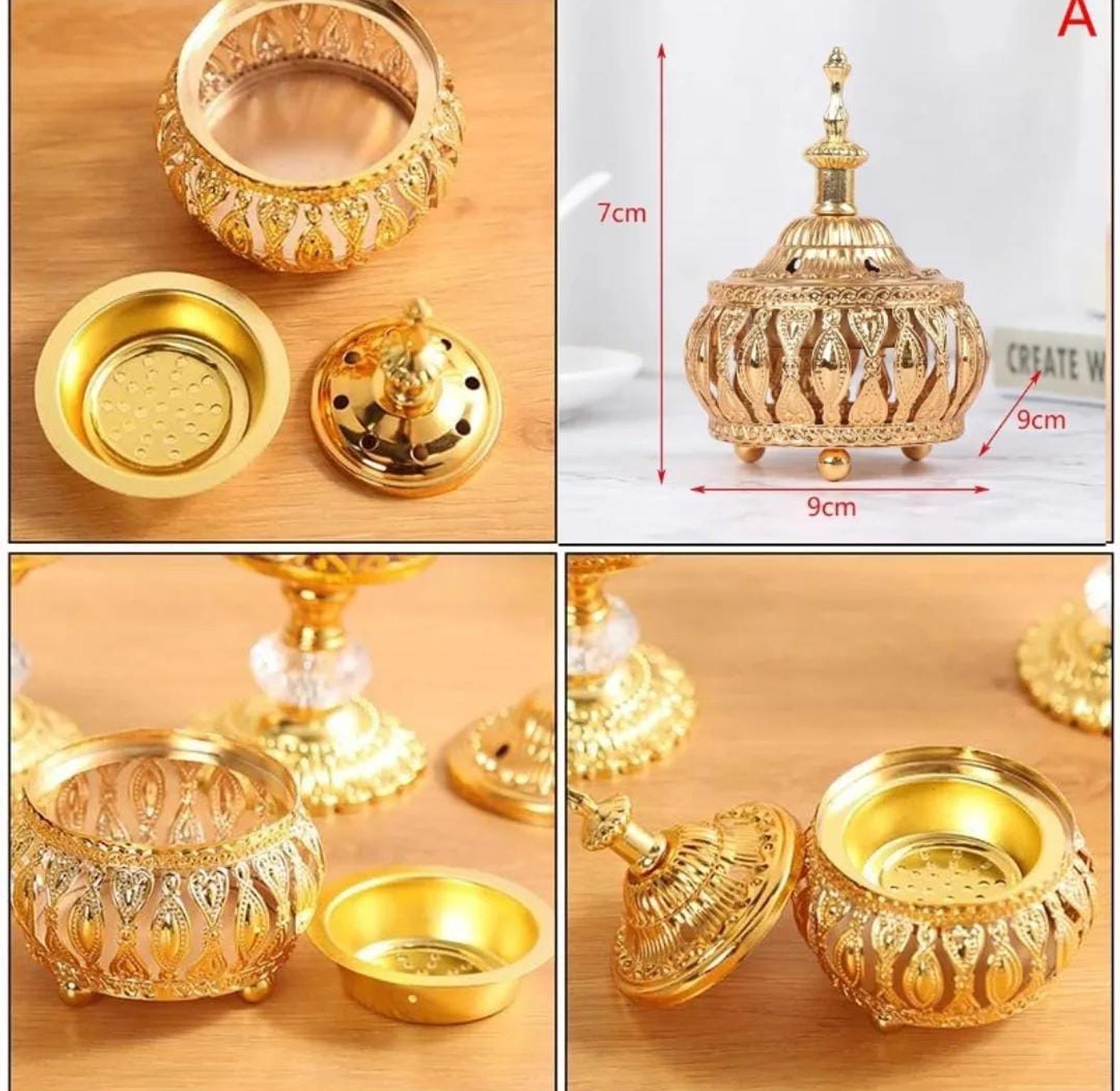 Celebrate the essence of Eid with this beautifully crafted metallic incense tower, designed not only as a functional piece but also as a stunning home ornament. Featuring intricate details and a graceful "Eid Mubarak" inscription, this tower serves as both a symbol of festivity and a serene source of aromatic ambiance. Ideal for burning your favorite bakhoor or incense, it gently diffuses scent throughout your space, creating a warm and welcoming atmosphere for family and guests. Whether placed on a mantle, side table, or as a centerpiece, this decorative tower elevates your Eid decor with its timeless elegance and cultural significance—making it a cherished addition to your festive celebrations.