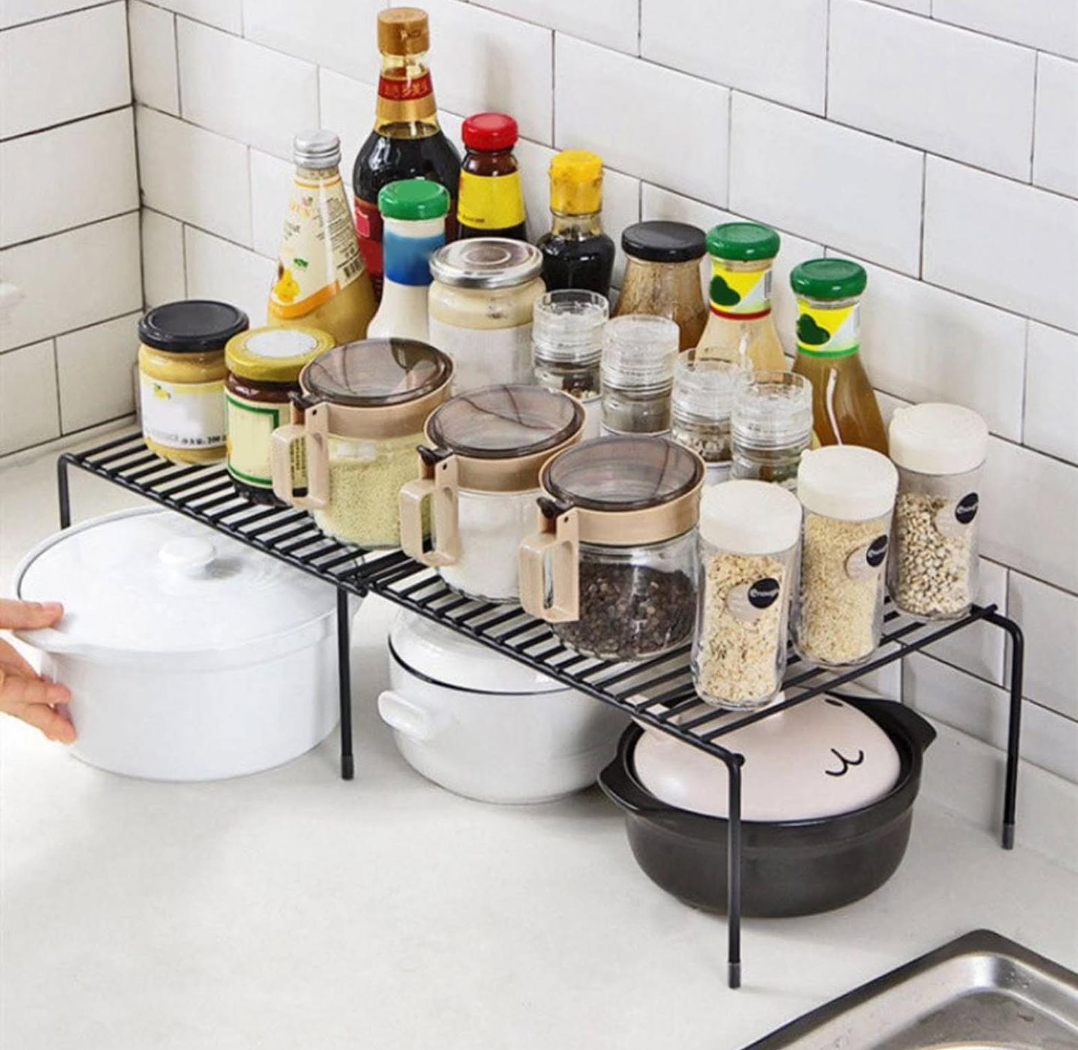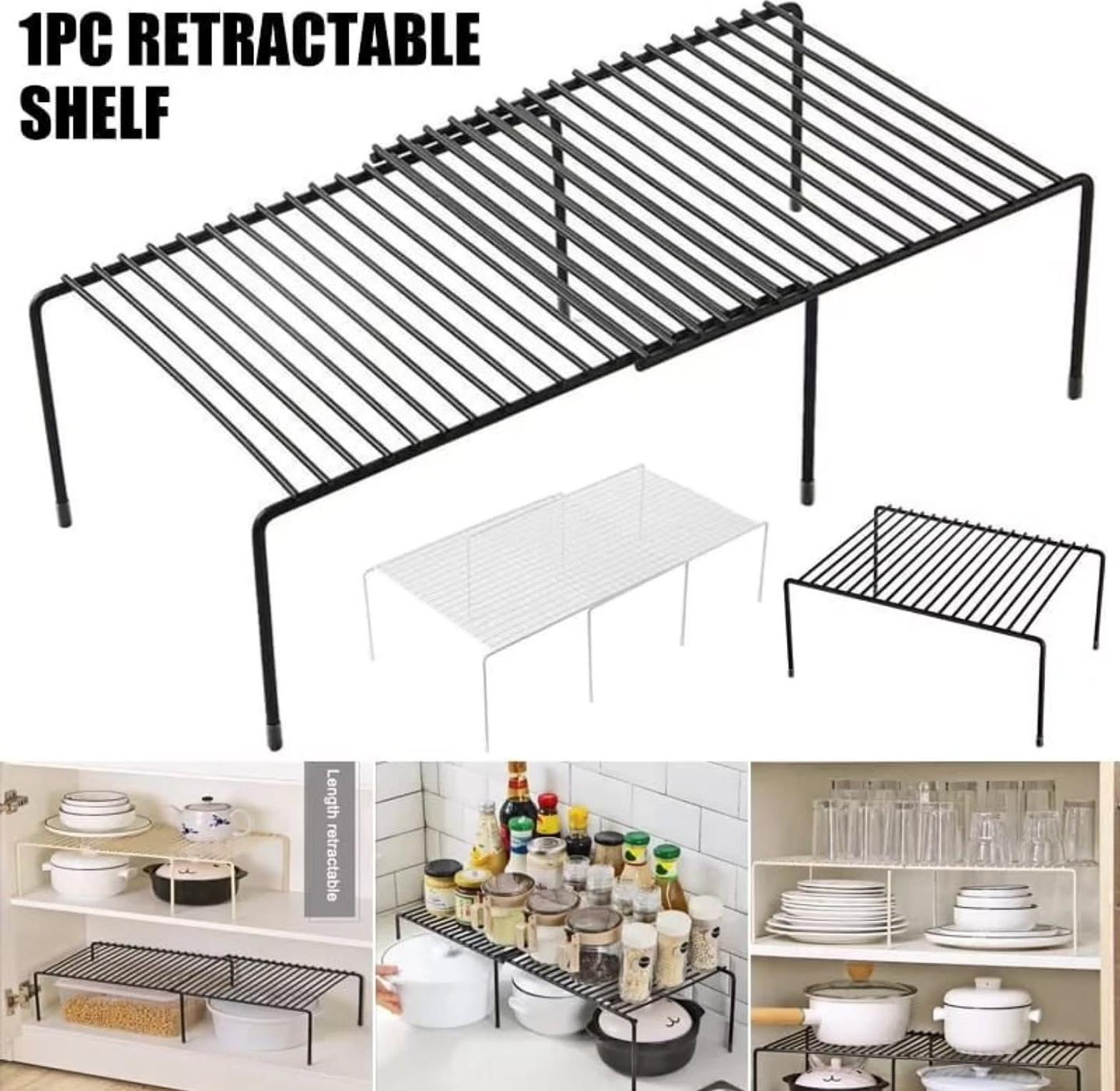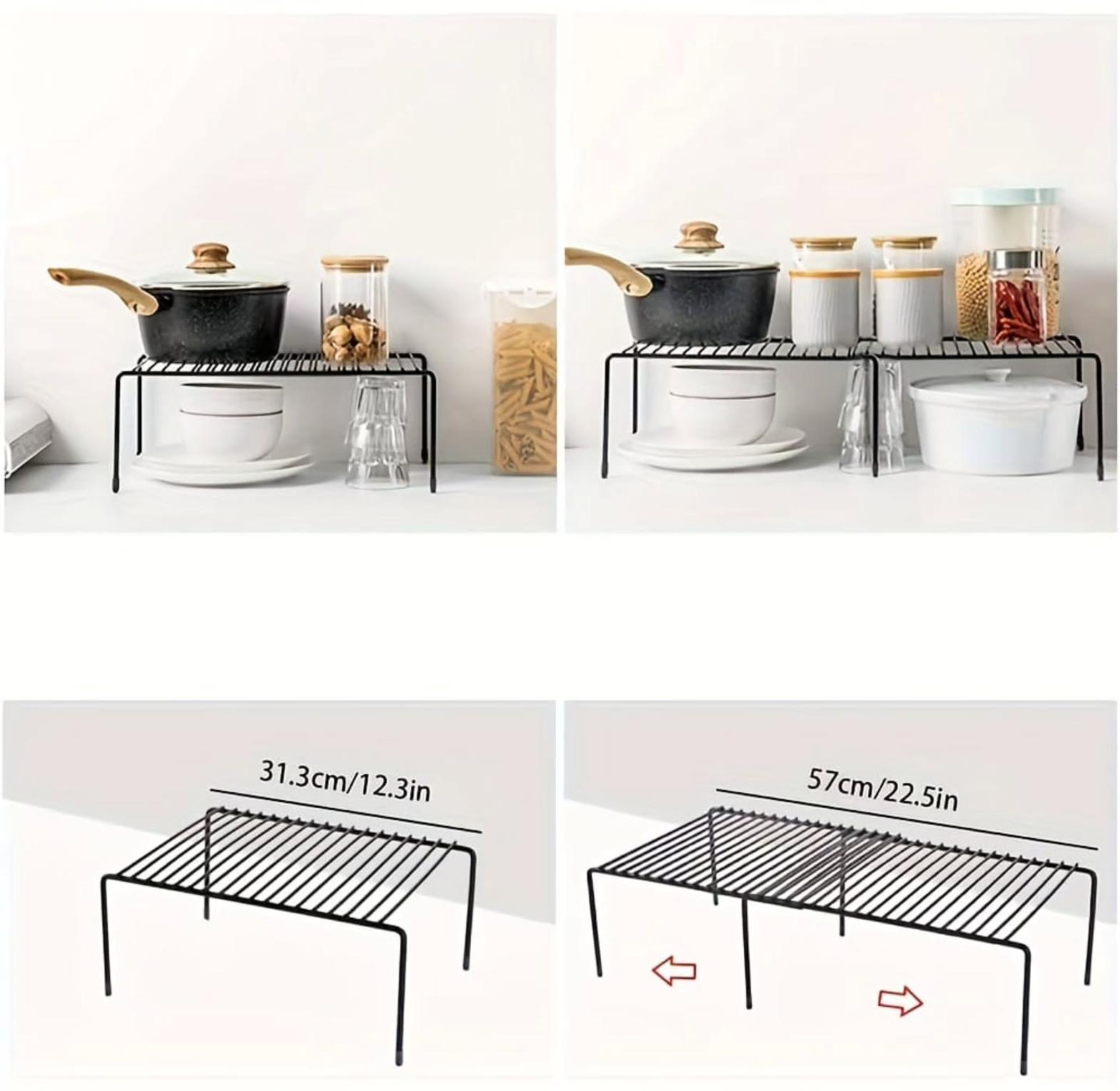Keep your home organized with the expandable carbon steel shelf raiser, a versatile storage solution designed for kitchens, bathrooms, offices, and more. With a size of 32cm that expands up to 57cm, this sturdy organizer adapts to your needs, providing extra space for dishes, pantry items, toiletries, or office supplies. Its 14.5cm height and 24.3cm width make it compact yet practical, while the high-quality carbon steel build ensures durability and long-term use. Available in classic white and black, this multipurpose shelf raiser combines functionality with modern style, helping you create a neat, clutter-free space.