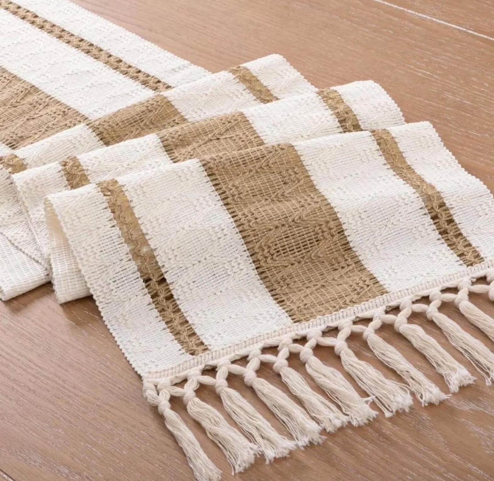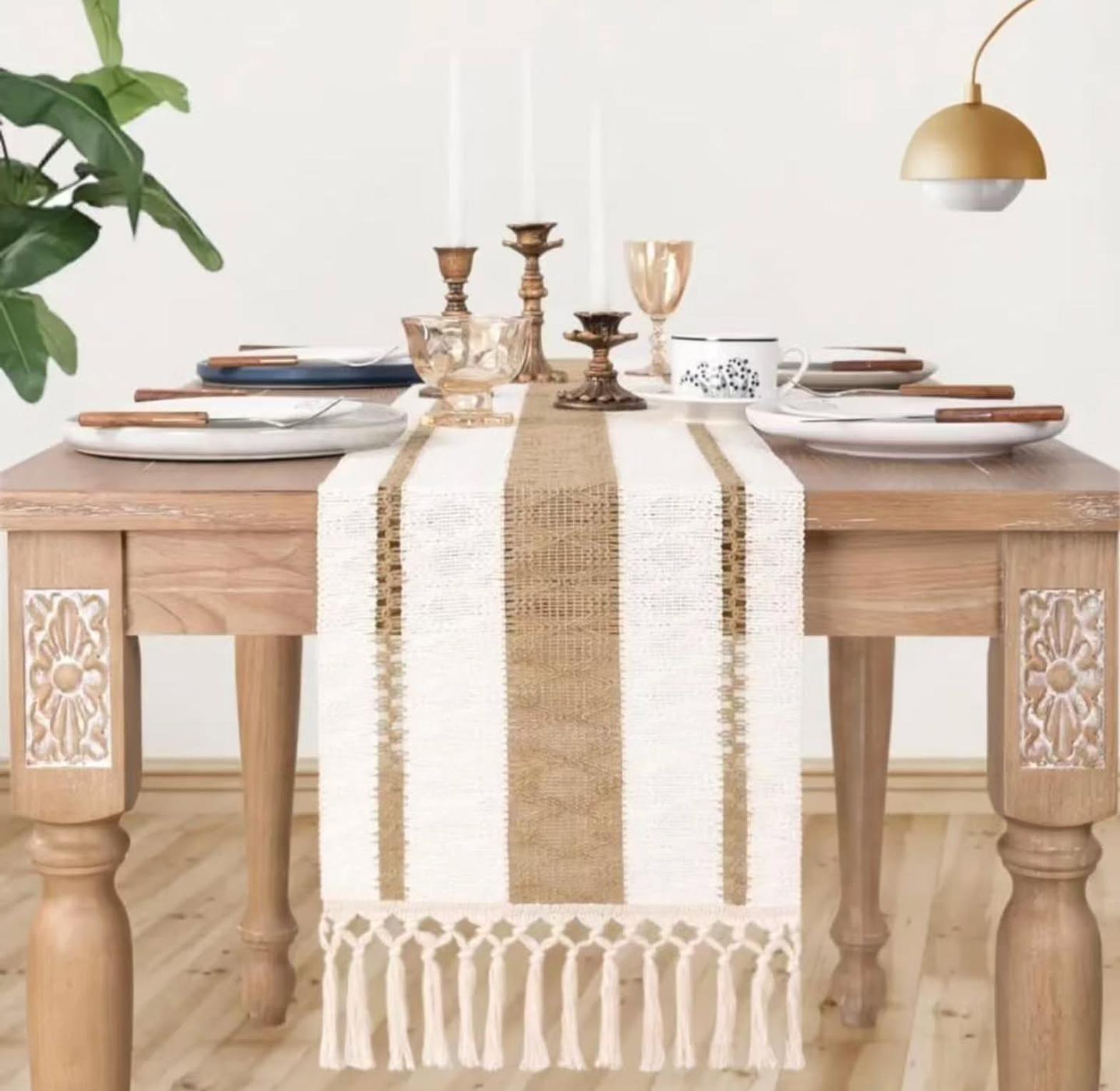 Maximize the visual impact of your dining or bedroom area with this generously sized, premium woven runner. This textile combines a natural texture with a stylish striped pattern, instantly providing a sophisticated and inviting focal point. Measuring an impressive 30 cm×275 cm, the extra-long dimension is specifically ideal for fully dressing 8-seater dining tables, offering substantial coverage and protection for your surfaces. It is equally suitable for use as a luxurious bed sash across the foot of any size bed, adding a touch of tailored elegance to your sleeping space. The high-quality weaving ensures durability and a superior drape, making this versatile runner a quintessential piece for adding a textural and elegant finish to your home décor.