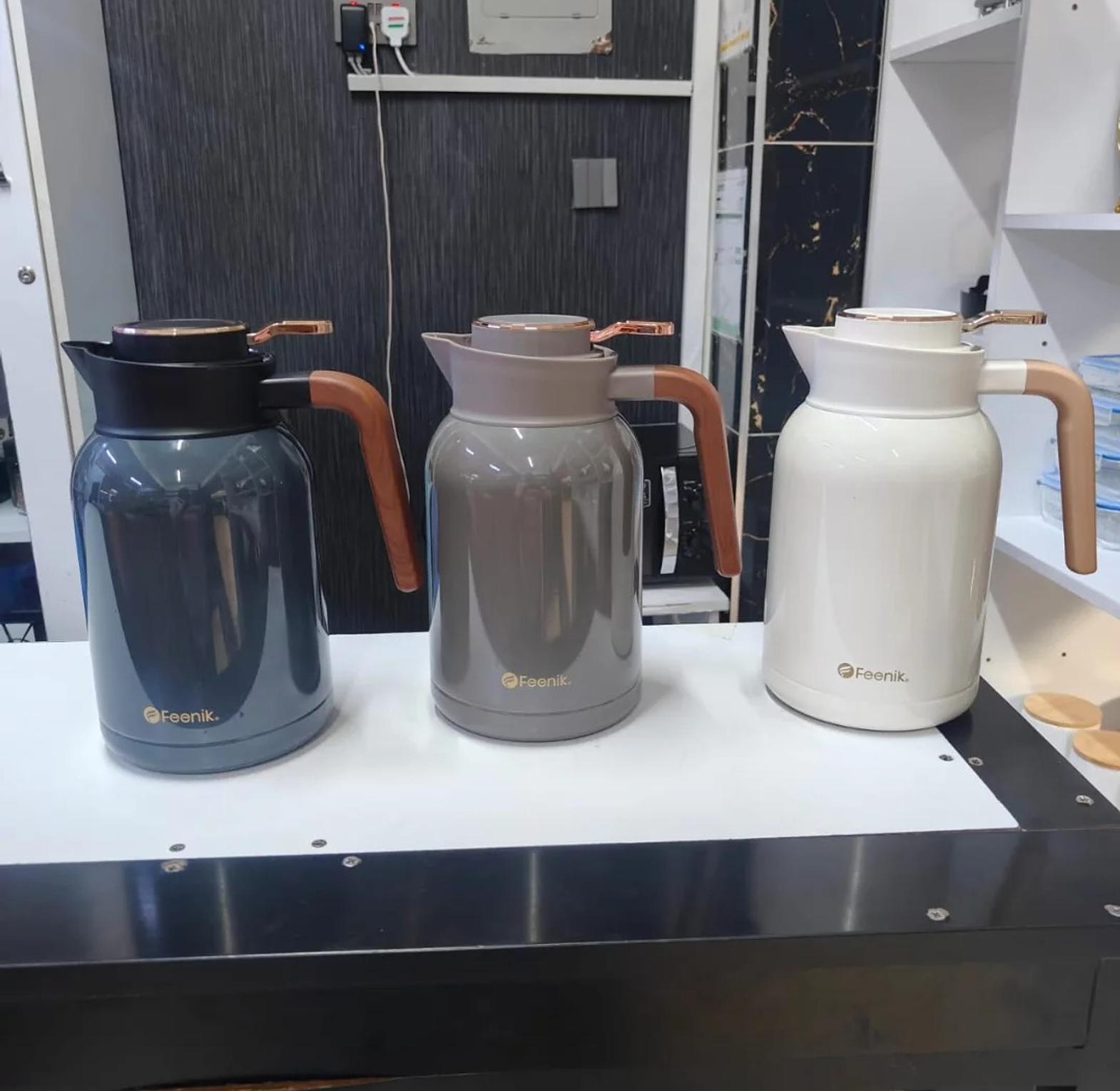 Available in a range of elegant colors including dark grey, light grey, and cream/white (as seen in the image), and featuring a stylish handle with a wood-grain finish, the Feenik flask combines high performance with sophisticated aesthetics. Its generous 2-liter capacity is perfect for sharing or ensuring you have enough hot or cold drinks throughout the day. This reliable and insulated flask is an essential accessory for picnics, travel, or everyday convenience, promising quality guaranteed and serving as a long-lasting hydration solution.