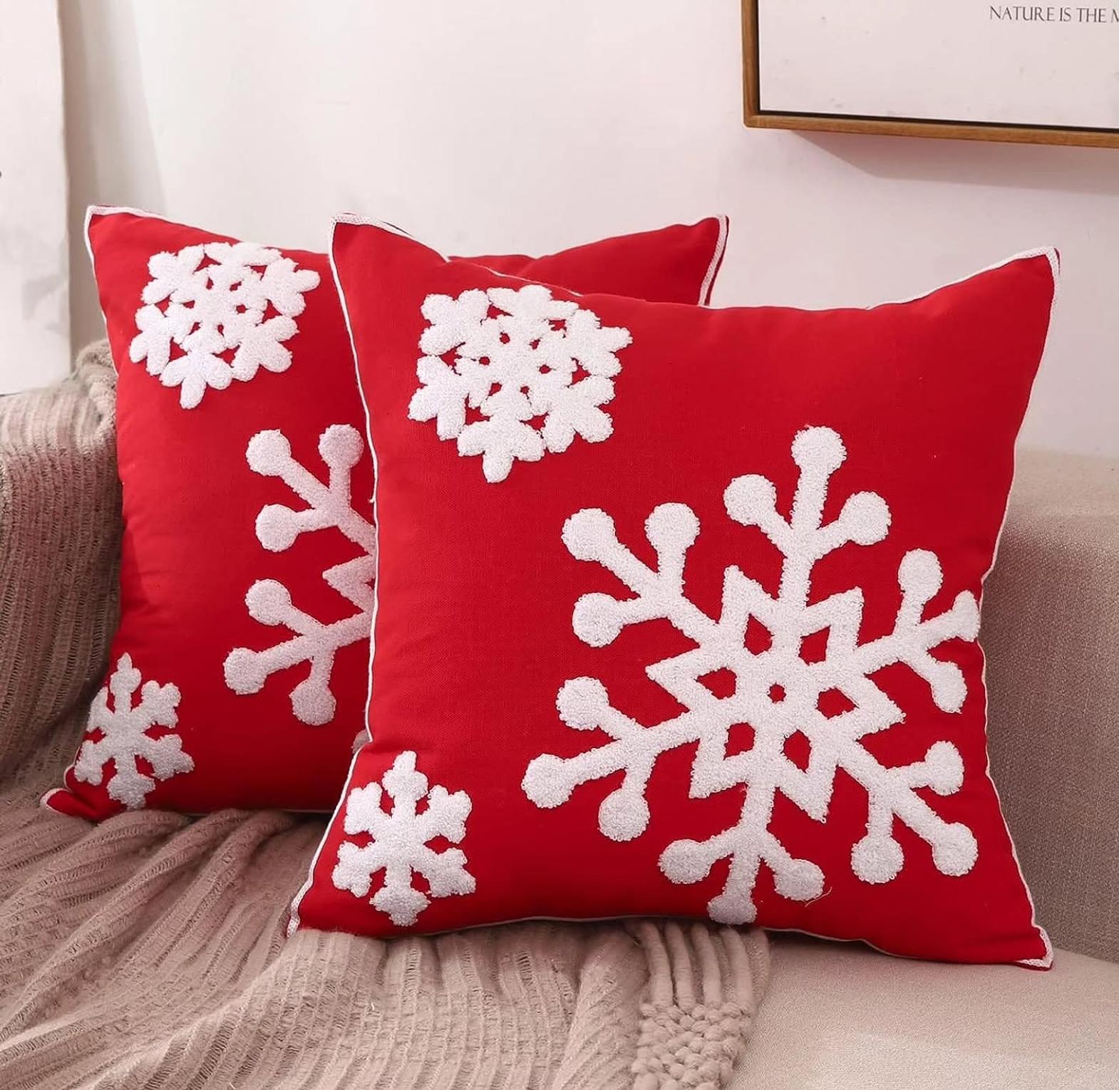 Add a cozy, immediate festive touch to your sofas, chairs, and beds with these high-quality Christmas-themed pillow covers. The vibrant red and white palette, combined with detailed embroidery and prints, creates a welcoming and cheerful atmosphere throughout the holiday season.