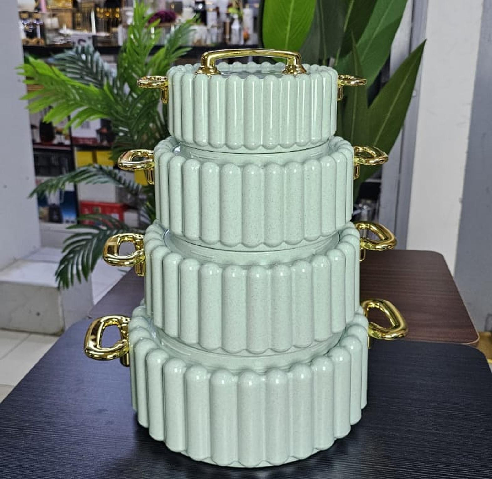Introducing the 4pcs Florence Hot Pot Set, designed for both functionality and elegance in your kitchen. This versatile set includes four different capacities: 1000ml, 1500ml, 2500ml, and 3500ml, making it perfect for everything from intimate family dinners to large gatherings. Crafted from high-quality materials, these hot pots are ideal for a variety of cooking methods, including simmering, boiling, and serving.
