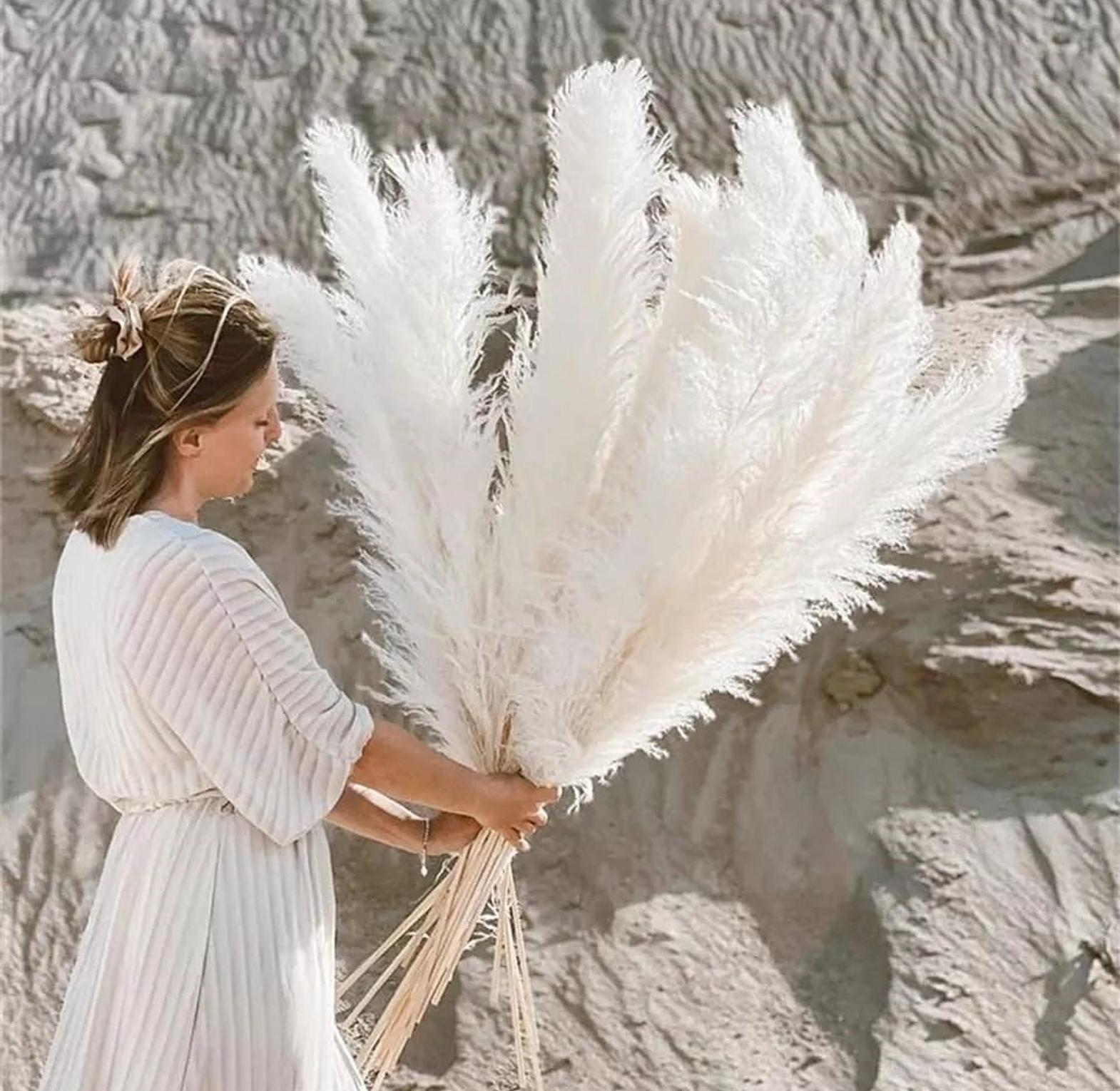 Add a touch of elegance to your home with our fluffy large pampas grass decor, an ideal choice for natural room decoration and stylish accents. Measuring generously to create a dramatic visual impact, this pampas grass is perfect for enhancing your living space, wedding arrangements, or as a chic bouquet for parties. Available in classic white and earthy natural colors, it complements a range of interior styles and color palettes. The soft, fluffy texture adds a cozy and sophisticated feel to any setting, making it a versatile and eye-catching choice for home decor enthusiasts and event planners alike.