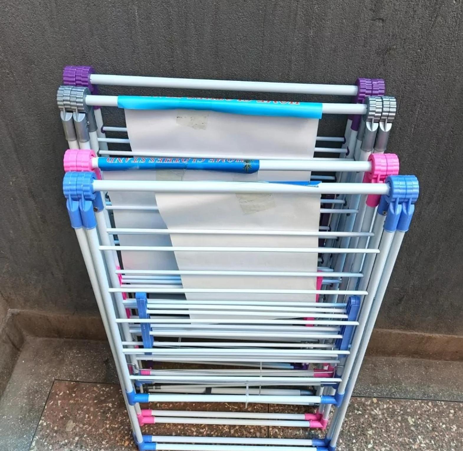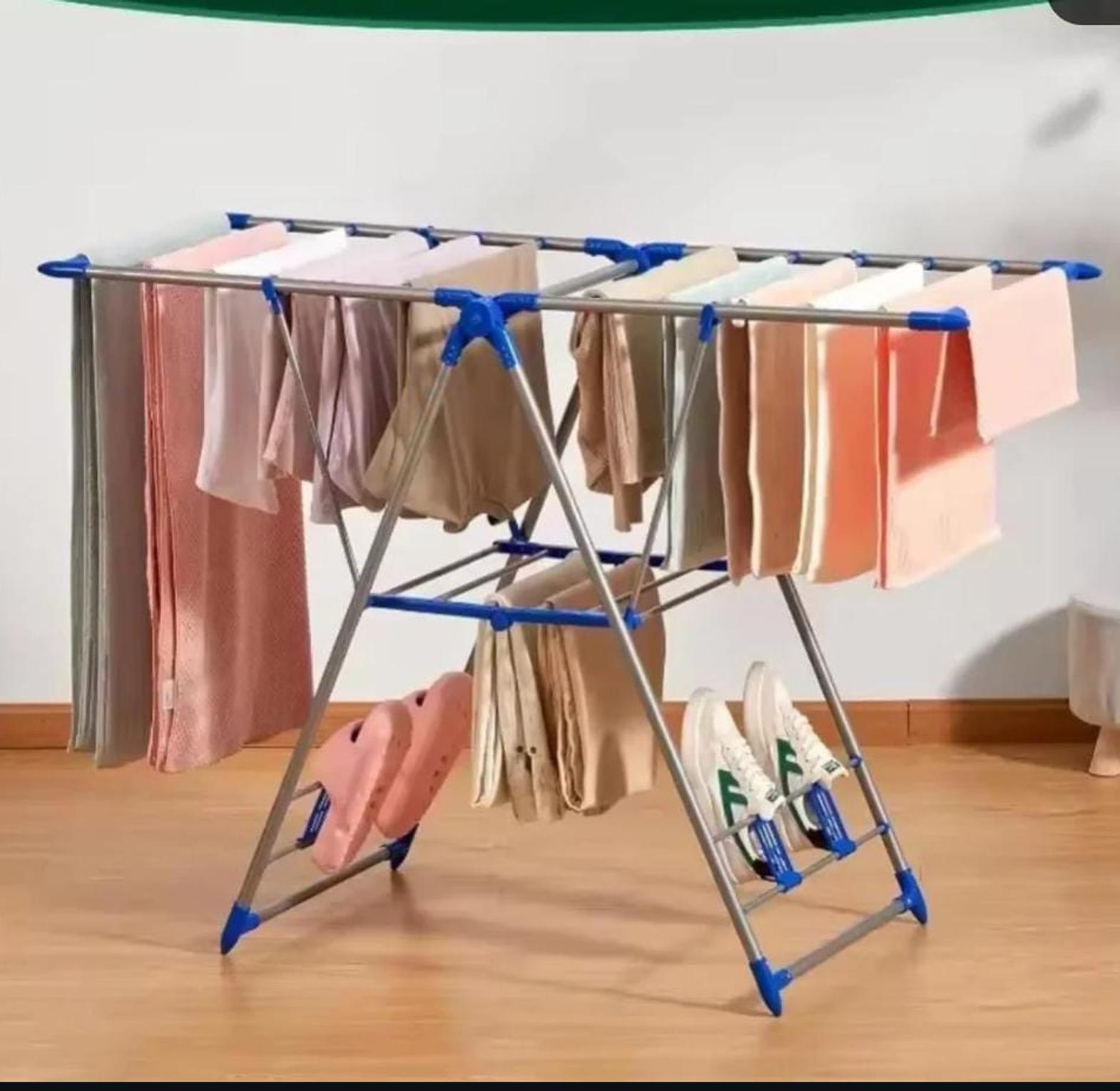 Simplify your laundry routine with this foldable and portable cloth drying rack—a sturdy, lightweight solution for air-drying clothes anywhere, anytime. Built with durable metal or reinforced plastic frames, it offers ample space across multiple tiers for drying garments, towels, or delicate items with ease. Its collapsible design allows for quick storage in tight spaces, making it perfect for apartments, balconies, or travel. Whether you're drying clothes under the sun or inside on rainy days, this rack ensures your laundry dries evenly and neatly without the need for a bulky dryer. Practical, portable, and eco-friendly—this rack is a must-have for every modern home.