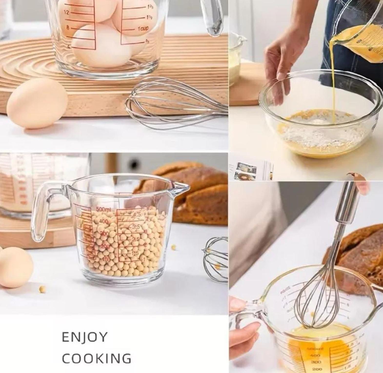 This glass measuring cup with scale and handle is a must-have tool for every kitchen, offering both accuracy and convenience. Made from high-quality, heat-resistant glass, it features clear, easy-to-read measurements, making it simple to measure liquids and dry ingredients with precision. The sturdy handle ensures a secure grip, while the pour spout allows for mess-free pouring. Perfect for everything from cooking to baking, this measuring cup provides reliable performance and durability, helping you achieve perfect results every time. Its versatile design also makes it easy to clean and store, making it a practical addition to any kitchen.