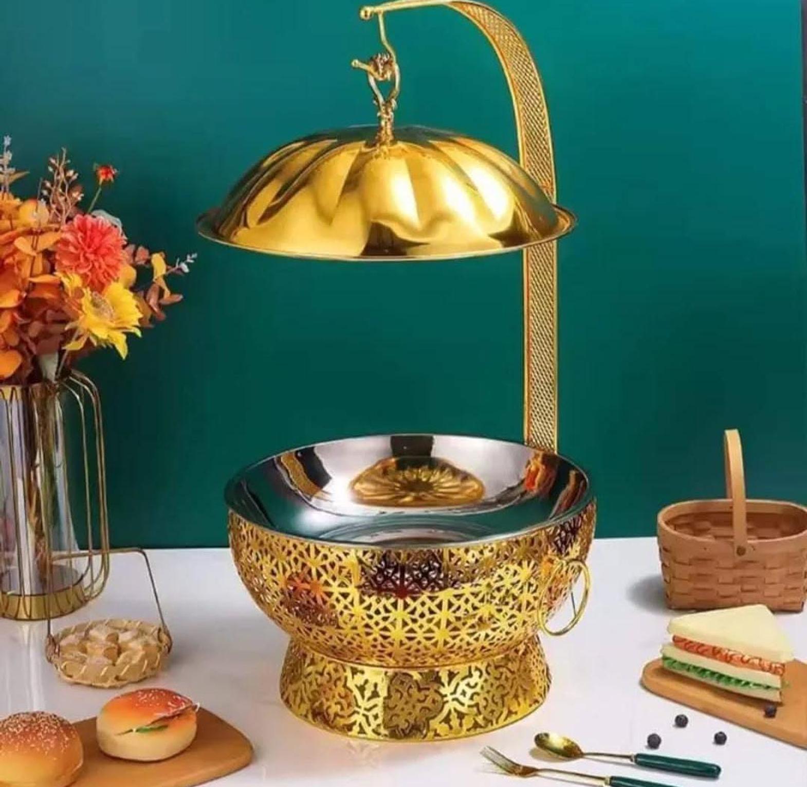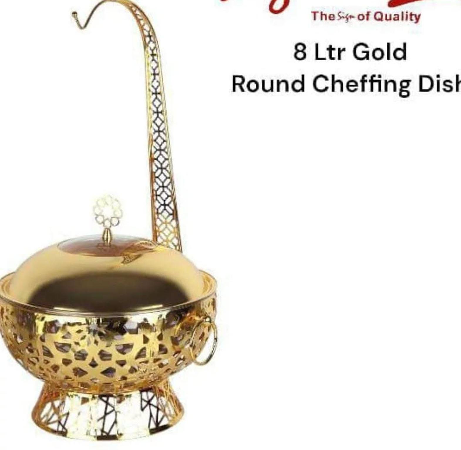 Serve your meals in style with our Gold Round Chafing Dish, designed to offer both sophistication and practicality. With an 8-liter capacity, this chafing dish is ideal for large gatherings, buffets, and special occasions, ensuring that your food stays at the perfect temperature for hours. The gold-tone finish adds a touch of luxury to any dining setup, while the sturdy construction ensures durability and stability. Featuring a convenient lid and fuel holder, this chafing dish is designed for ease of use and effortless maintenance, making it the perfect choice for catering or home entertaining. Whether you're serving appetizers, entrees, or side dishes, this chafing dish elevates both the presentation and functionality of your event.