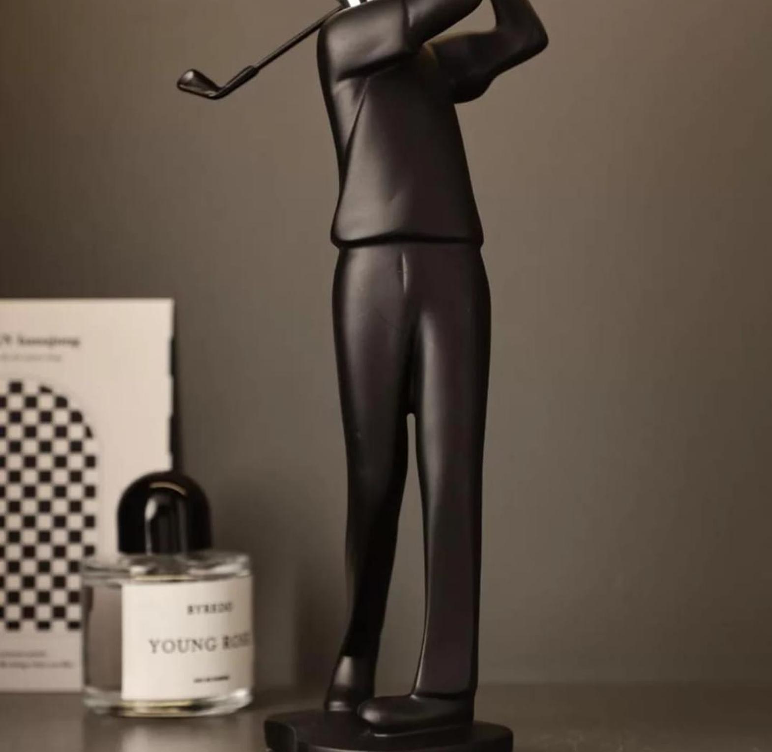 Celebrate the sport of golf with this beautifully crafted ceramic golfer sculpture. Expertly designed to convey motion and grace, the piece showcases a golfer in mid-swing, bringing energy and life to any space. The smooth ceramic finish and detailed features make this decor piece a sophisticated addition to your home, office, or game room. Whether displayed on a mantle, bookshelf, or desk, it adds a touch of elegance and passion for the game. A perfect gift for golf lovers or a stylish way to highlight your own appreciation for the sport, this sculpture combines art and athleticism in a striking form.
