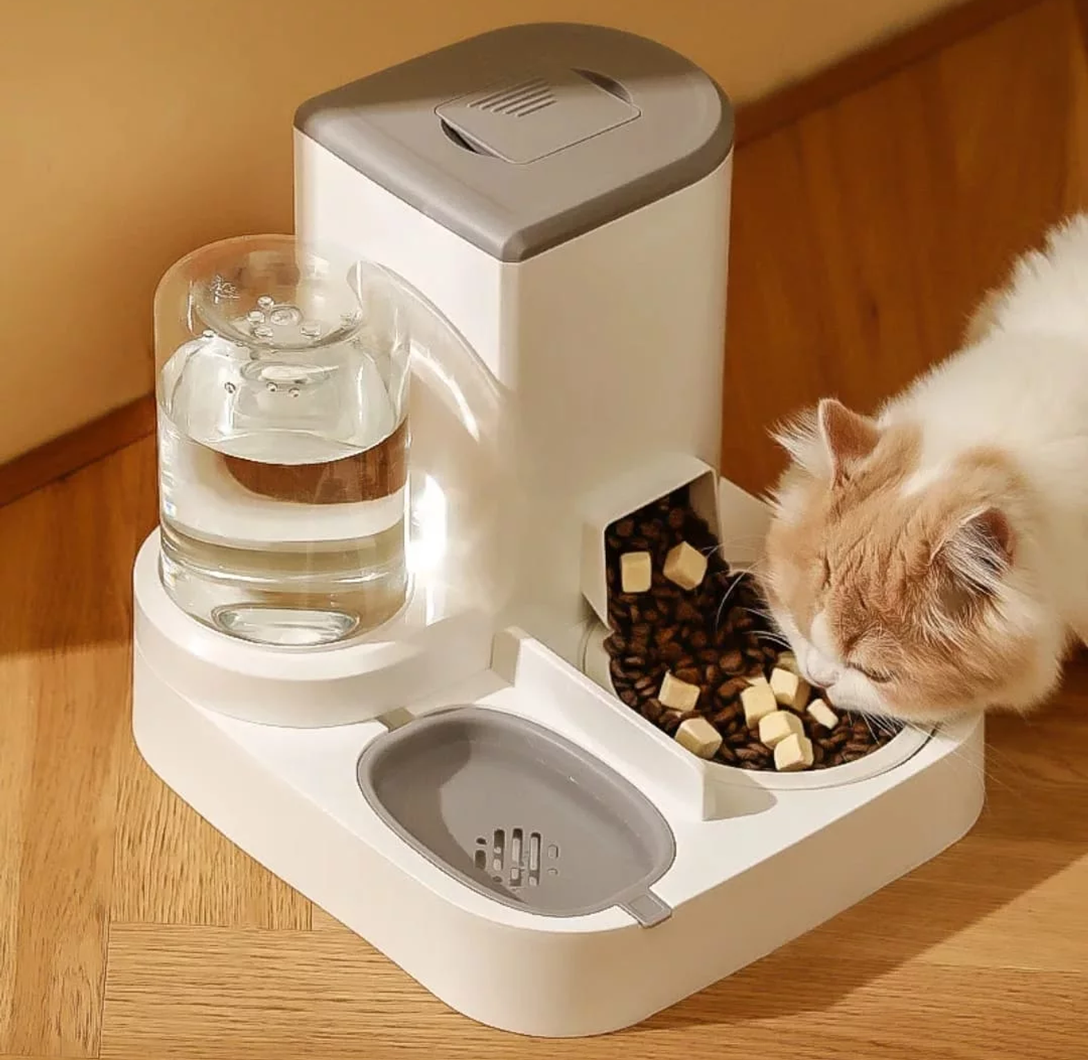 The ultimate solution for effortless pet nutrition and hydration. This self-dispensing station combines a food reservoir and a water bottle into one sleek, durable unit made from food-grade PP material. The large capacity design significantly reduces the frequency of refills, making it perfect for busy pet owners or multi-pet households. Utilizing a simple gravity principle, the dry food and water automatically replenish the attached bowls as your pet consumes them, maintaining a consistent supply throughout the day. The thoughtfully structured design is easy to disassemble and clean, promoting optimal hygiene for your furry companion's meals. Available in sophisticated color options like grey, green, and blue, this feeder integrates seamlessly into any home environment while providing reliable, around-the-clock nourishment for your cat or dog.