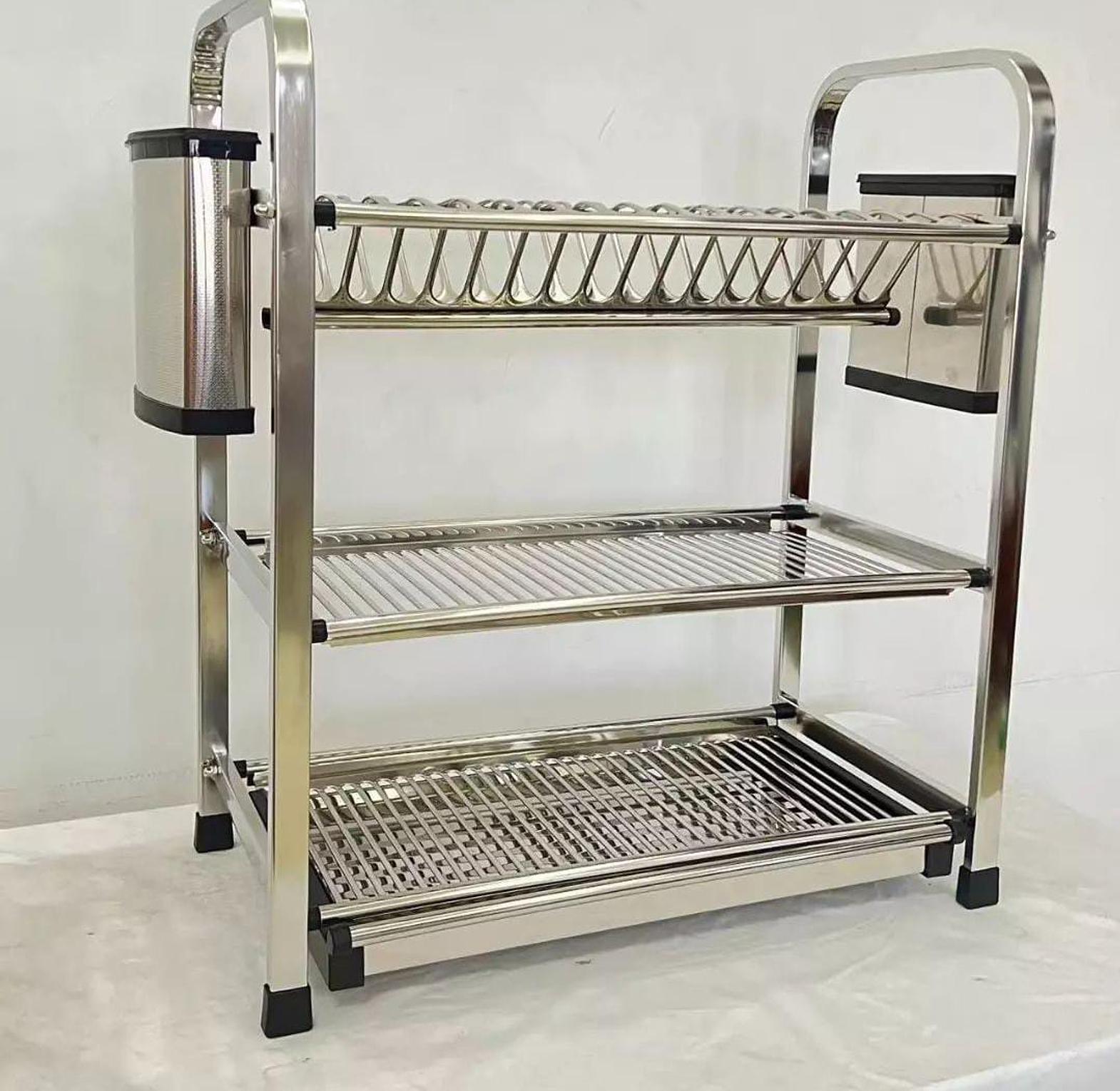 Our heavy-duty 3-tier dish rack is the ultimate solution for efficient kitchen organization, offering ample space to dry and store dishes, utensils, and cookware. Built with sturdy, rust-resistant materials, this rack provides lasting durability and stability, even with daily use. The three spacious tiers allow you to neatly separate different types of items, with designated sections for plates, bowls, glasses, and cutlery. Its compact, vertical design is ideal for saving counter space while keeping everything within easy reach. Perfect for busy kitchens, this dish rack combines practicality and resilience, making it a must-have for maintaining an organized, clutter-free space.