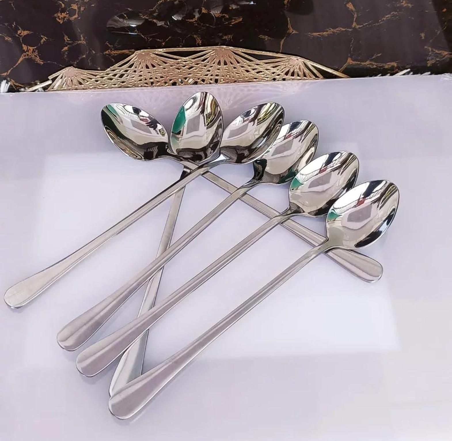 These heavy-gauge long tea spoons are designed to bring both style and durability to your tea time. Crafted from high-quality stainless steel, they are strong enough to withstand regular use without bending or warping. The elongated handle makes them ideal for reaching into deep mugs, teapots, or tall glasses, while the sleek, polished finish adds a touch of sophistication to your table setting. Whether you're stirring your tea, coffee, or desserts, these long tea spoons offer a practical and elegant solution, making them a must-have for anyone who appreciates fine dining and tea rituals.