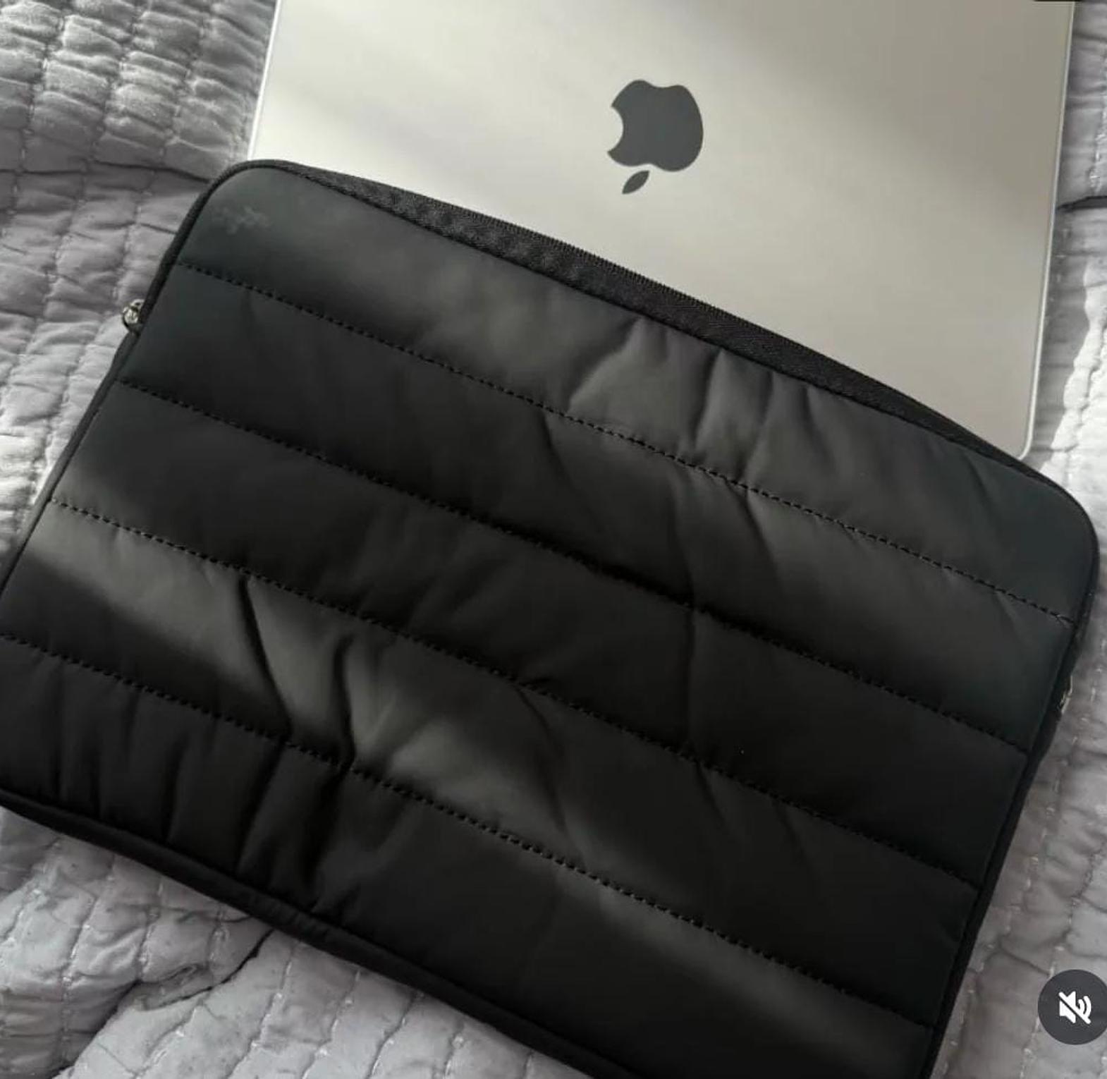A high-quality puffy laptop sleeve offering plush protection and modern style for your device.