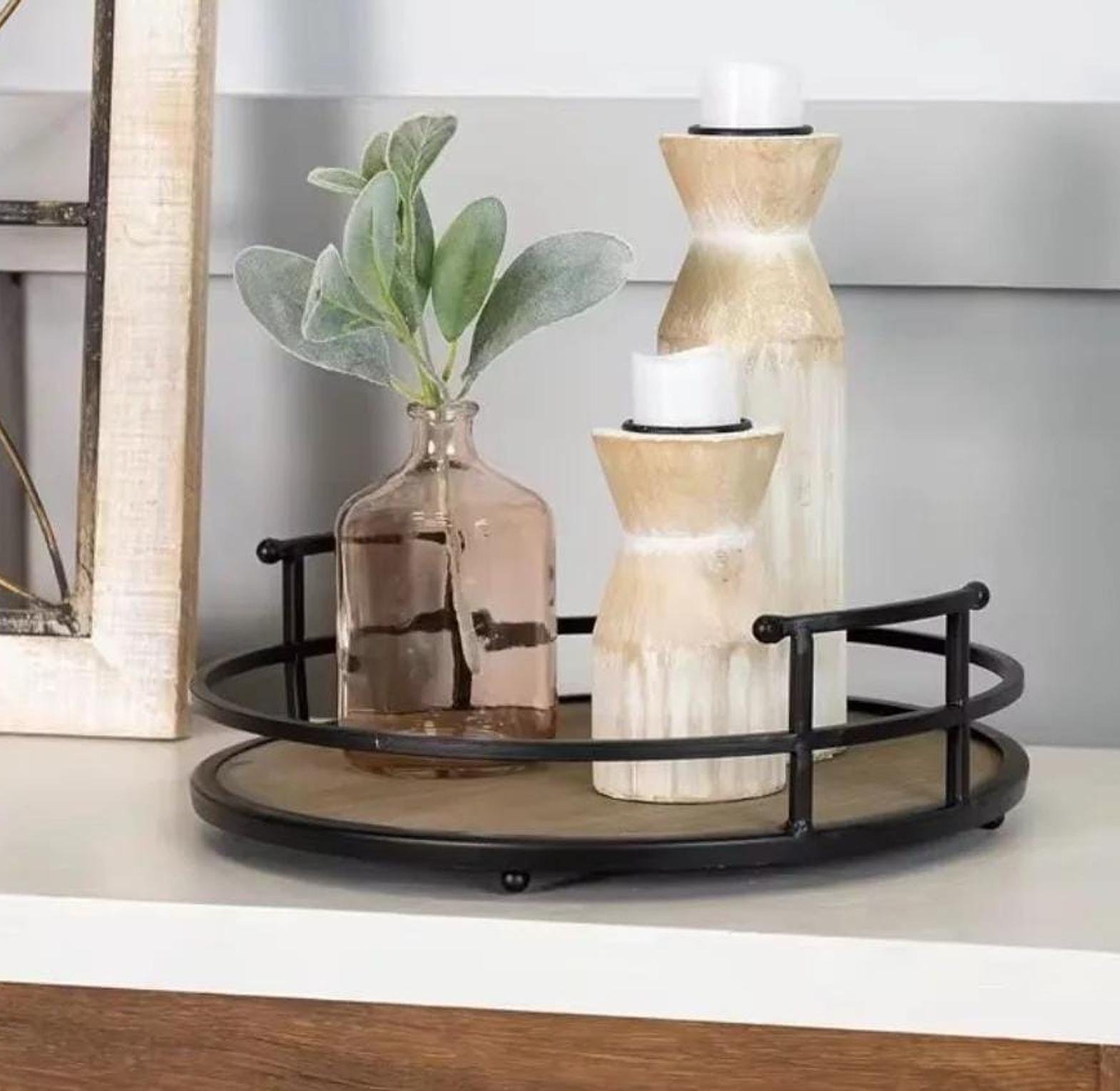 Our Home Decor Rustic Modern Metal and Wood Round Counter Tray perfectly embodies this philosophy, blending the natural beauty of wood with the sleek sophistication of metal. This versatile tray is not just a functional serving piece; it's a statement piece that adds character and style to any space. Whether you use it to display decorative items on your coffee table, serve drinks and appetizers to guests, or organize essentials on your entryway console, this tray will elevate your home décor.