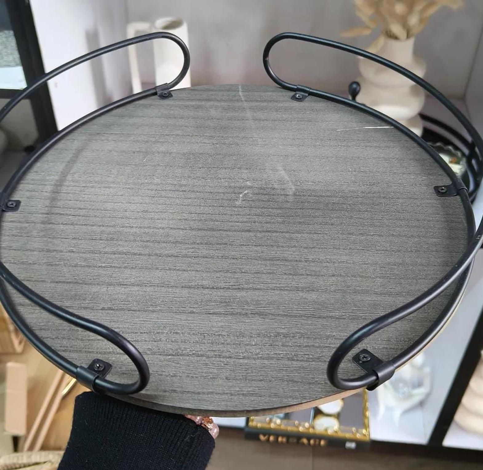 Bring both charm and function to your space with this round counter tray, crafted from a sturdy metal frame and a smooth wooden base. The rustic wood grain adds warmth, while the metal rim provides a modern, industrial edge, making it a perfect accent for any kitchen, coffee table, or dining area. Ideal for serving drinks, displaying décor, or organizing essentials, this tray combines timeless style with everyday practicality. Its durable build ensures long-lasting use, while the balanced design complements farmhouse, contemporary, or eclectic interiors alike.