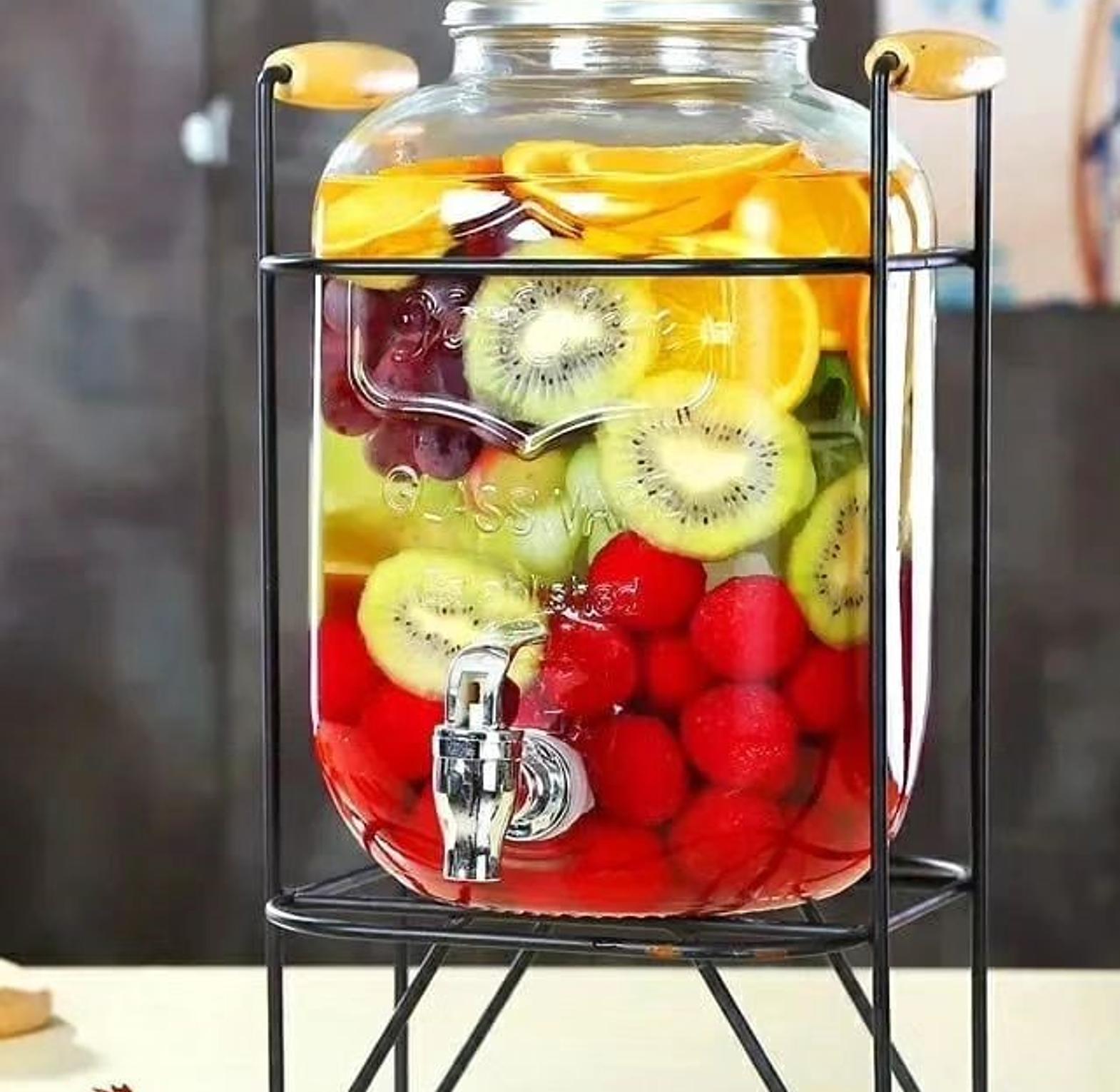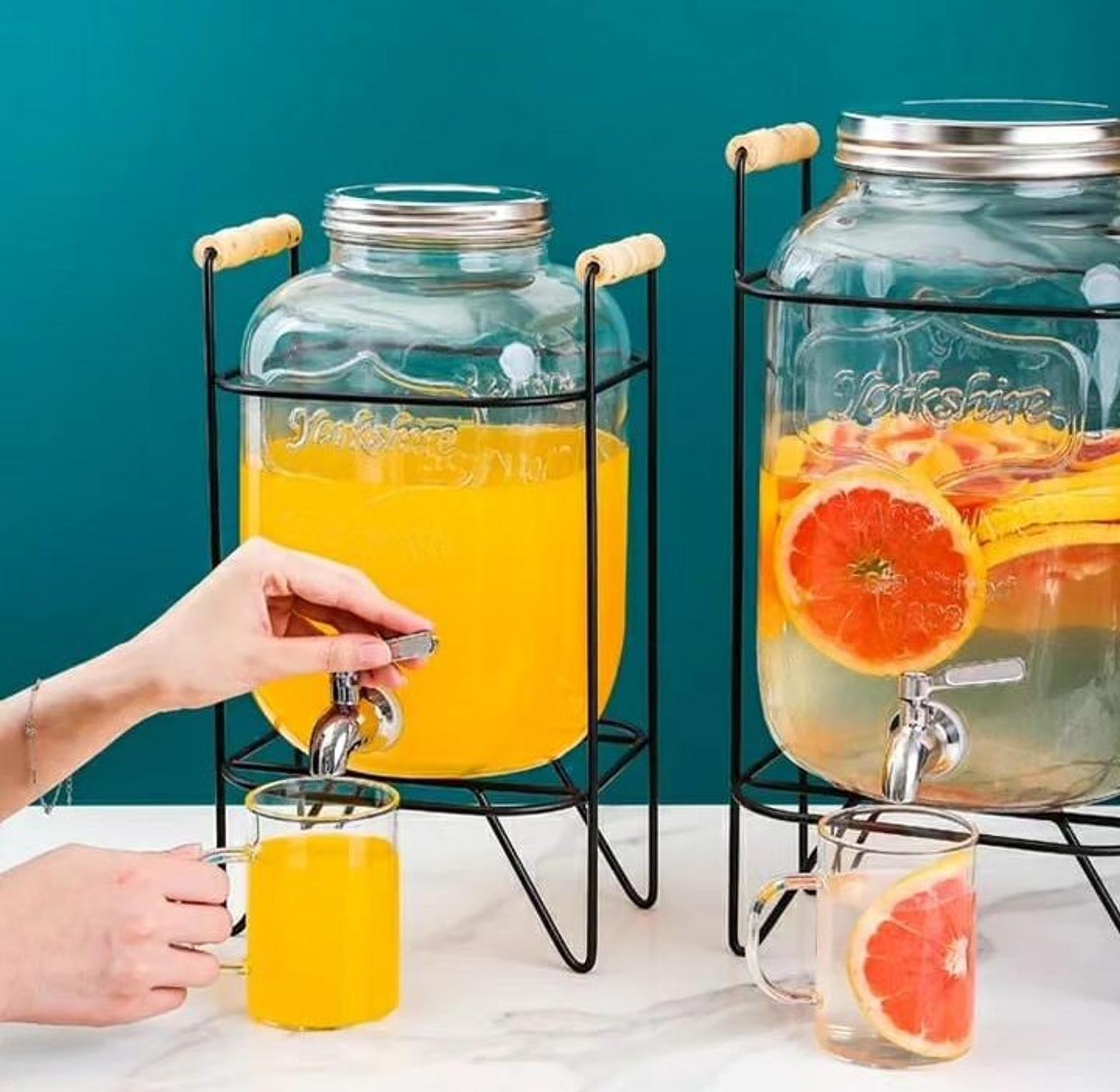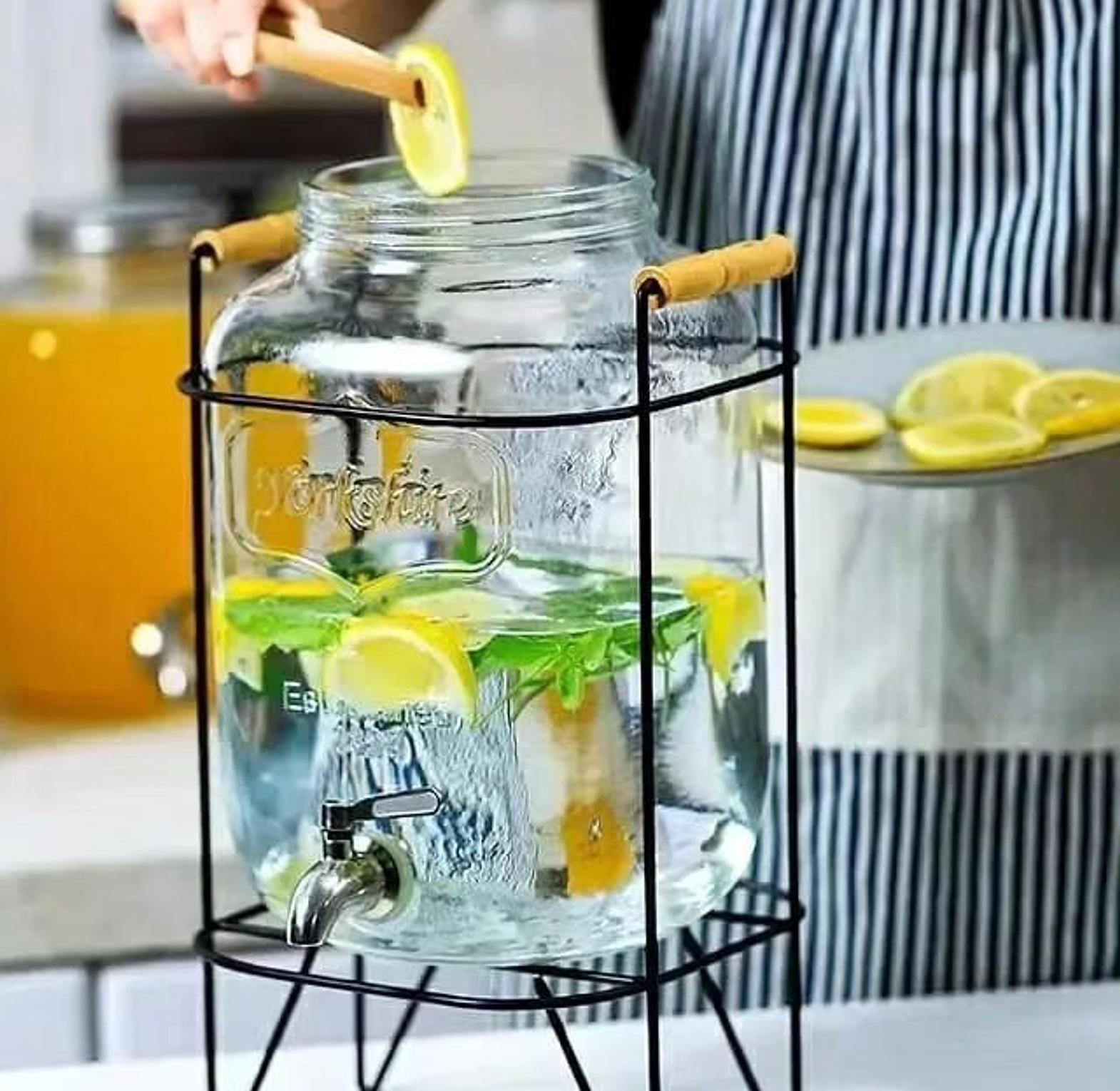 Elevate your beverage service with our stylish glass juice dispensers, available in two generous sizes: 5 liters and 8 liters. Made from high-quality glass, these dispensers provide a crystal-clear view of your drinks, allowing you to showcase fresh juices, flavored waters, or iced teas with sophistication. The classic design includes a secure lid to keep beverages fresh and a convenient spout for easy pouring. Whether you're hosting a large gathering or a more intimate event, the 5L and 8L options offer versatility and practicality. Perfect for both casual and formal settings, these glass juice dispensers blend functionality with timeless elegance, making them a versatile addition to your dining or entertaining collection. Easy to clean and refill, they ensure you can serve your drinks in style while maintaining durability and charm.