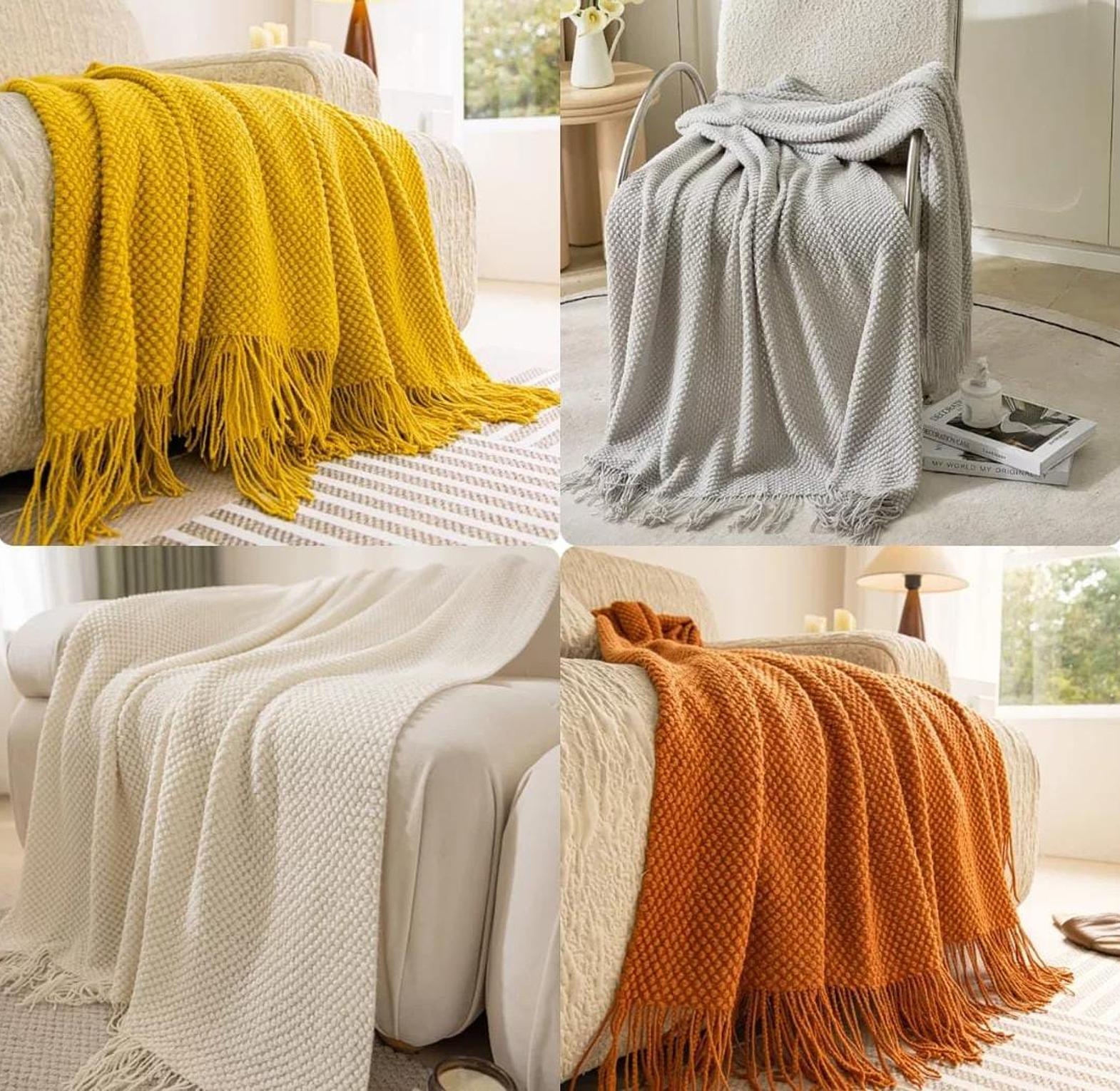 Wrap yourself in comfort with this beautifully knitted throw blanket, designed to provide warmth and a cozy, inviting atmosphere to your home. The soft, chunky knit adds a rich texture that not only enhances the aesthetic of your couch, bed, or armchair but also offers a luxurious feel on colder days. Perfect for lounging, reading, or simply adding an extra layer of warmth, this throw blanket is both functional and stylish. Available in a variety of colors, it complements different décor styles, from minimalist to rustic, making it a versatile addition to any room. Whether draped over the back of a chair or used for cuddling up during movie nights, this knitted throw blanket brings both comfort and charm to your space.