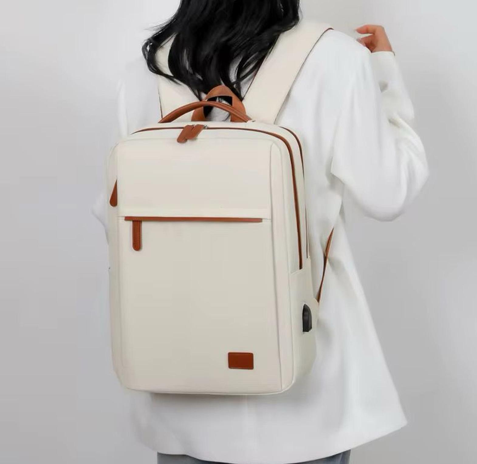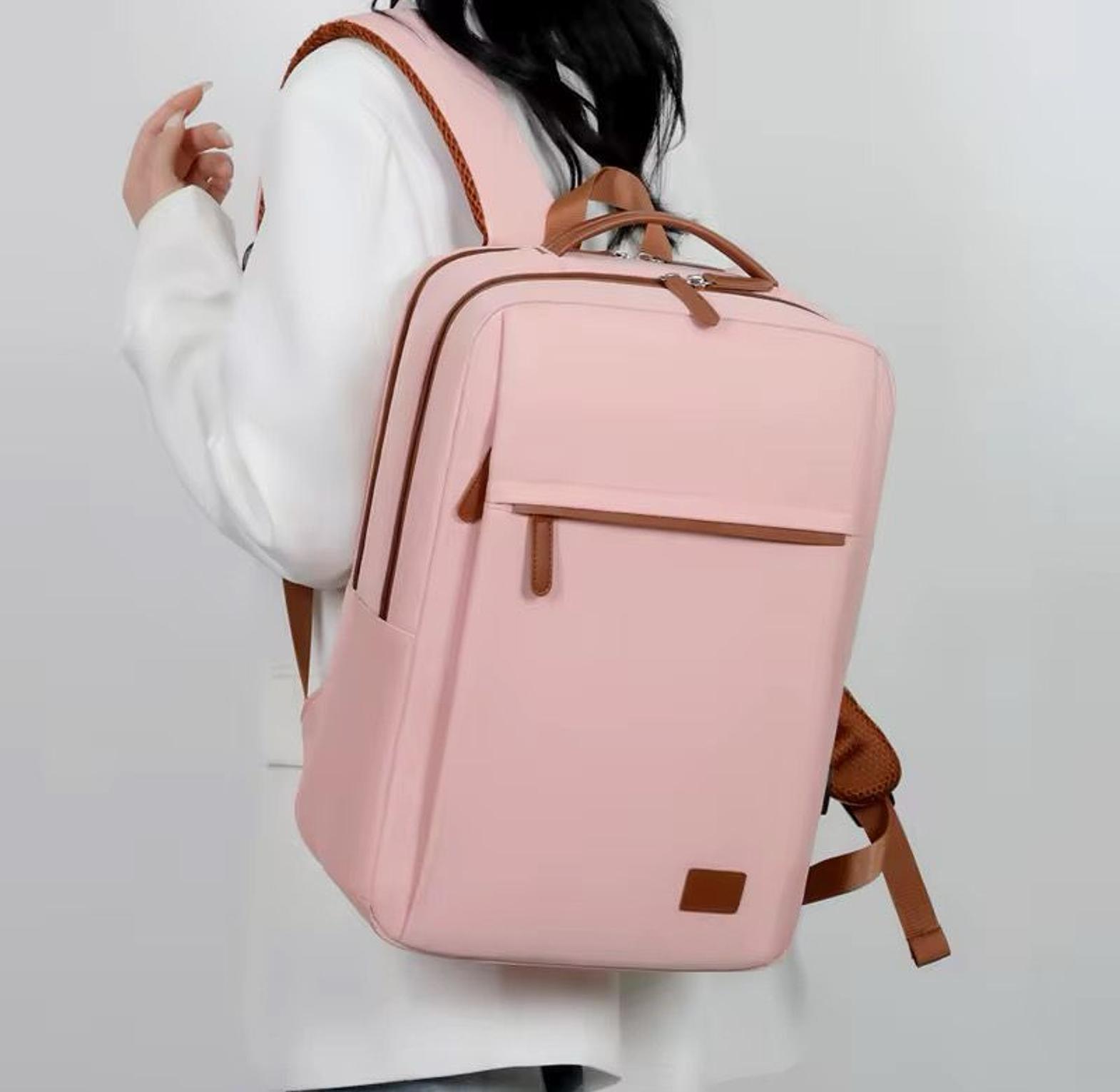 The Premium Minimalist Travel Backpack with Leather Accents is a sophisticated storage solution designed for modern professionals, students, and travelers seeking the perfect blend of style, comfort, and functionality. Crafted from high-quality, lightweight materials with genuine leather trim details, this versatile backpack features a spacious main compartment, dedicated laptop sleeve, and multiple organizational pockets to accommodate all your essentials. Available in five elegant colorways including classic black, pristine beige, soft pink, powder blue, and sophisticated grey, this unisex design complements any wardrobe while providing superior comfort through padded shoulder straps and ergonomic back panel construction. The clean, minimalist aesthetic features a front zippered pocket with leather pull tabs, reinforced stitching, and a durable water-resistant exterior that protects your belongings during daily commutes, business trips, airport travel, or school activities. Whether you're navigating busy city streets or embarking on international adventures, this premium backpack delivers exceptional organization, comfort, and timeless style that transitions seamlessly from professional meetings to weekend getaways.