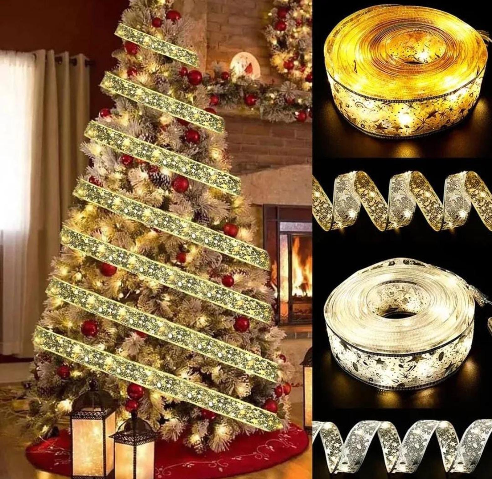 Our lighting ribbons offer a creative and flexible way to brighten your holiday decor, featuring soft, glowing LED lights woven into beautiful, satin-like ribbons. Battery-powered for easy placement anywhere, these ribbons are perfect for wrapping around Christmas trees, garlands, wreaths, or even window frames to add a twinkling, festive touch. The battery operation ensures a tidy setup without the need for outlets, making them perfect for both indoor and outdoor use. Their gentle illumination enhances the holiday atmosphere, casting a warm, inviting glow that beautifully complements other seasonal decor, creating a magical holiday ambiance throughout your home.