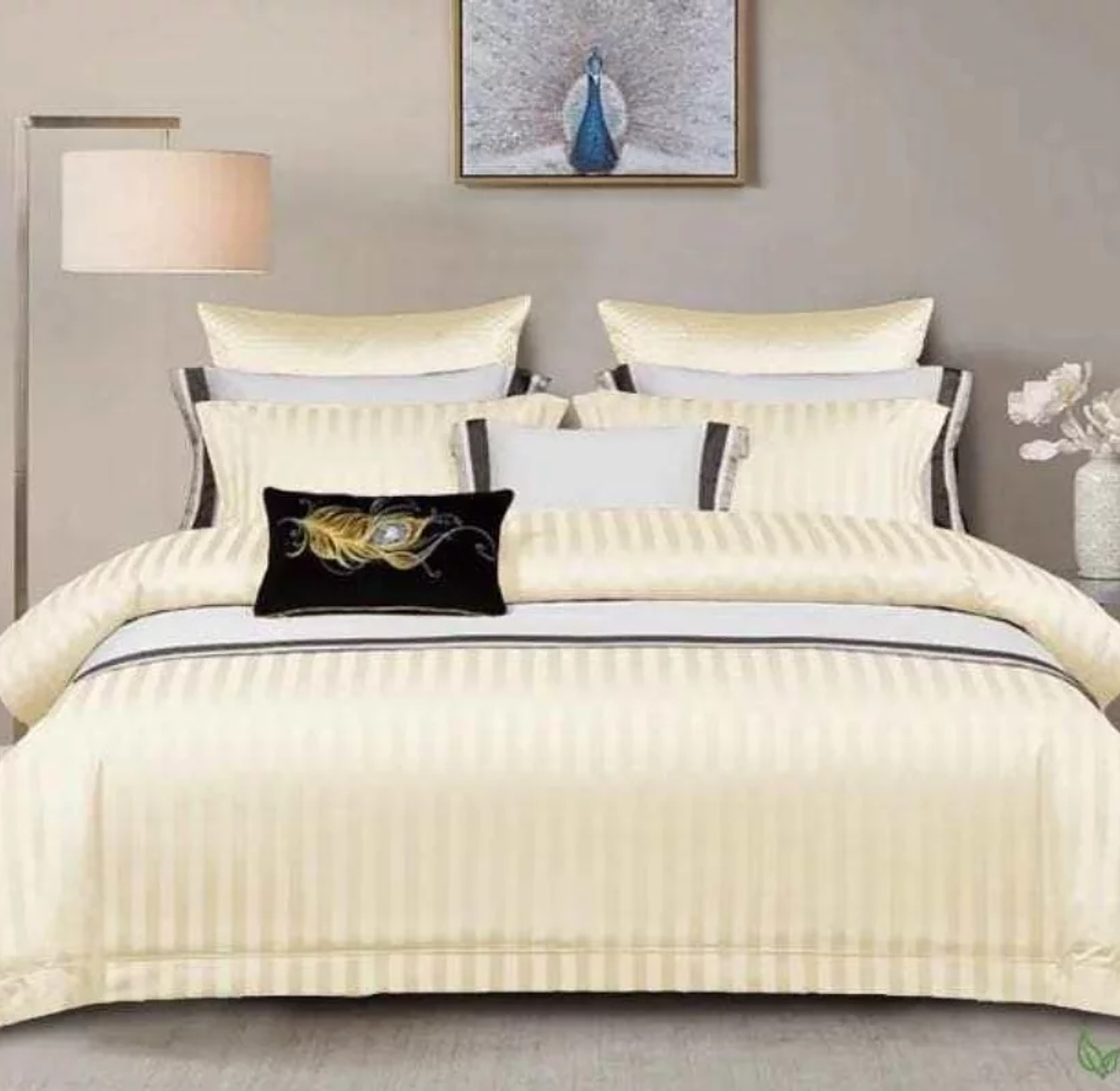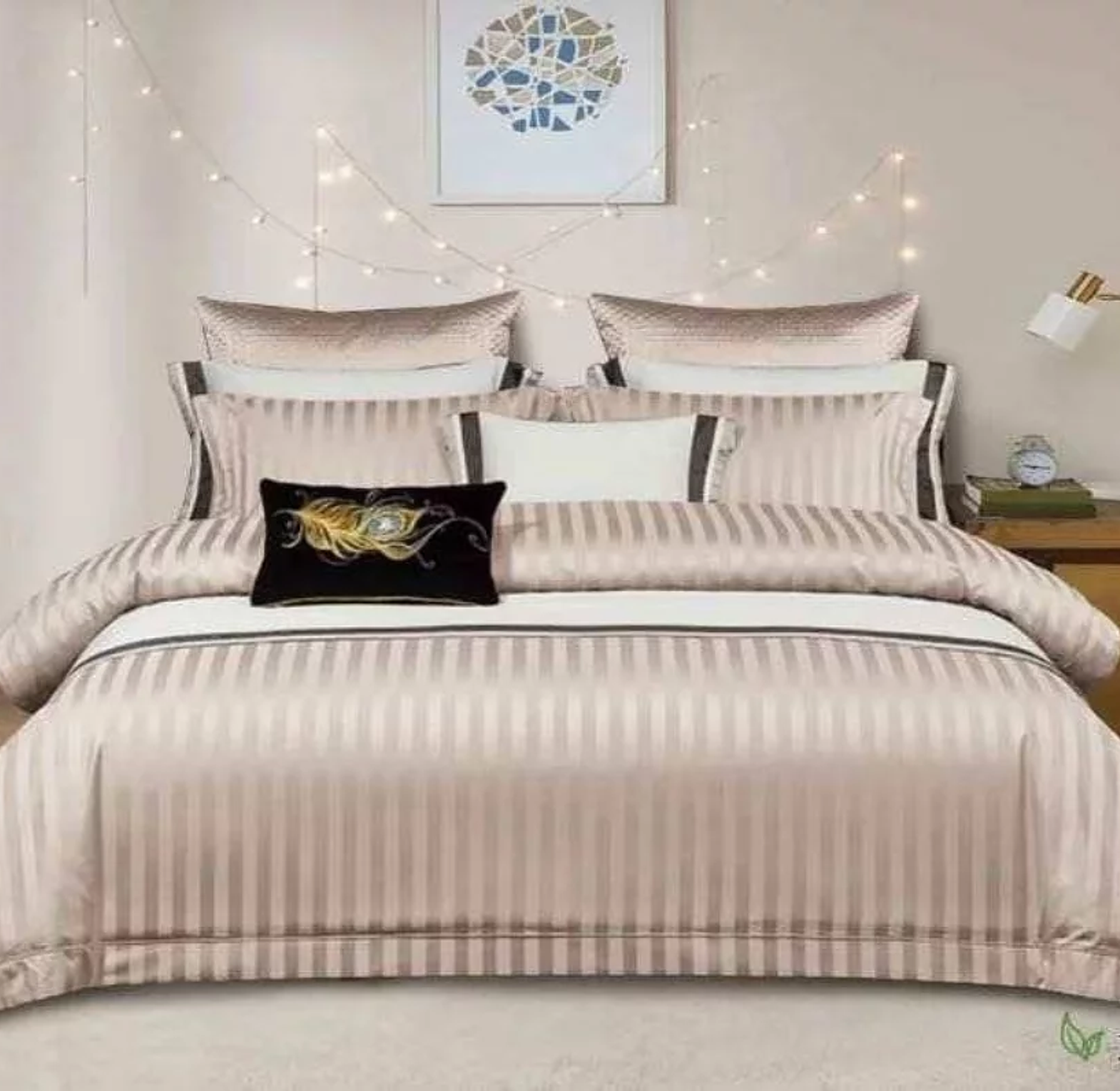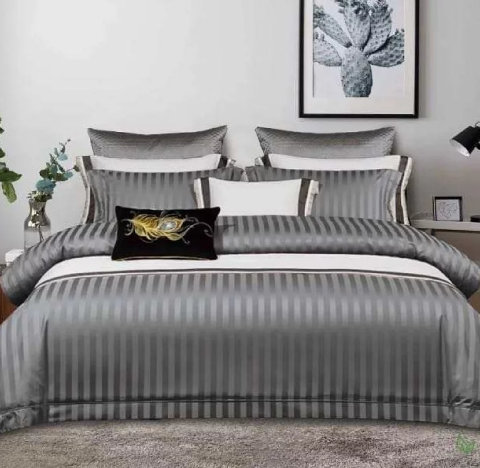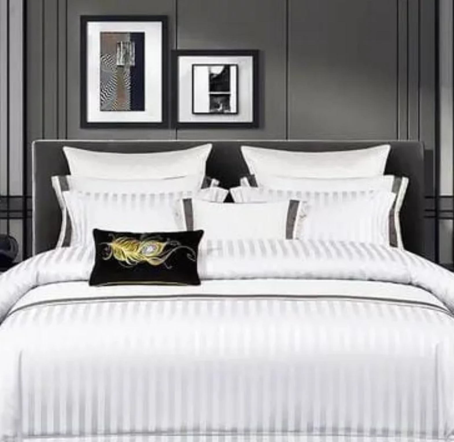 Elevate your sleeping environment with this exquisite bedding set, designed for those who appreciate refined comfort and style. Crafted from soft, breathable cotton satin, the fabric offers a luxurious, silky-smooth feel that is cool against the skin and adds a gorgeous, subtle sheen to your room. The classic striped pattern provides a clean, sophisticated aesthetic that integrates seamlessly with both modern and traditional bedroom décor.