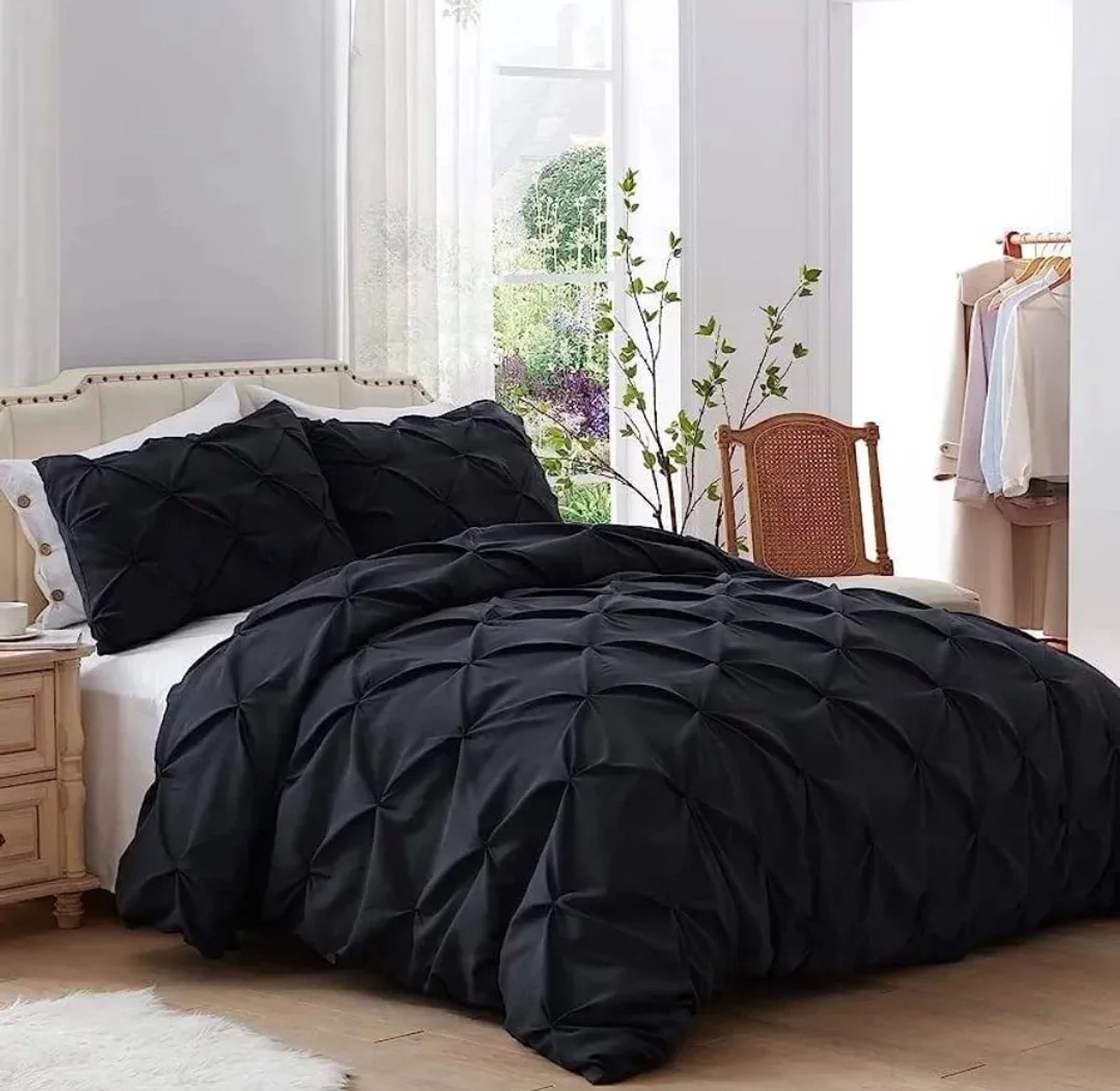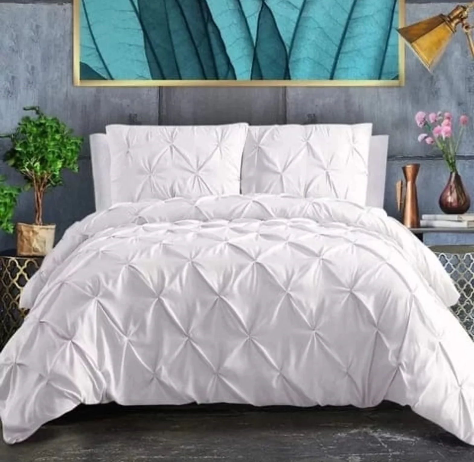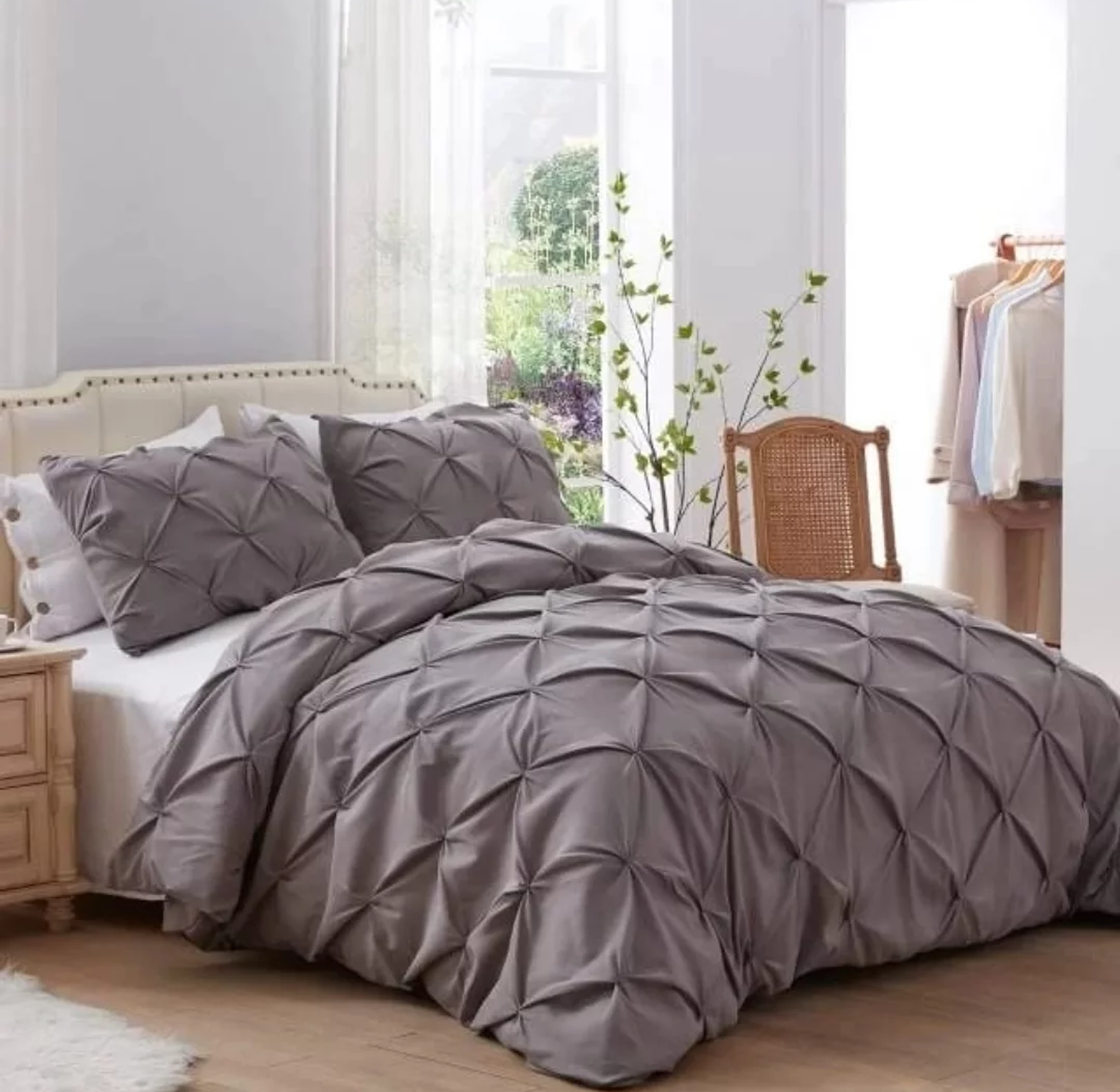 Introduce a touch of sophisticated, tailored elegance to your master suite with this exquisite duvet cover set. The fabric features specialized pinch pleat and cross pintuck techniques, which create a subtle, dimensional texture and a crisp, modern look that instantly upgrades your bedding ensemble.