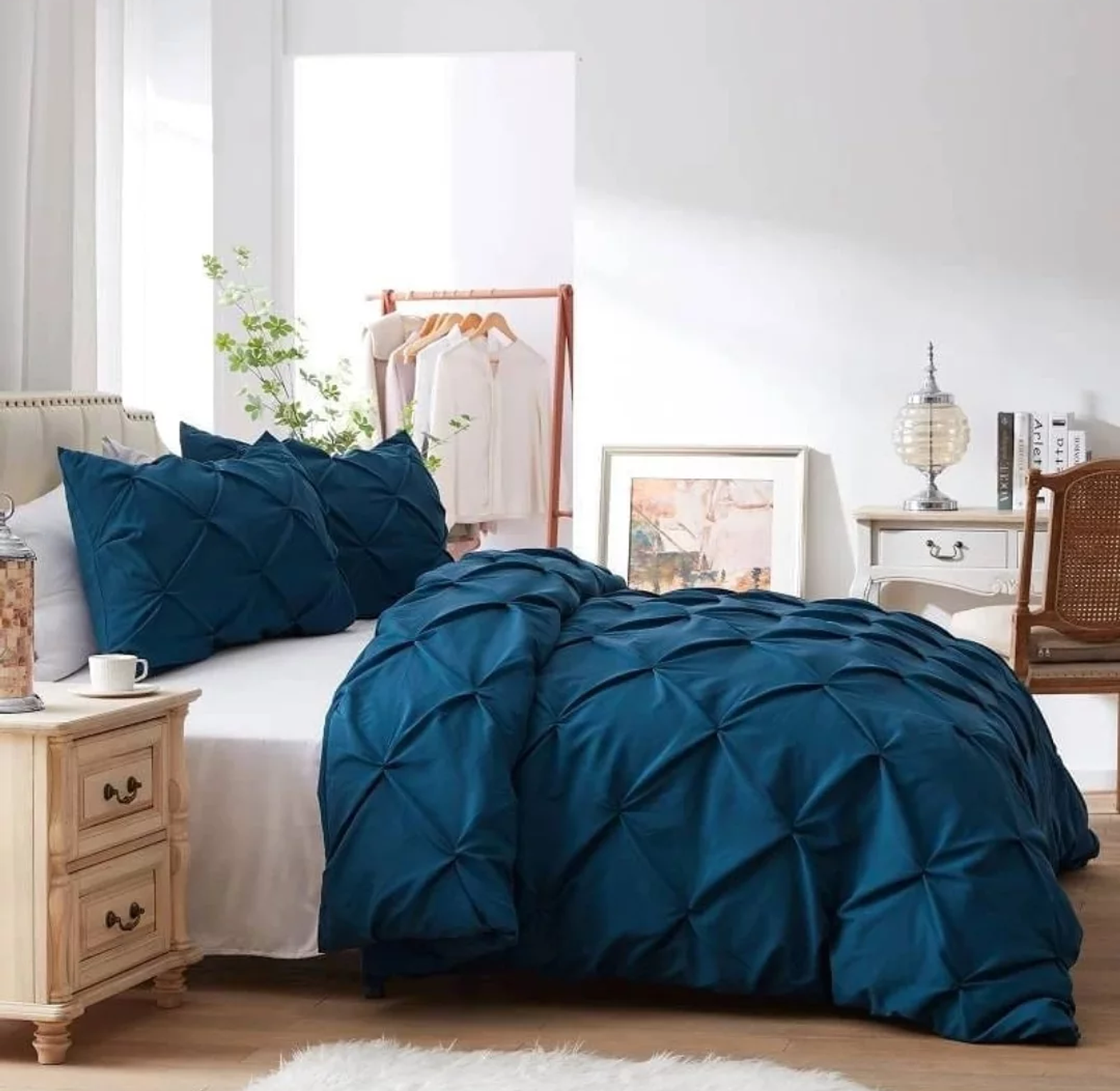 Designer Detailing: The intricate pintuck and pleat work adds a luxurious, high-end feel, mimicking the meticulous craftsmanship often found in boutique bedding.