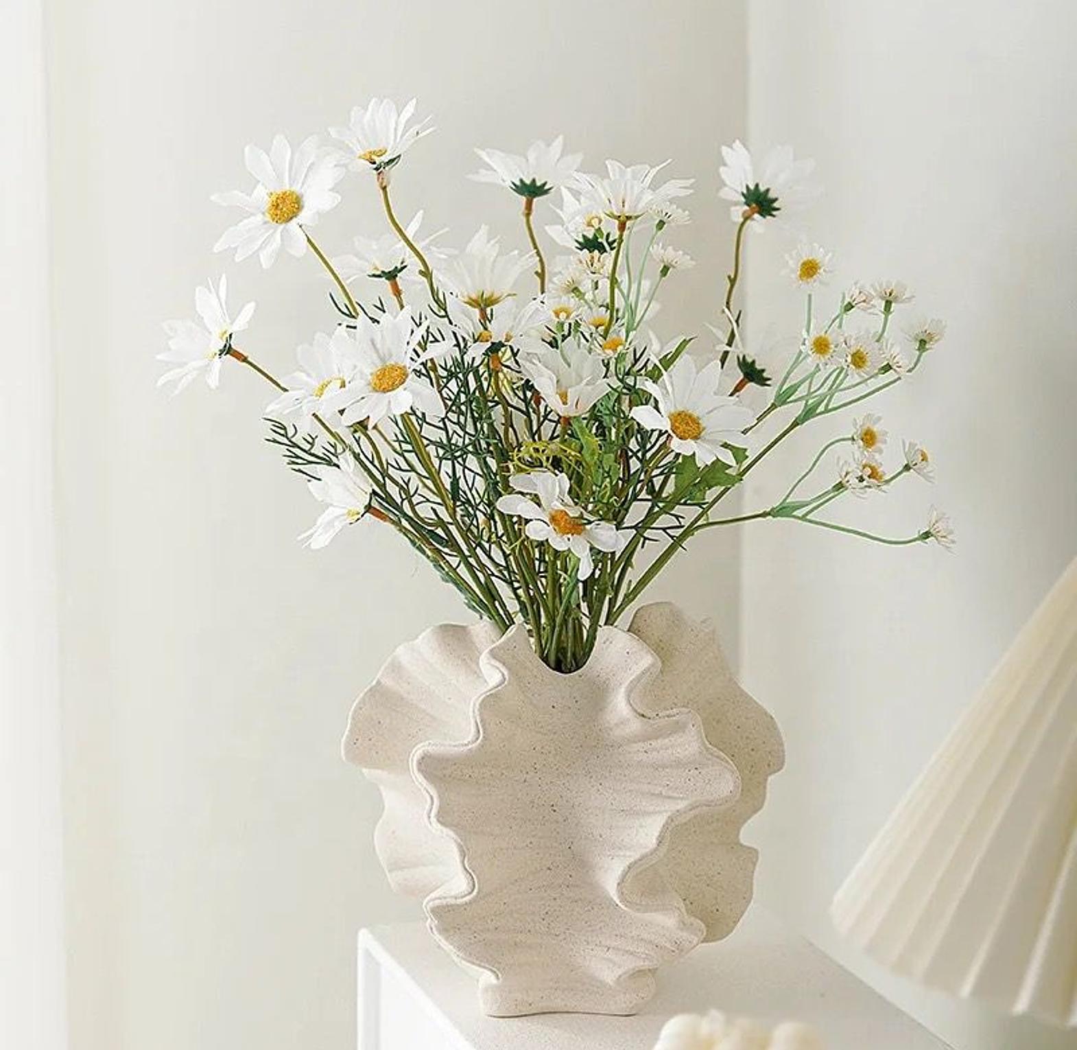 Introducing the Minimalist Art Irregular Decoration White Shell Shape Matte Clay Ceramic Vase, a stunning piece designed to bring a modern touch to your home or hotel decor. Its unique shell shape and matte finish create an artistic focal point that effortlessly complements a variety of interior styles, from contemporary to coastal. Crafted from high-quality ceramic, this vase not only showcases exceptional craftsmanship but also adds texture and depth to your decor.