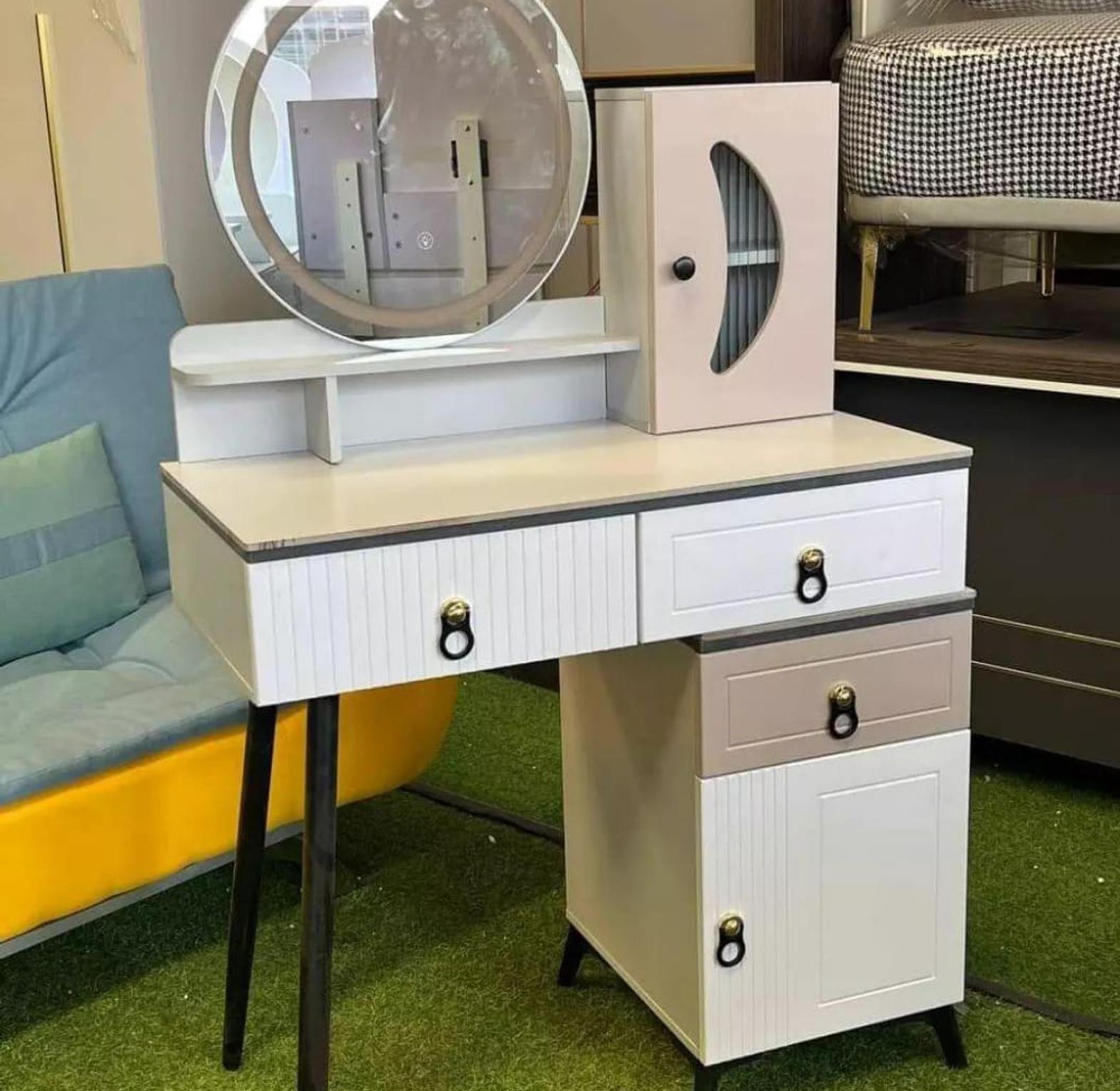 Our minimalist dressing table with a sliding mirror is designed for both beauty and functionality, offering a chic solution for modern spaces. The smooth-sliding mirror conceals spacious compartments that keep your essentials organized and your surfaces clear. Crafted from high-quality materials, this dressing table boasts clean lines and a streamlined silhouette, making it a versatile addition to any bedroom or dressing area. Perfect for those who appreciate understated elegance, this piece effortlessly blends form and function, providing a stylish space for your daily routine while enhancing your décor with its minimalist charm.