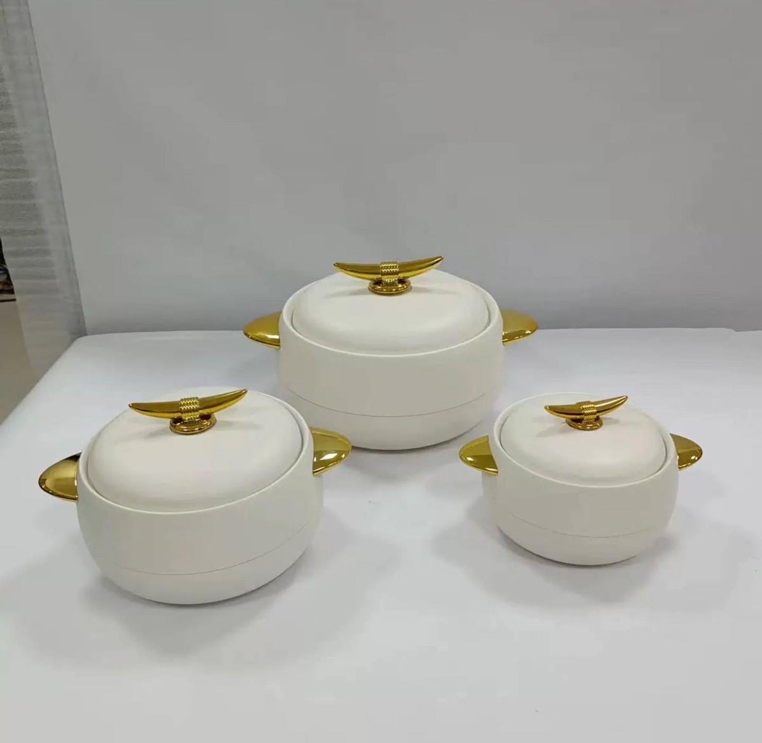Add elegance and practicality to your dining experience with this Modern European style insulated hotpot set, featuring capacities of 3.5L, 2.0L, and 1.0L. Made from eco-friendly, high-quality PP material, these hotpots ensure durability, safety, and long-lasting heat retention to keep meals fresh and delicious for hours. The sleek glossy finish enhances their premium appeal, making them ideal for both family dining and professional restaurant settings. Combining style, functionality, and convenience, this insulated hotpot set is the perfect choice for serving and storing a variety of hot dishes in a luxurious way.
