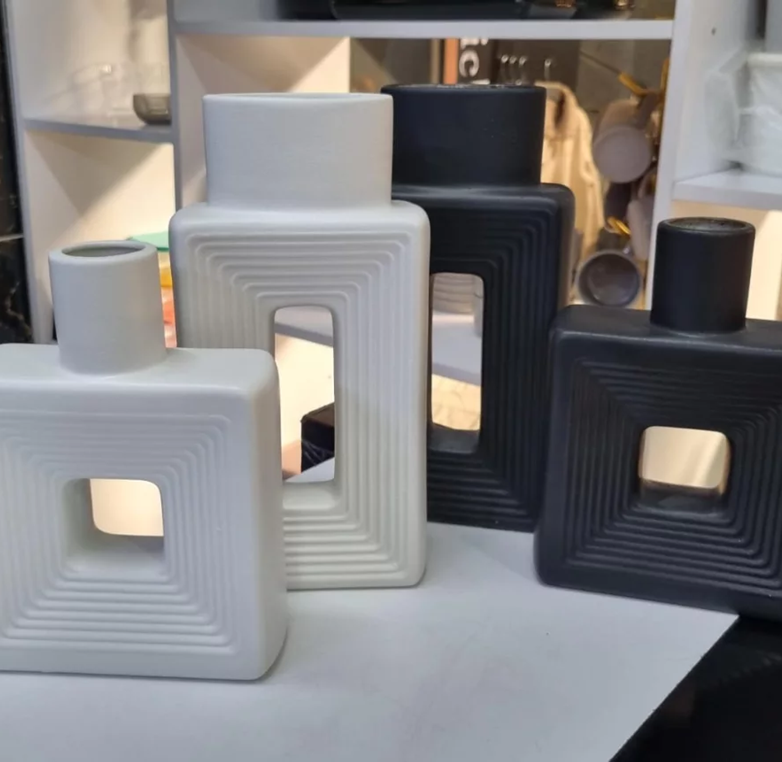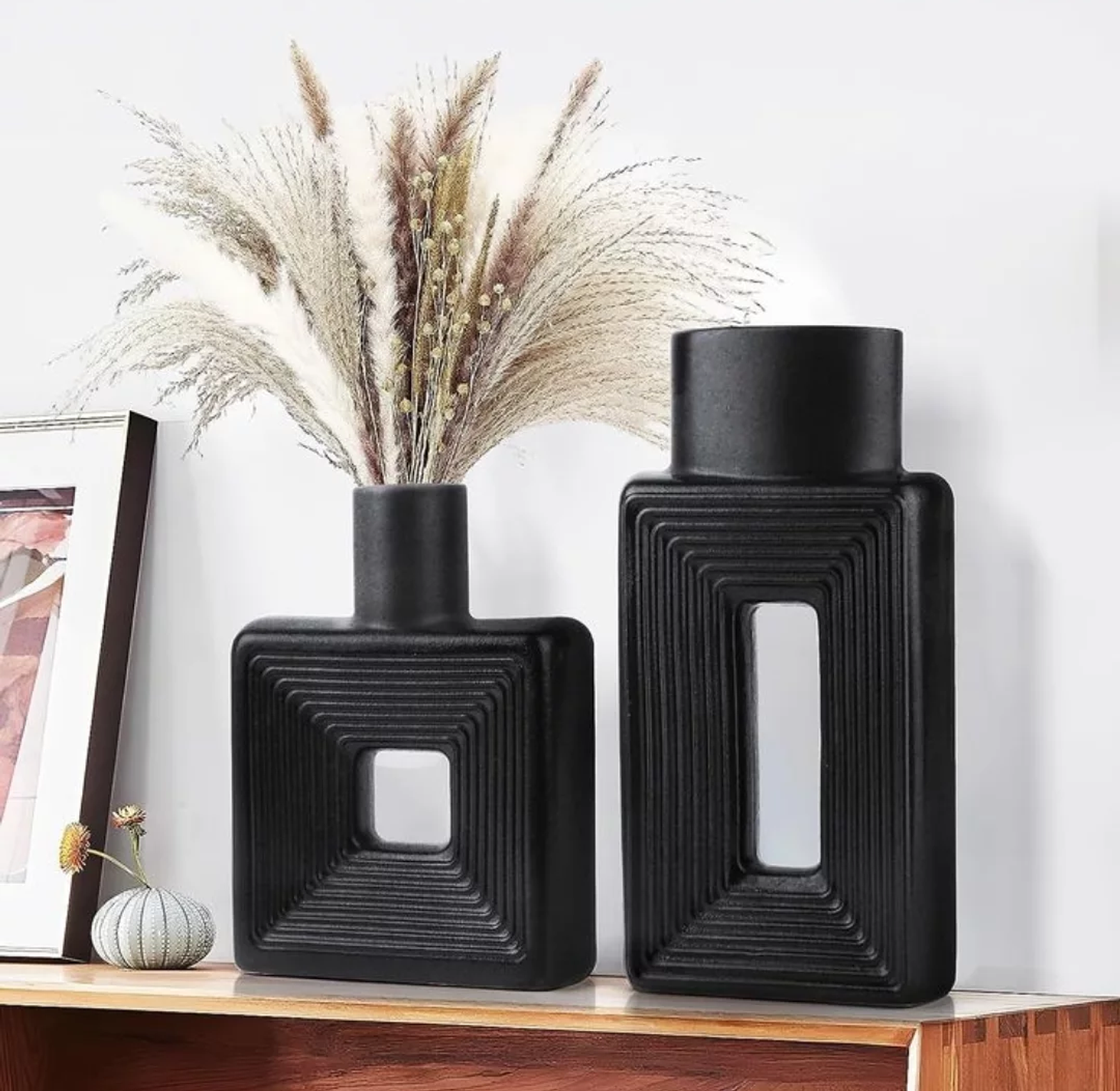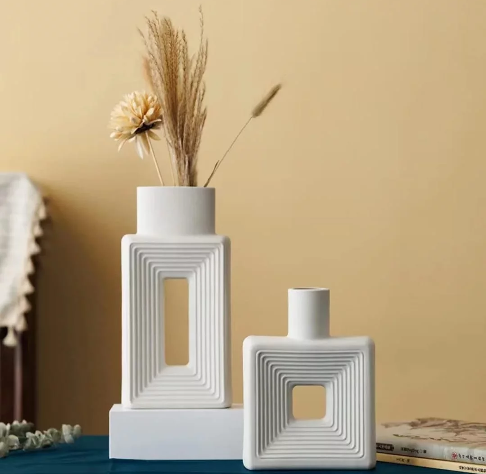 This contemporary Resin Square Decorative Vase Set consists of two complementary pieces, offering a stylish and versatile solution for interior design needs. Crafted from durable, lightweight resin, the vases feature a distinct geometric square shape that provides a modern, structured look for shelves, mantels, or side tables. They are available in timeless, high-contrast color options: deep Black and clean White, ensuring they seamlessly integrate into various color schemes and décor styles. These decorative vessels are ideal for displaying fresh flowers (with a liner), dried botanicals, or simply as architectural statement pieces, adding a touch of sophisticated flair to living spaces across the region.
