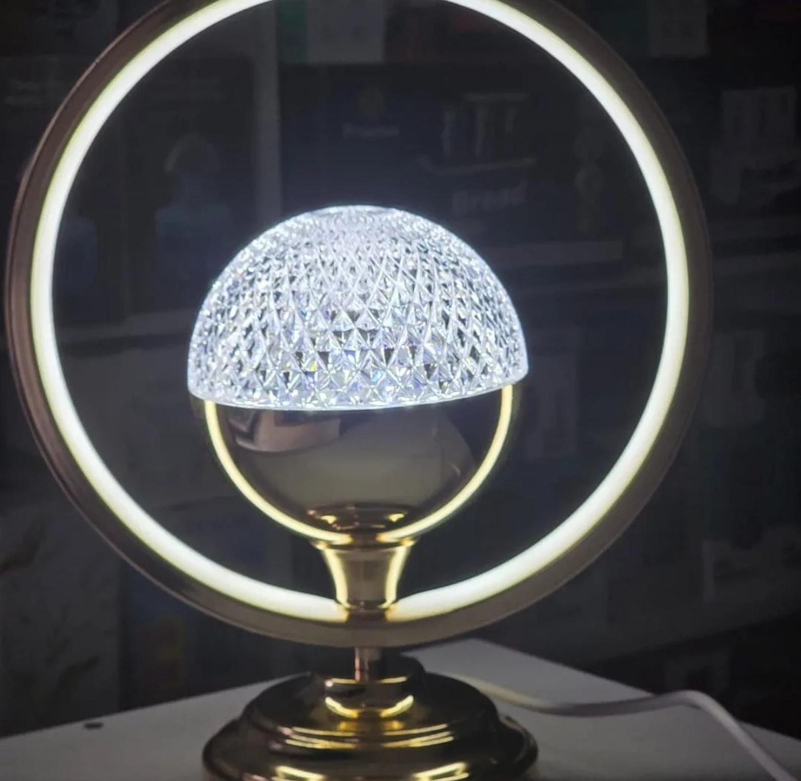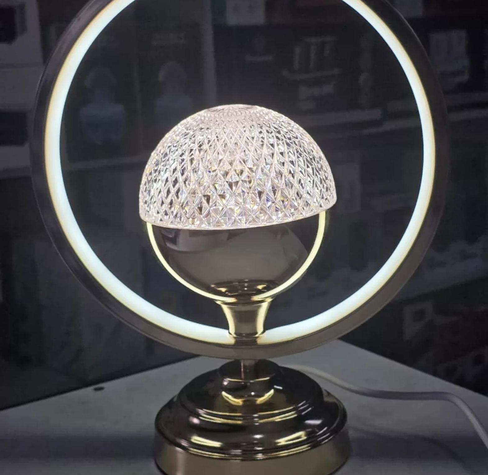Elevate the ambiance of any room with the Aura Glow Modern Orb Table Lamp, a striking piece that embodies contemporary luxury and minimalist design. This elegant lamp features a captivating round golden frame that encircles a central frosted glass sphere, housing energy-efficient LED lighting. The design creates a soft, diffused glow that adds a warm and inviting atmosphere without harsh glare. Crafted from high-quality materials, its sleek golden finish provides a touch of opulence, making it a sophisticated addition to a study desk, living room side table, or bedroom nightstand. The clean lines and harmonious circular form reflect a modern aesthetic, while the subtle radiance enhances both functionality and decor. This lamp is not just a source of light; it's a statement piece that blends seamlessly into various interior styles, from modern minimalist to art deco-inspired spaces. This decorative lamp is a must-have for those seeking luxury table lamps, modern desk lights, gold accent lighting, round LED lamps, and minimalist home illumination.