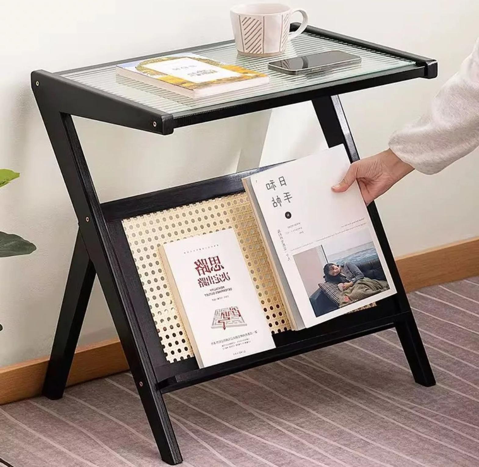 Discover the perfect blend of functionality and aesthetic appeal with our Modern Rattan & Glass Top Side Table. This multi-purpose piece effortlessly serves as a bedside table, end table, or even a chic printer stand, making it a versatile addition to any room. It features a sturdy black frame and a fluted glass tabletop, offering a sleek surface for drinks, books, or decor. Below, a natural rattan shelf provides a unique textural element and a convenient spot for magazines, books, or remote controls. The elegant design makes it perfect for home decor, adding a touch of sophistication to your living room, bedroom, office, or even commercial spaces like BnBs and cafes. Its compact footprint ensures it fits seamlessly into various layouts while offering ample storage and display options.