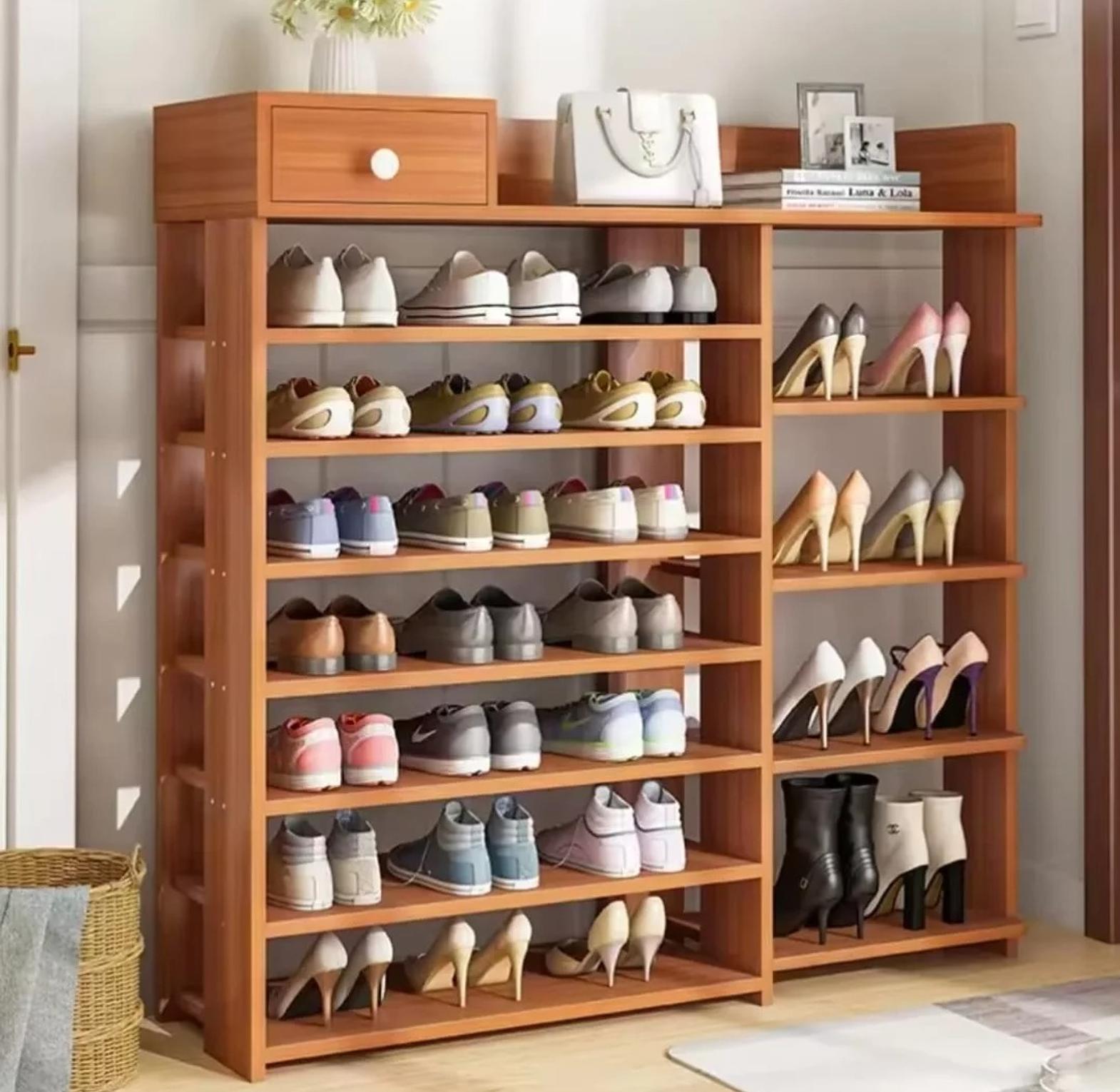 Transform your home organization with our Elegant Multi-Layer Wooden Shoe Rack & Storage Organizer. Measuring a generous 100cm in length, 24cm in depth, and 110cm in height, this versatile unit offers substantial space-saving storage without compromising on style. Crafted with a heavy-duty design, it boasts a high load-carrying capacity, making it incredibly robust and durable for holding numerous pairs of shoes, boots, and even other personal belongings.