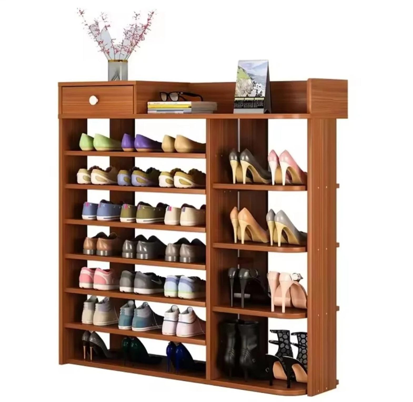 This meticulously designed organizer features multiple tiers, allowing for efficient categorization and easy access to your footwear. The dustproof design helps keep your shoes clean and well-maintained. Thoughtful details like curved edge sealing ensure a smooth finish, making it not easy to scratch surfaces or injure yourself, enhancing safety and user experience. The base off the ground feature effectively makes it moisture-proof, protecting your shoes from dampness. Available in a dark brown finish, this shoe rack is not just a practical storage solution but also a stylish piece of furniture that complements any decor, perfect for entryways, hallways, or bedrooms.