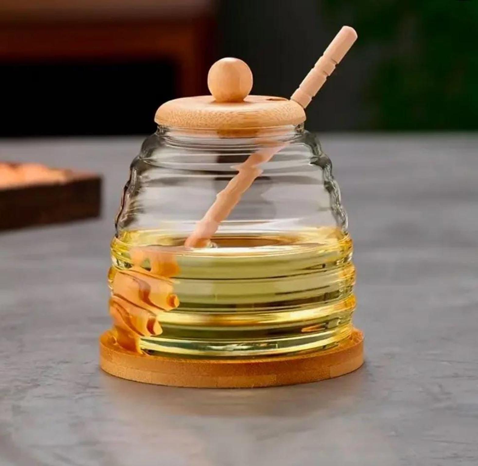 Store and serve your honey with elegance using these multi-purpose glass honey storage jars, featuring a sleek, transparent design that showcases the natural golden hue of your honey. The wooden lid ensures an airtight seal, keeping the honey fresh and free from moisture or contaminants. Included with each jar is a stirring stick, allowing for easy, mess-free drizzling without the need for additional utensils. Ideal for use at home or as a thoughtful gift, these jars not only help keep your honey in pristine condition but also add a rustic charm to your kitchen or dining table. Their versatile design makes them perfect for storing other liquids like syrup or jam, making them a practical and stylish addition to your kitchen essentials.