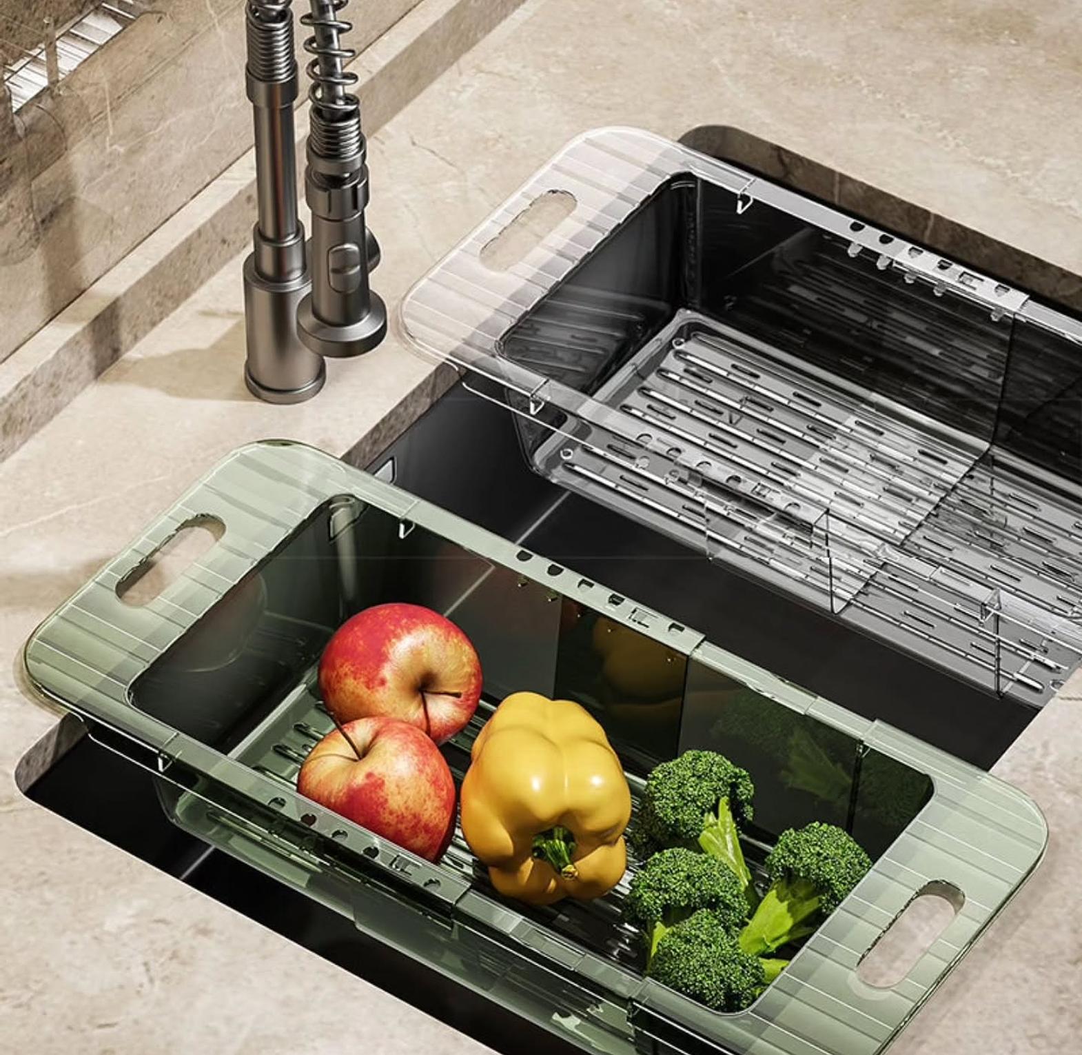 The Multifunctional Acrylic Over-the-Sink Colander is a smart, space-saving kitchen essential designed for modern homes. With an adjustable length that extends from 36cm to 46.5cm, it fits a wide range of sink sizes for versatile use. Made from durable, food-safe acrylic, it is perfect for rinsing fruits and vegetables, draining pasta, drying utensils, or even storing kitchen essentials conveniently over your sink. Its sturdy yet lightweight design ensures easy handling, while its multifunctional use helps maximize counter space and keep your kitchen organized.