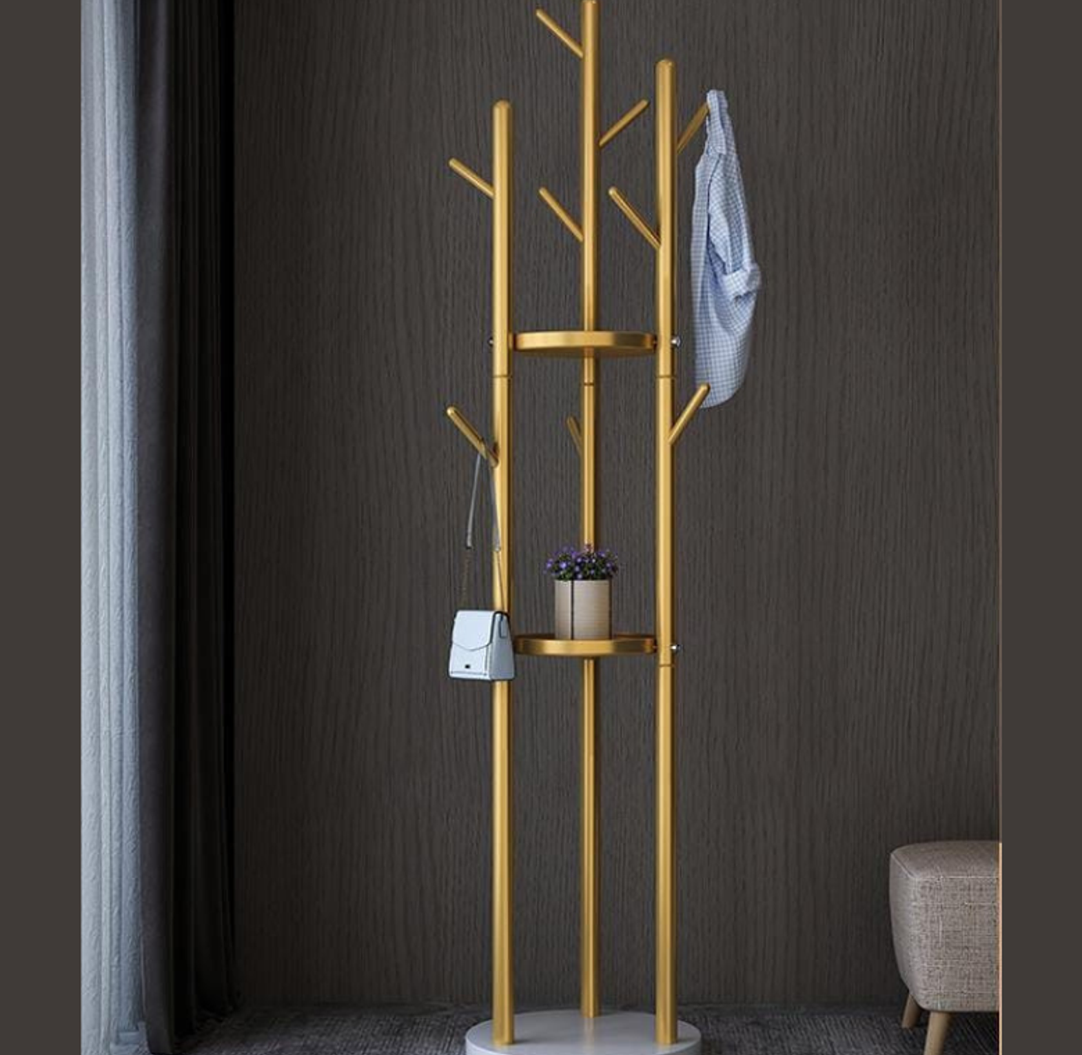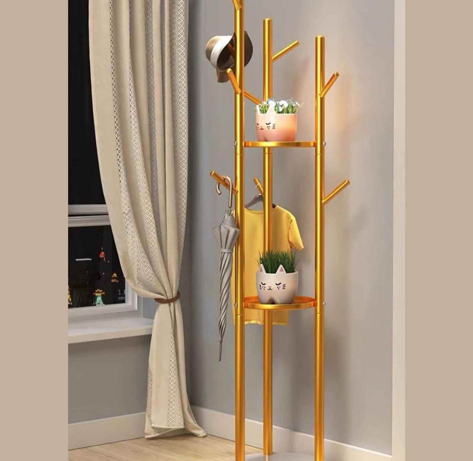 Combine practical storage with a touch of elegance using this versatile, gold-toned coat stand. Designed to handle all your daily essentials right by the front door, this piece is made from sturdy metal for reliable durability and features a beautiful, non-fading golden finish.