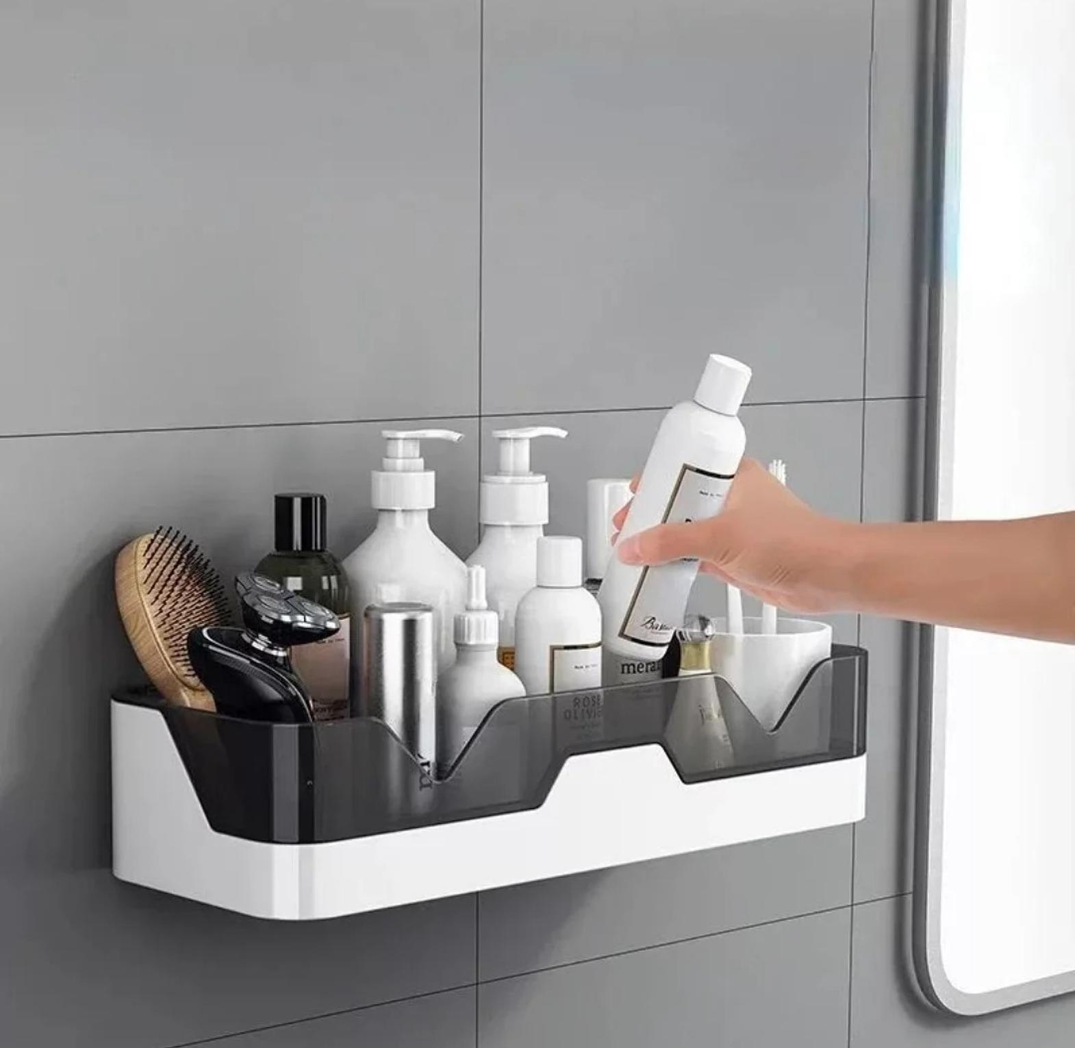 The standout feature is its no-drill installation. Forget about damaging your tiles or walls; this shelf comes with a powerful self-adhesive backing (indicated by the installation visual), ensuring a firm and reliable attachment without the need for tools. It's perfectly suited for holding a variety of toiletries, including shampoo, conditioner, body wash bottles, soaps, brushes, and more, keeping them neatly organized and easily accessible within your shower or next to your sink. Made from durable materials (likely high-grade plastic, as seen), it's built to withstand the humid bathroom environment. Enjoy a tidier, more functional, and aesthetically pleasing bathroom with this essential and easy-to-install storage solution.