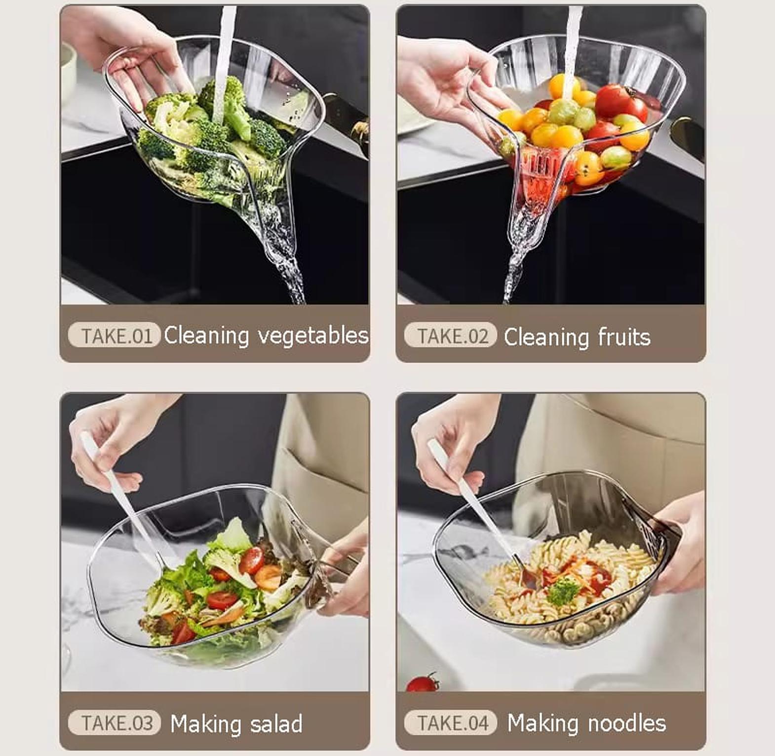 Made from high-quality, durable materials, this Multifunctional Drain Basket is available in sleek clear and grey colors to suit any kitchen décor. Its spacious design ensures you can handle large quantities of food at once, while the ergonomic handles make it comfortable to use. Whether you're rinsing produce, washing rice, or serving fresh salads, this multifunctional colander and bowl combo is a must-have for every household, offering both convenience and style.
