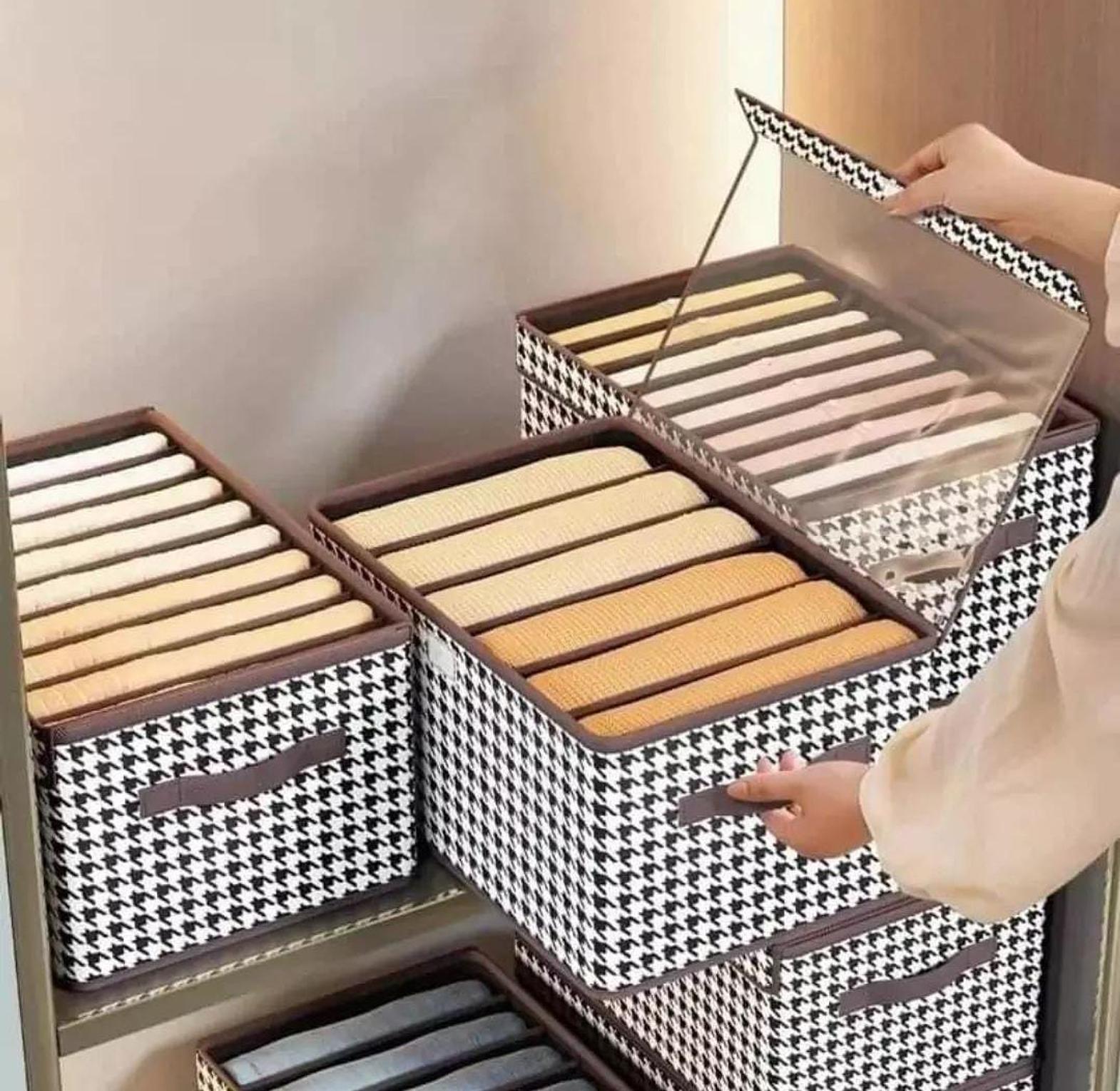 Streamline your wardrobe with our non-woven 7-grid clothes organizer, a versatile and efficient storage solution perfect for organizing jeans, trousers, and other folded clothes. Crafted from durable, breathable non-woven fabric, this organizer ensures air circulation, keeping your clothes fresh and wrinkle-free. Each of the seven compartments provides ample space, allowing you to separate items for easy access and tidiness.