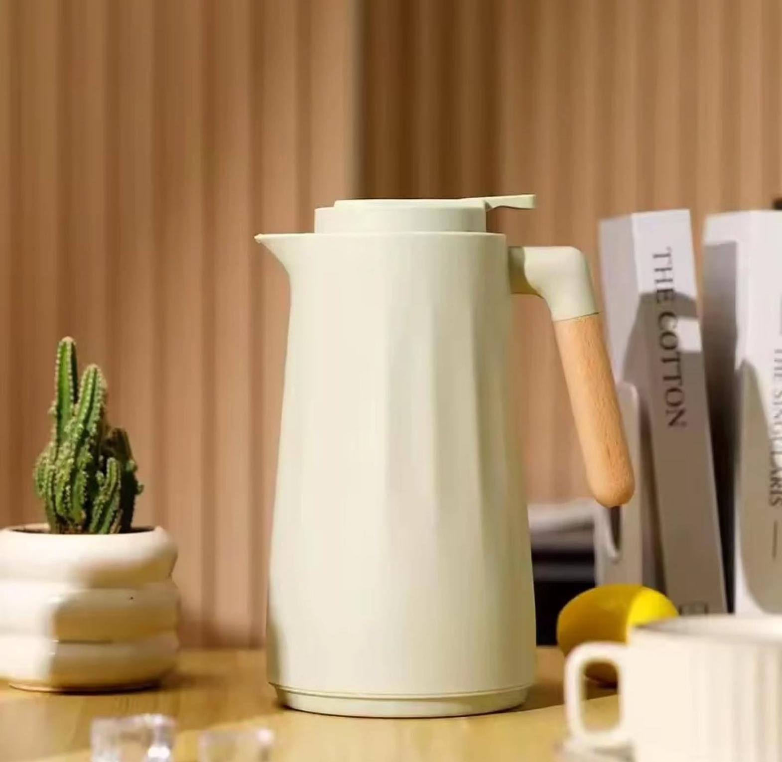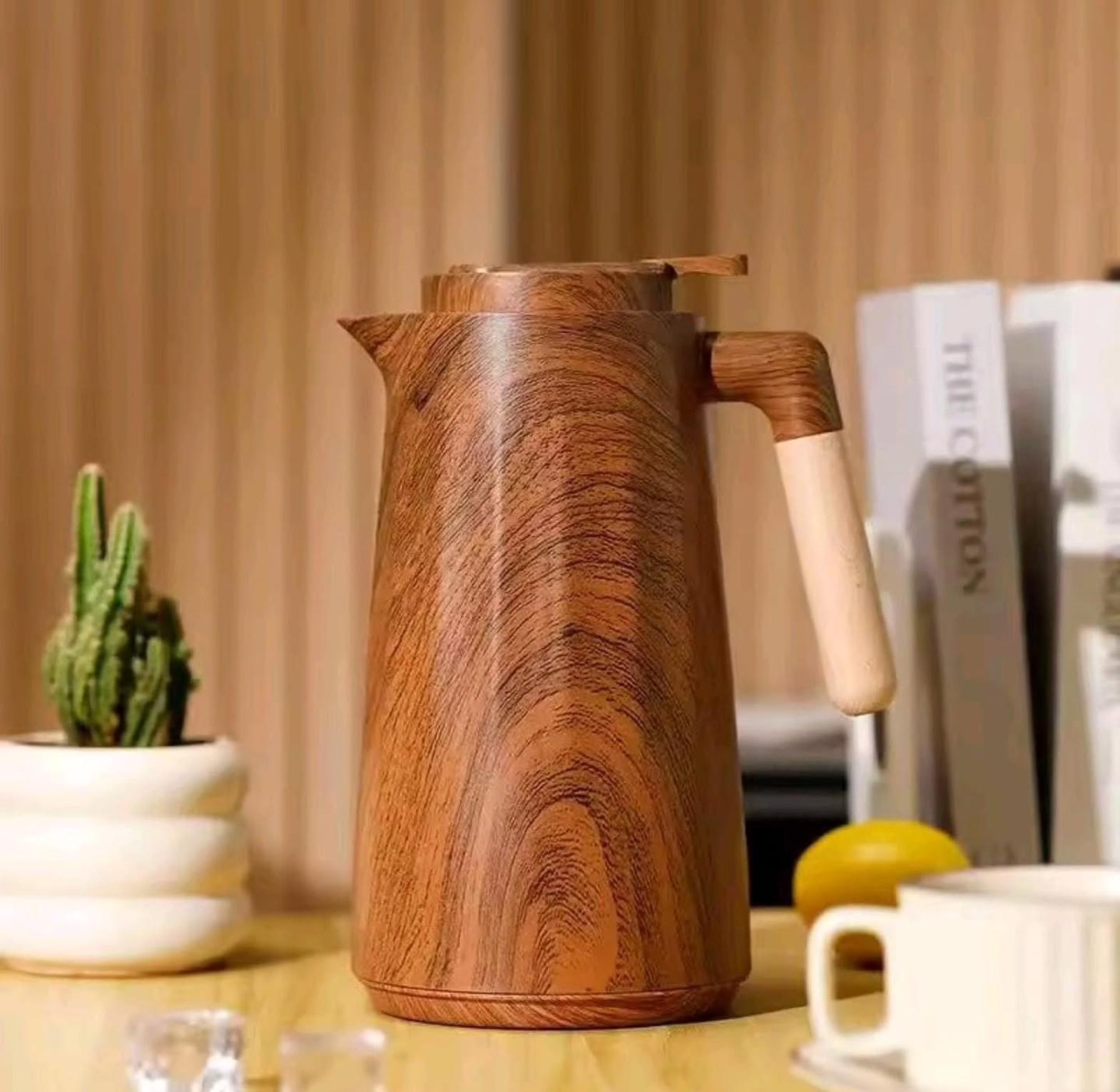 Enjoy both style and performance with this Nordic style double wall insulated vacuum flask, designed to keep beverages hot for up to 18 hours or cold for extended periods. With a 1-liter capacity, it’s ideal for daily hydration, family gatherings, or office use. The ergonomic wooden handle adds a touch of elegance while ensuring a comfortable grip, and the durable construction guarantees long-lasting use. Perfect for coffee, tea, or water, this flask combines minimalist Nordic design with premium functionality for everyday convenience.