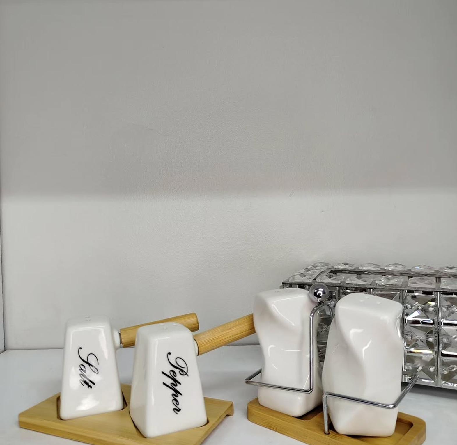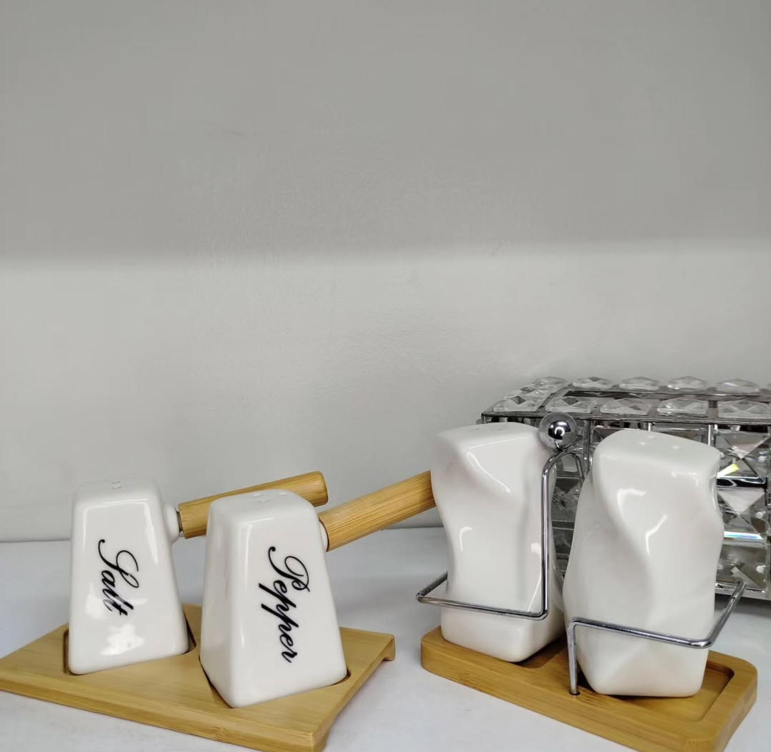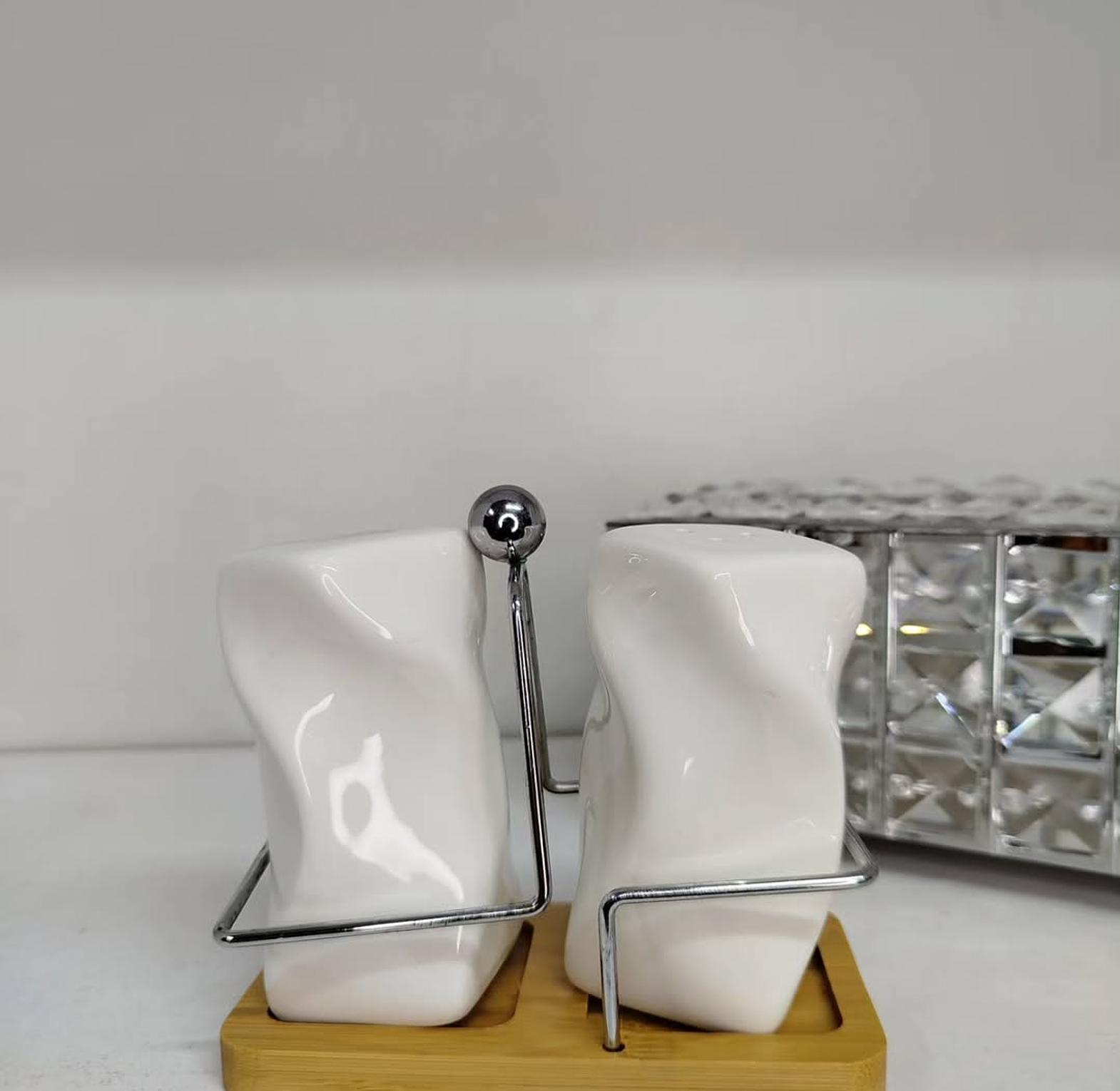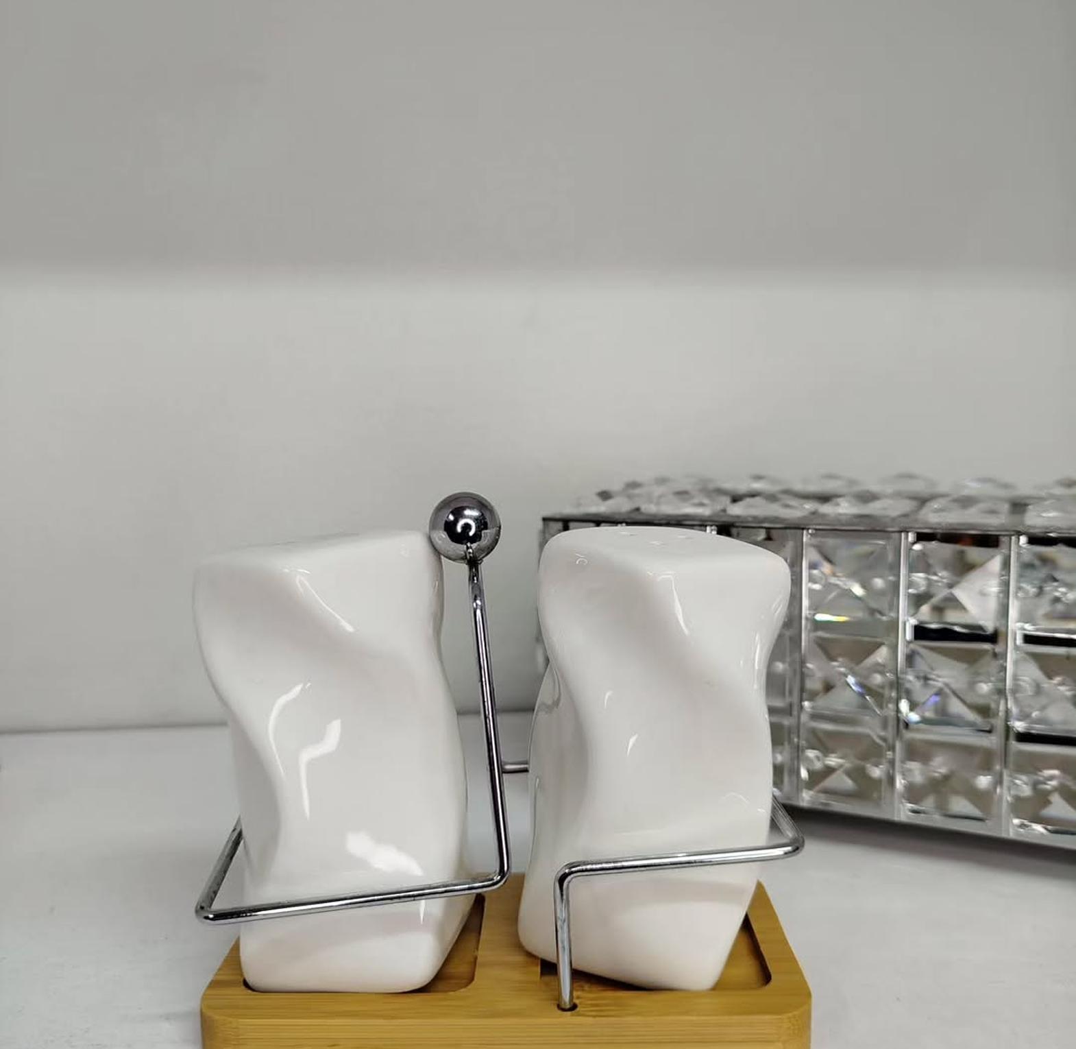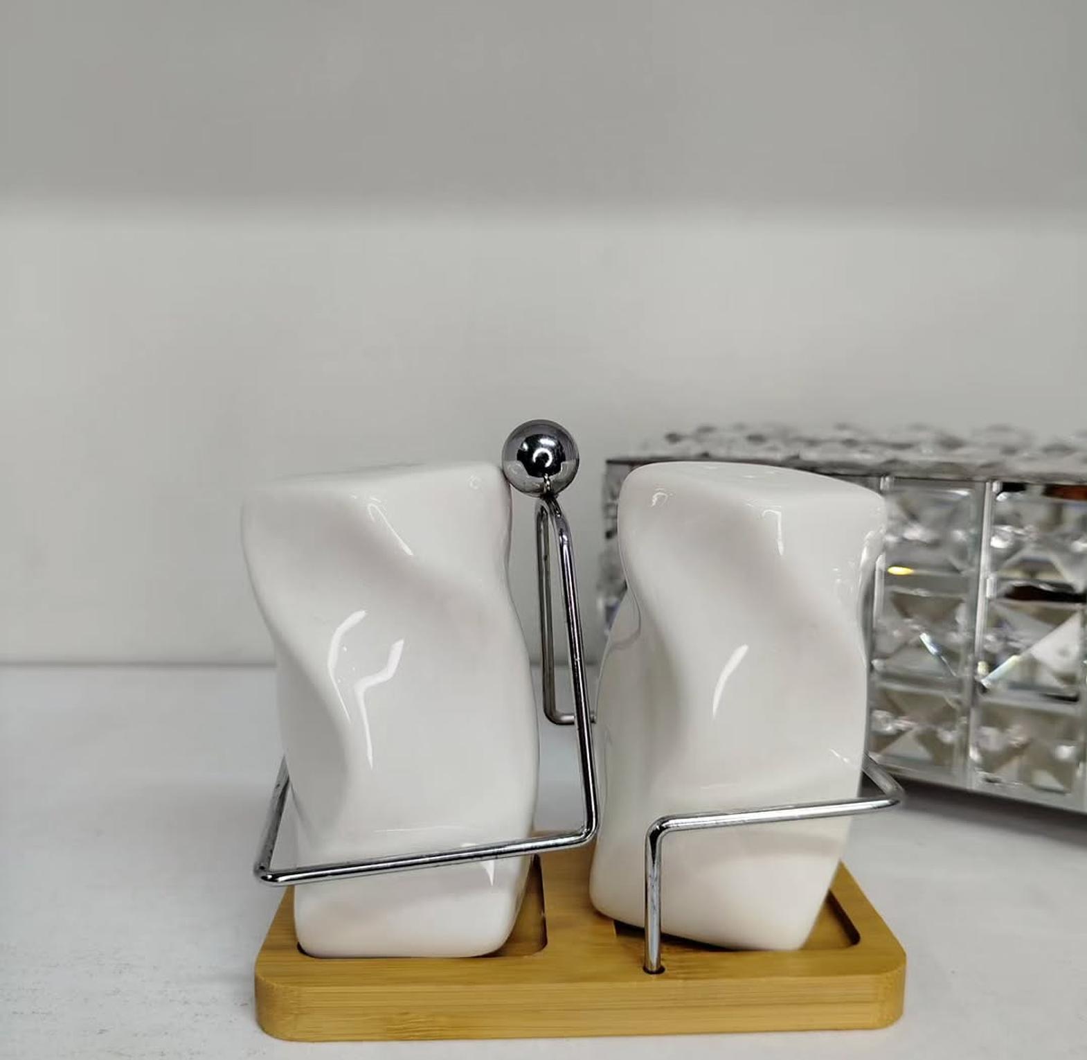 Elevate your dining experience with this premium double salt shaker set, designed for both style and convenience. The set includes 2 sleek shakers and a durable bamboo stand, making it a practical yet elegant addition to your kitchen or dining table. Crafted for everyday use, the shakers are easy to refill, while the bamboo base ensures neat organization and a touch of natural charm. Perfect for serving salt, pepper, or spices, this 3-piece set combines functionality with modern design, making it suitable for both home and restaurant settings.