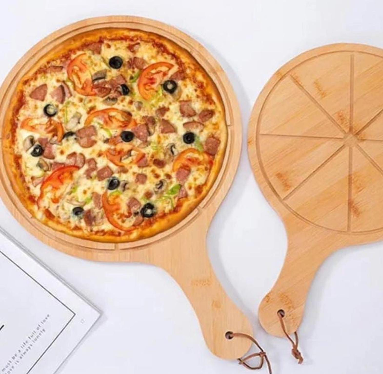 Bring a touch of natural beauty to your table with this quality bamboo pizza plate, crafted from sustainable bamboo for an eco-friendly, stylish dining experience. Lightweight yet sturdy, the plate is designed to handle hot, fresh-out-of-the-oven pizzas while maintaining its form and durability. The smooth surface is gentle on knives and easy to clean, making it a versatile choice for serving not only pizzas but also appetizers, cheese platters, and more. Whether for entertaining or everyday use, this bamboo plate is a timeless addition to any kitchen.