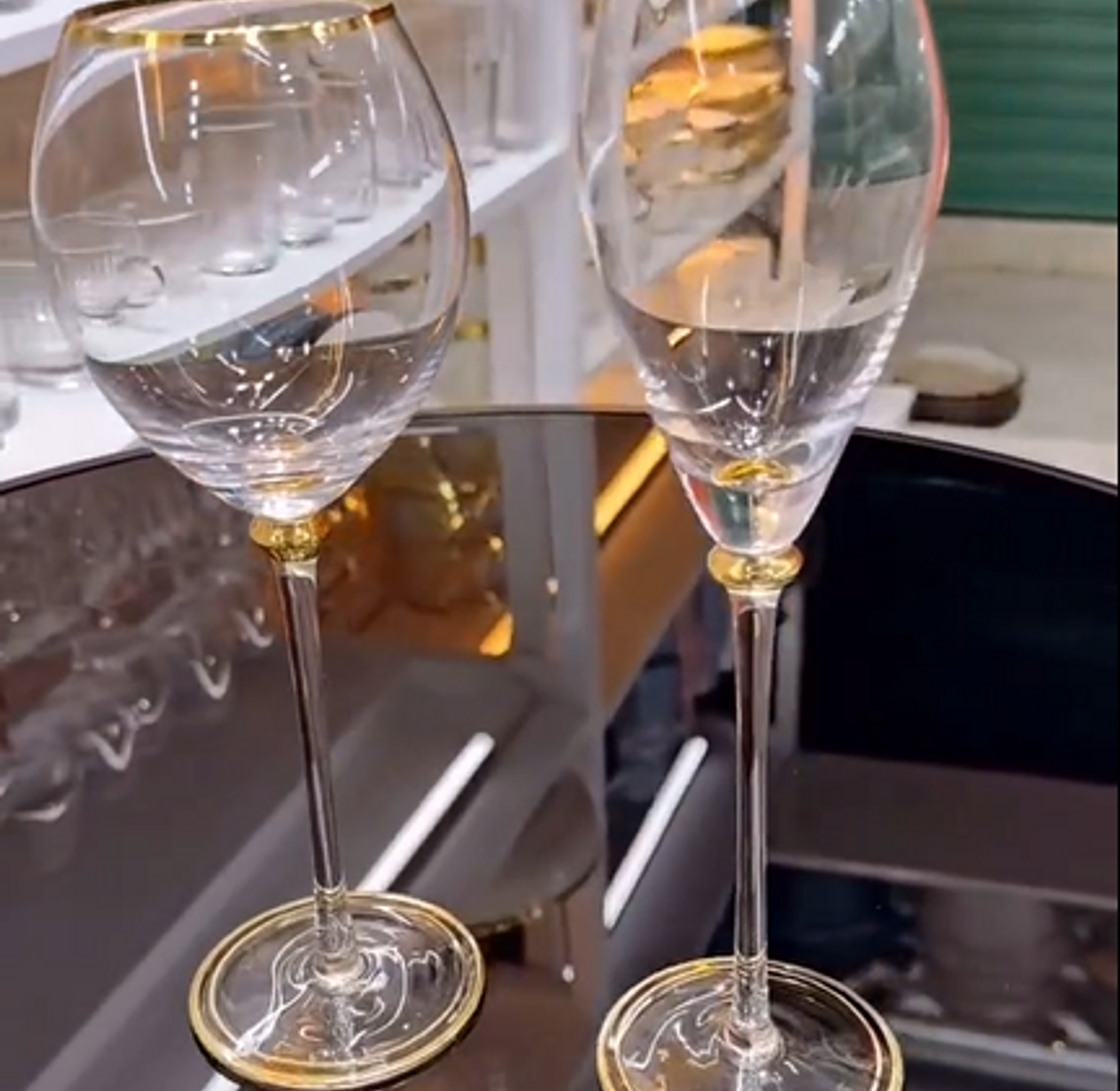 Adorn your table with the unparalleled elegance of the Regal Rimmed Crystal Goblets, designed to infuse every occasion with a sense of luxury and grandeur. Crafted from premium quality crystal, these goblets offer exceptional clarity and a dazzling sparkle, allowing the true color and character of your beverages to shine through. The standout feature is the exquisite gold rim, meticulously applied to the lip of each glass, which provides a lavish touch and a refined drinking experience. Further enhancing their royal appeal, the goblets also feature subtle yet striking gold accents on the stem and base, creating a cohesive and opulent design. The generous bowl shape is versatile, making these goblets ideal for serving wine, water, cocktails, or even elegant desserts. Their substantial feel and durable construction ensure they are not only beautiful but also suitable for regular use or special celebrations. Whether you're hosting a formal dinner party, enjoying a quiet evening, or simply seeking to add a touch of sophistication to your drinkware collection, the Regal Rimmed Crystal Goblets are an impeccable choice for those who appreciate fine craftsmanship and timeless style.