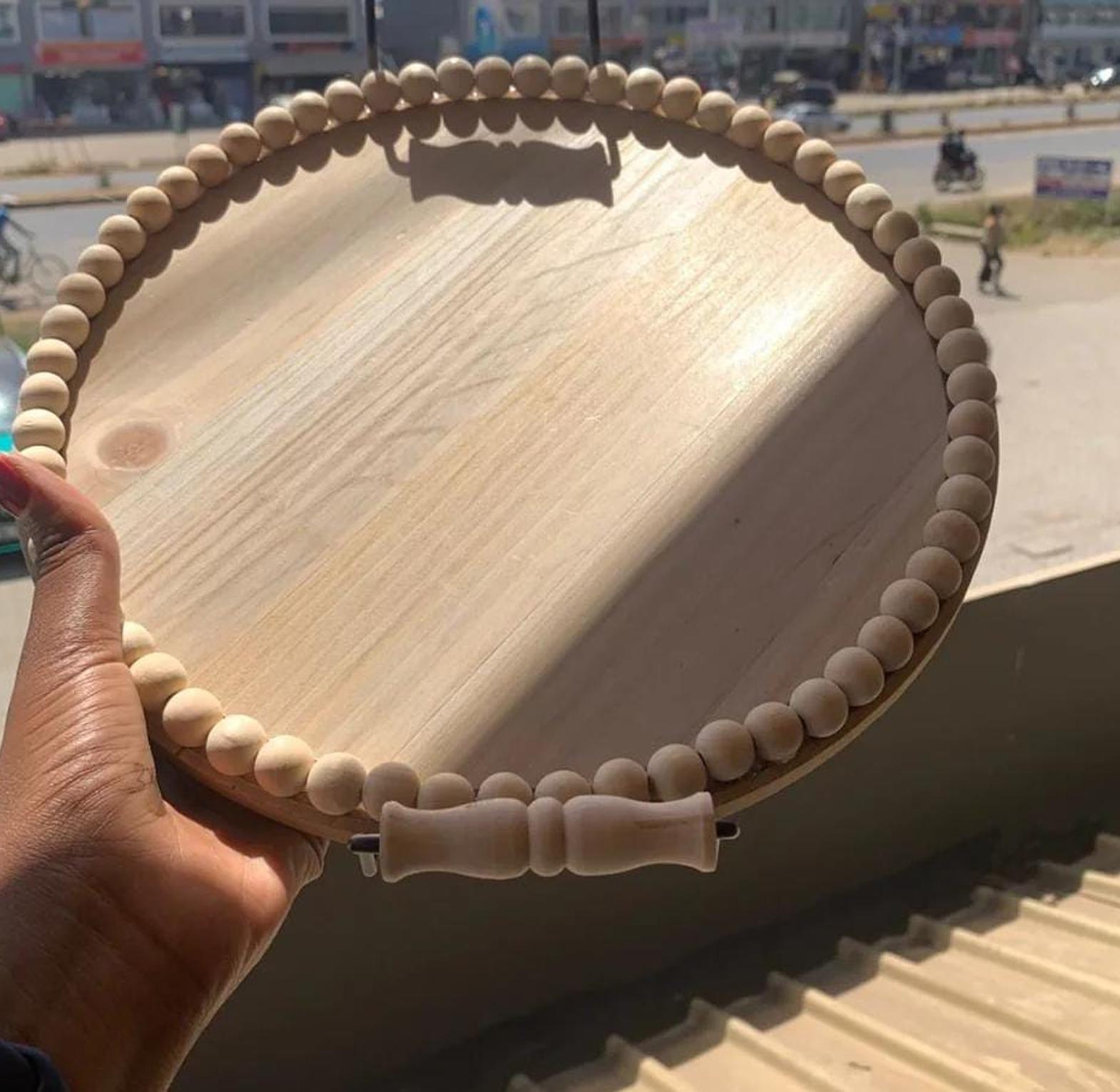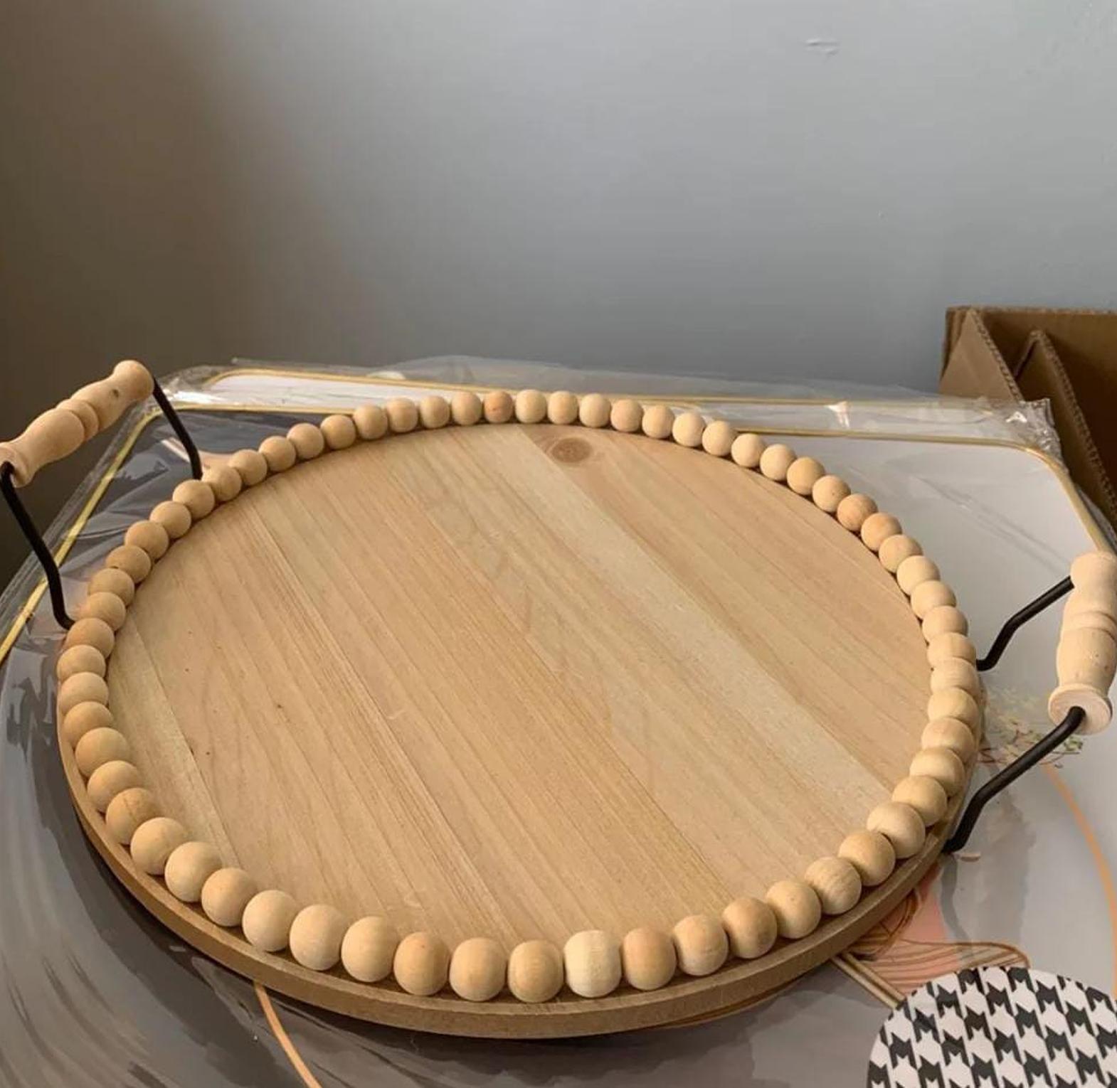 Infuse your space with rustic charm using this beautifully crafted wooden round beaded tray, designed for both functionality and aesthetics. Made from high-quality wood, its smooth, natural finish highlights the rich textures and grains, while the delicate beaded edge adds a touch of vintage elegance. Perfect for displaying candles, floral arrangements, or decorative accents, this versatile tray enhances coffee tables, dining spaces, and kitchen counters with effortless style. Whether used as a centerpiece or for organizing essentials, its timeless appeal makes it a must-have for farmhouse, bohemian, or modern rustic décor.