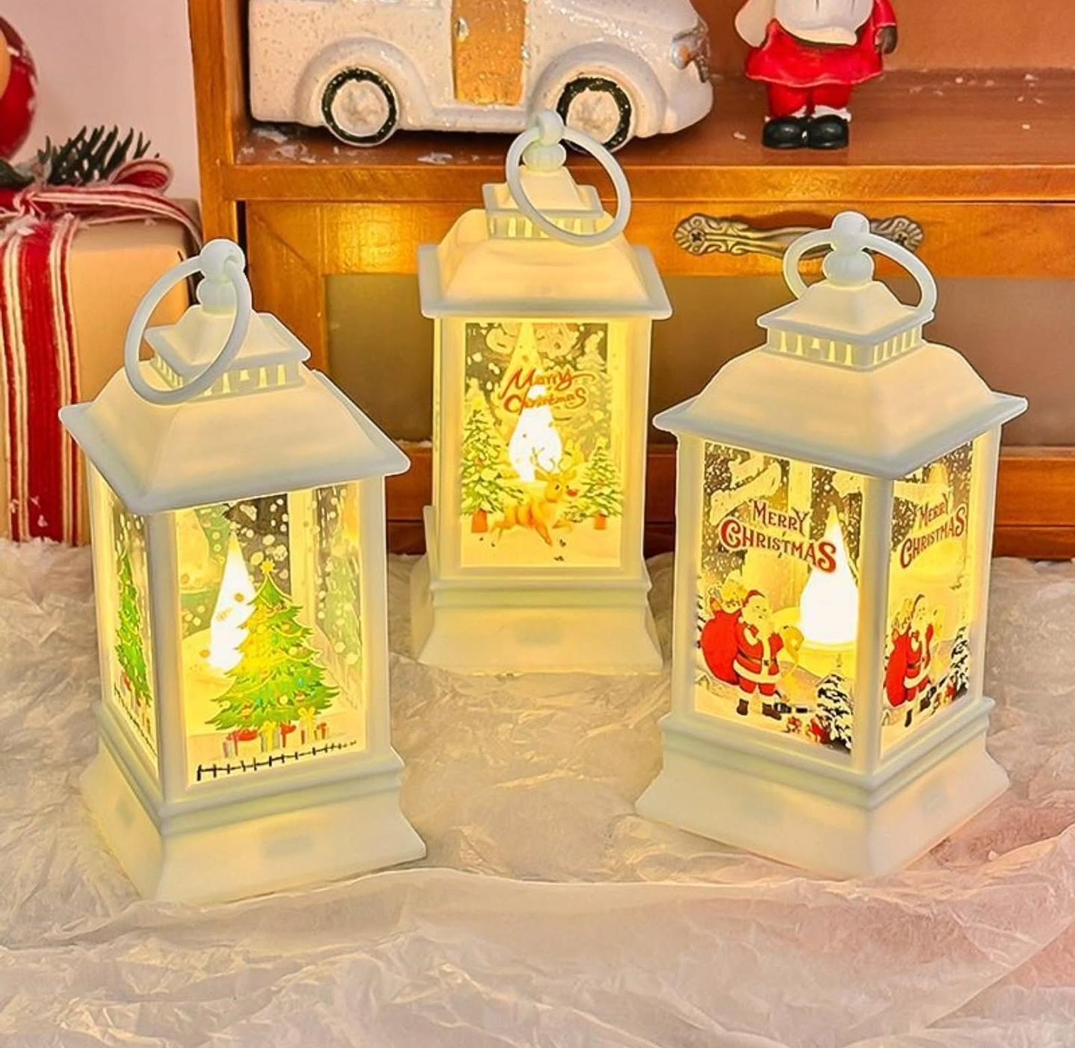 Capture the magic of the season with this delightful Santa Claus Christmas lantern, an exquisite piece of decorative lighting perfect for creating a festive atmosphere. Designed with a timeless vintage appeal, the compact lantern houses a beautifully detailed winter scene featuring Santa Claus, snowmen, and evergreen trees, illuminated by a warm, glowing LED light that simulates a cozy flame. The unit is conveniently battery-powered, allowing you to place it anywhere without the constraint of power outlets—on a mantelpiece, bookshelf, or as a centerpiece for your Merry Christmas decorations. With its portable 20 cm×8 cm size and a built-in hanging ring, it is ideal for adding a luminous, joyful accent to your home or hanging directly from the branches of your Christmas tree.