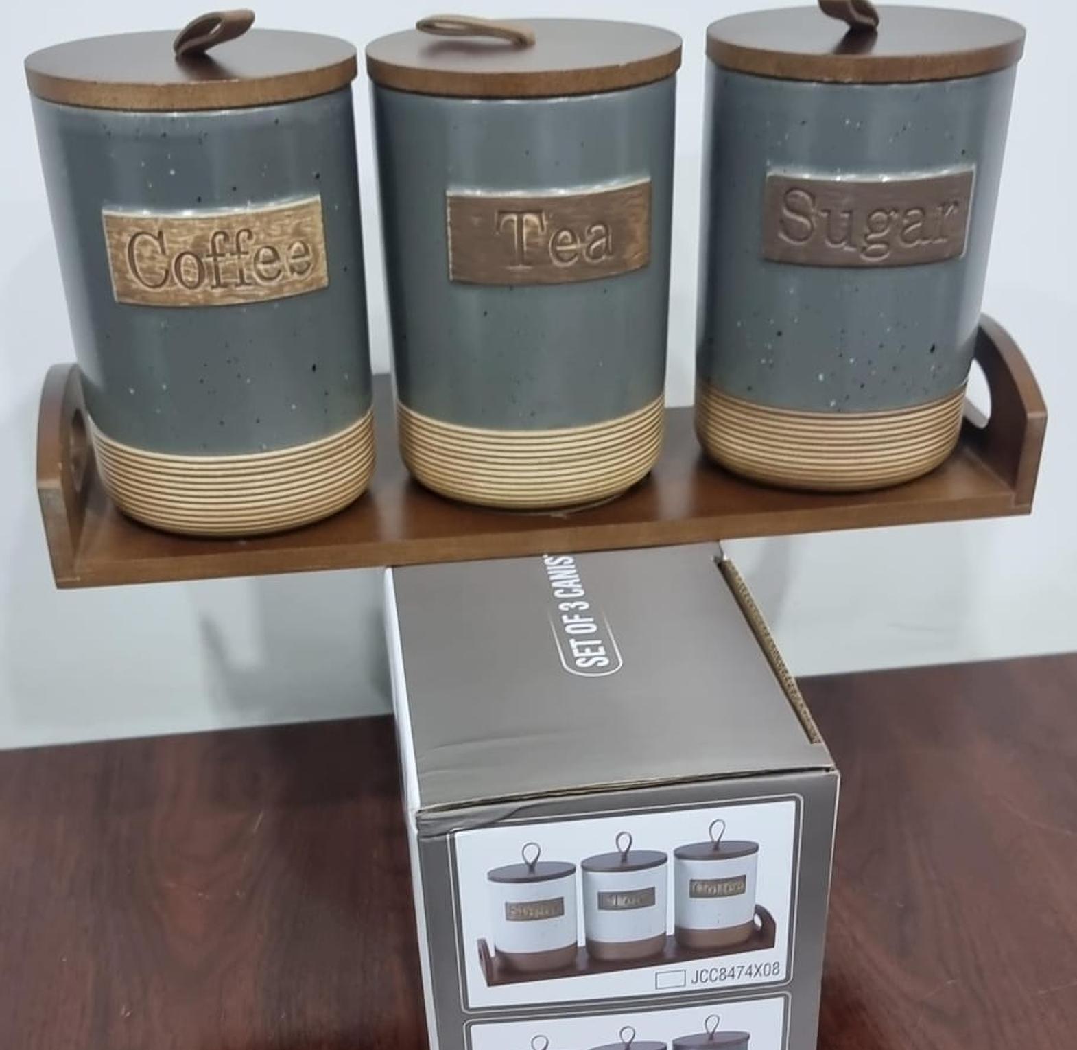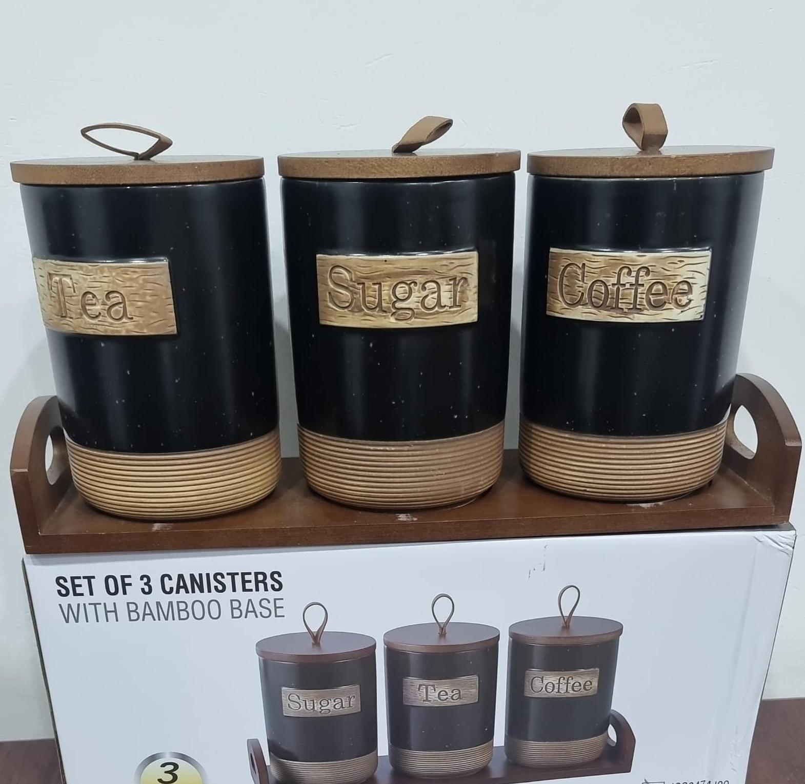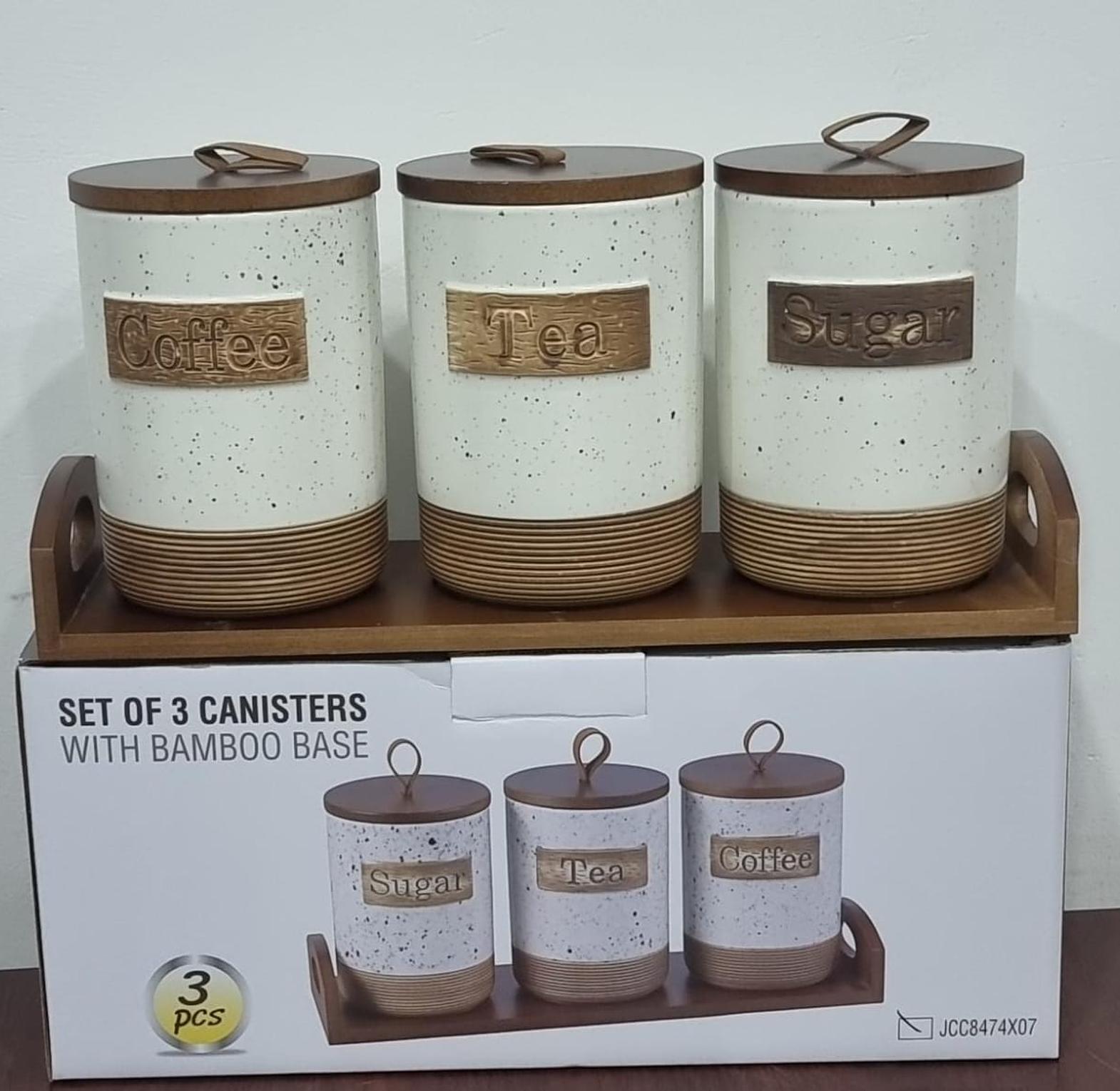 The Set of 3 Ceramic Canisters is perfect for storing sugar, tea, and coffee while keeping your kitchen countertops neat and elegant. These high-quality ceramic canisters come with a bamboo base, offering both durability and style. Each canister is labeled for easy identification and equipped with a secure lid to keep contents fresh. The sleek, minimalist design with the natural bamboo accents adds a touch of modern sophistication to any kitchen decor, making it an ideal choice for organized and aesthetic storage.