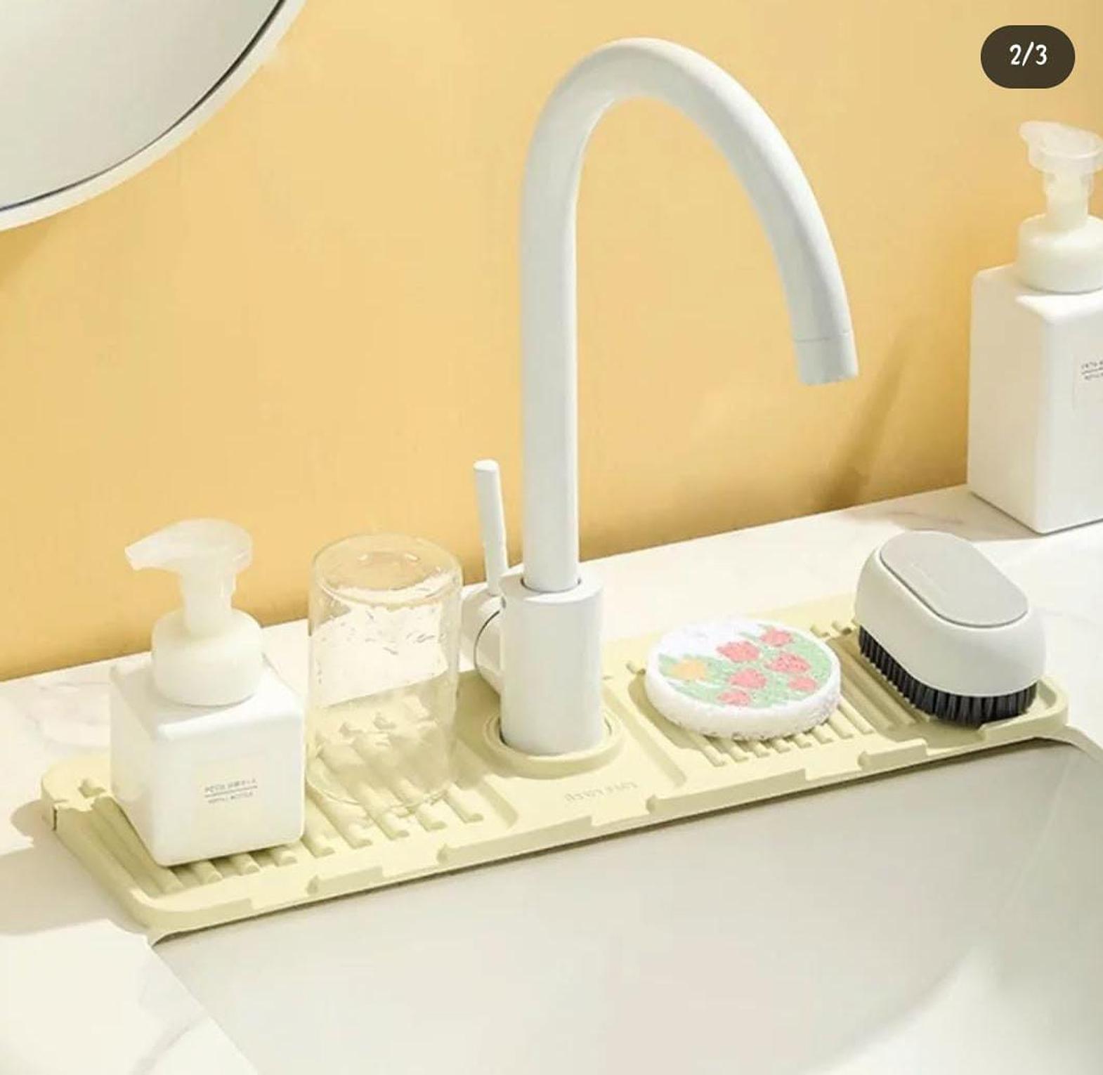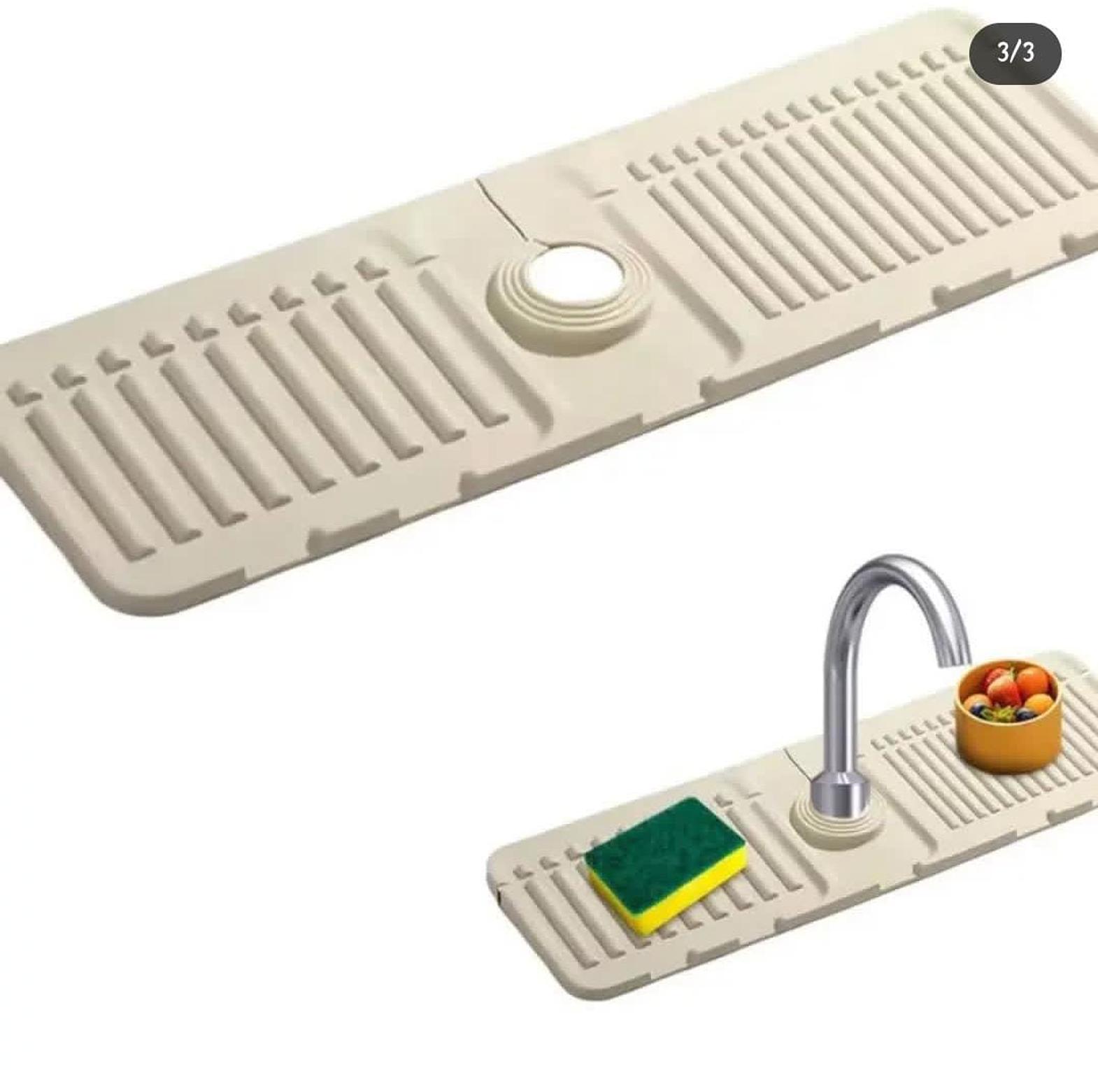Keep your kitchen countertops dry and protected with this silicone faucet mat and sink splash guard, an essential accessory for managing water spills around your sink area. Made from flexible, non-slip silicone, it fits seamlessly under your faucet, collecting splashes and drips while ensuring water doesn’t pool on your countertop. The mat’s durable construction is heat-resistant and easy to clean, making it perfect for daily use. Its simple, modern design complements any kitchen décor, while the raised edges prevent water from escaping onto the surface. Ideal for busy kitchens, this drainage pad is a functional yet stylish solution for maintaining a tidy and dry workspace.