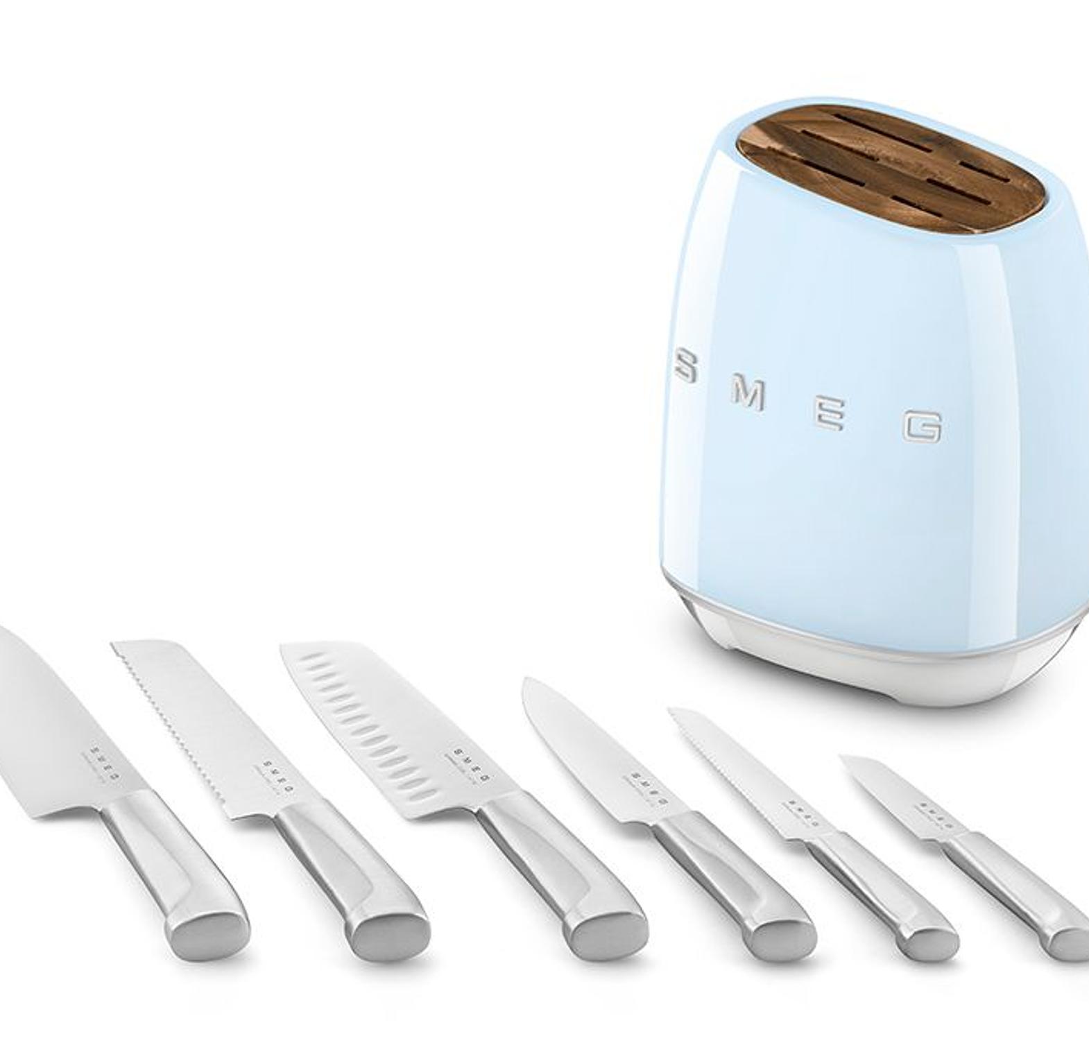The SMEG 6-Piece Premium Stainless Steel Knife Set combines professional-grade craftsmanship with modern design, making it an essential addition to any kitchen. This set includes a Vegetable Knife, Utility Knife, Meat Knife, Santoku Knife, Bread Knife, and Chef's Knife, covering all your cutting needs with precision and ease. Each blade is forged from high-quality stainless steel for durability, sharpness, and long-lasting performance, while the ergonomic handles ensure comfort during extended use. The included metal block provides stylish and safe storage, keeping your knives organized and readily accessible. Ideal for home cooks and culinary enthusiasts alike, this knife set blends functionality, elegance, and durability for everyday kitchen excellence.
