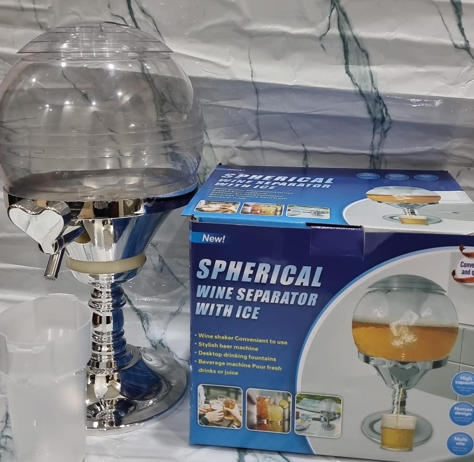 Cooling Spherical wine juice or liquid dispenser with ice slot and separator now available