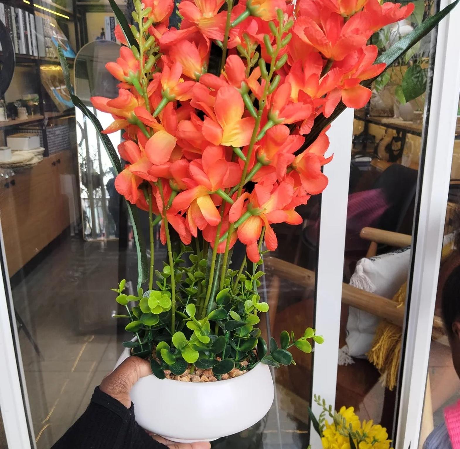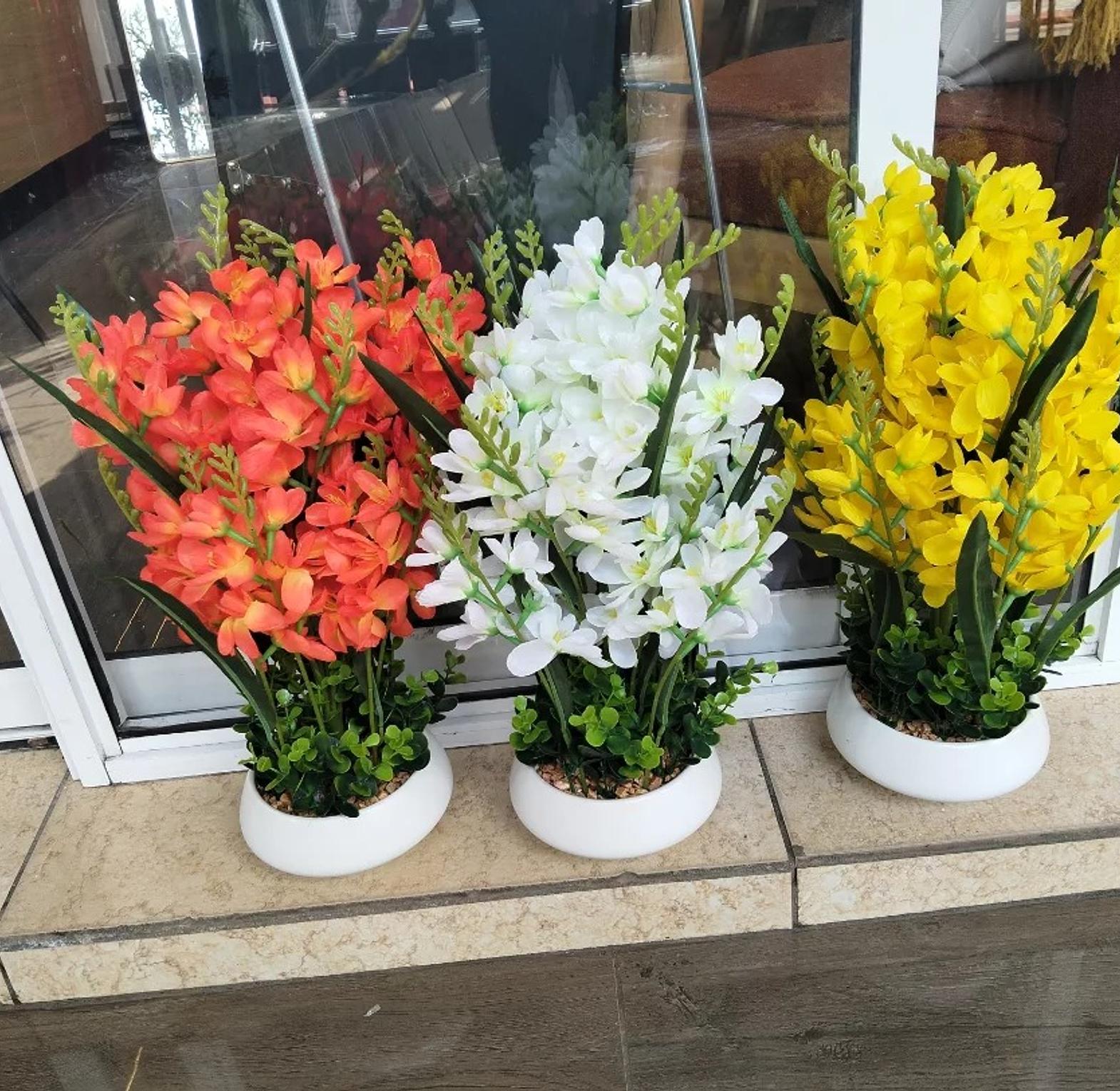 Add a refreshing burst of color to your home or workspace with these large tabletop potted flowers, designed to bring beauty and elegance to any setting. Available in three stunning shades: yellow, orange, and white, these realistic blooms are set in a stylish pot that complements both modern and classic interiors. Ideal for coffee tables, console displays, or office desks, they create a welcoming and uplifting atmosphere without the need for maintenance. Whether for personal use or as a thoughtful gift, these decorative flowers are a perfect choice to enhance your décor.